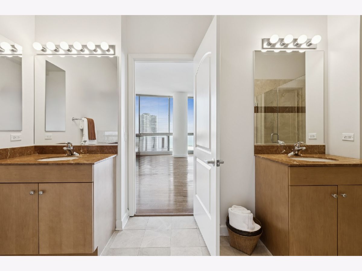 Experience luxury living high above the city at The Regatta in the peaceful Lakeshore East neighborhood. Perched in the penthouse tower of this iconic high-rise, Unit 4010 boasts an extraordinary amount of living space along with sweeping 360-degree views from wraparound floor-to-ceiling windows in every room. Two nice-sized private balconies offer outside space with gorgeous views of the river and lake. The extra-large living room incorporates space typically closed off in this tier as a third bedroom or den. It can be easily enclosed if desired. A spacious dining area could comfortably seat 8-12, and the stylish kitchen offers both a breakfast bar and space for a cafe table...with a river view, btw! The expansive primary suite features a dressing room-sized walk-in closet, and a spa-like bathroom with two vanities, soaking tub, walk-in shower, and water closet. The size of the primary bedroom offers the owner the possibility of also adding in an office area, workout space, or...? The split floor plan places the second bedroom almost in a "private wing" with its own entrance, full bath, and wall of double closets. High ceilings, hardwood floors, and panoramic views add to the elegance. (Make sure you see the stunning nighttime photos that were just taken from this unit that show the river, the lake, and the fireworks from Navy Pier.) A pretty powder room, side-by-side washer/dryer, and large front hall closet add to the convenience. The Regatta's 5000 square feet of top-tier amenities include an indoor pool with hot tub, well-appointed fitness center, newly remodeled party room, library, children's playroom, 13th floor sundeck with grills, and more. Set in the tranquil Lakeshore East neighborhood with its lovely park, you're moments from the vibrancy of Millennium Park, Grant Park, Michigan Avenue, the Theatre District, and of course, the lakefront. Mariano's is a 10-minute walk away. Deeded garage parking valued at $45K is included in the asking price-though you may never need to drive anywhere! This is easy city living at its best!