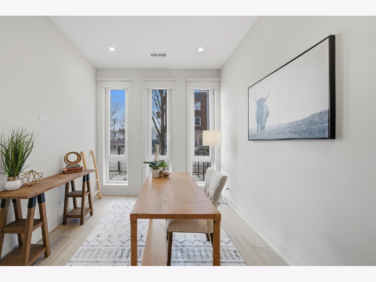 Welcome to AVNDL Estates, a modern residential enclave set within one of Chicago's most historic and vibrant neighborhoods-Avondale. Developed by award-winning Noah Properties and thoughtfully designed by Lisek Interiors, this private, gated community features 52 luxury townhomes ranging from approximately 1,950 to 4,250 square feet, each meticulously curated for contemporary living. Every residence offers the space, privacy, and security of single-family living, complete with a private gated front yard, expansive rooftop deck, attached two-car garage, and secure entry. This exceptional, sun-drenched 5-bedroom, 4.1-bath home spans over 4,100 square feet and showcases refined finishes throughout, including custom European cabinetry, a chef-inspired kitchen with oversized island and stainless-steel appliances, bespoke built-ins, a fireplace, spa-like bathrooms, and a private rooftop retreat ideal for entertaining or relaxing. Residents enjoy an impressive suite of amenities just steps from their door, including outdoor grilling and dining areas, a fenced dog run, pet grooming station, and a state-of-the-art indoor fitness center equipped with full weight and cardio equipment, private changing rooms, and multiple 60" TVs. Move-in ready and fully outfitted with custom closets and neutral window treatments throughout, this home presents a rare opportunity to experience elevated urban living in a secure, thoughtfully designed community. Explore the property in 3D-click the 3D button to take a virtual tour and experience every detail firsthand.