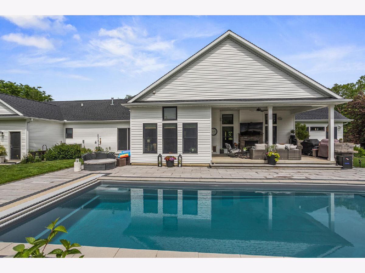 If you love hosting, this is the one. Tucked on a private 1-acre lot in Champaign's highly regarded Trails at Brittany, this stunning custom-built ranch was designed for entertaining and built to impress, with over 4,600 square feet of finished space and a backyard that lives like a private resort. Inside, the open layout creates effortless flow from the custom kitchen into generous dining and living spaces, all tied together with hardwood floors, built-ins, and elevated finishes. The home is as functional as it is beautiful, offering a laundry room with cabinetry, sink, and convenient side entrance, plus an additional mudroom with a built-in bench and coat hooks for daily organization. A sun-filled porch with an in-ground hot tub delivers year-round enjoyment and sets the tone for the lifestyle this home offers. The primary suite opens to the backyard through French doors and includes an expansive walk-in closet and a spa-like bath with a zero-entry tiled shower and double vanity. Four additional bedrooms provide plenty of space for guests, home offices, or hobbies. The finished basement takes entertaining to the next level with a stylish wet bar, a large recreation area, and room to spread out for game nights, movie marathons, or casual gatherings. Do not miss the full bath with a steam shower. Outdoors, the fun continues with a covered patio, fireplace, and a 14x40 heated fiberglass pool surrounded by beautifully landscaped grounds. Add a heated four-car garage and you have a property that is truly in a league of its own.