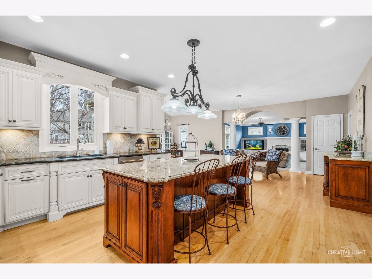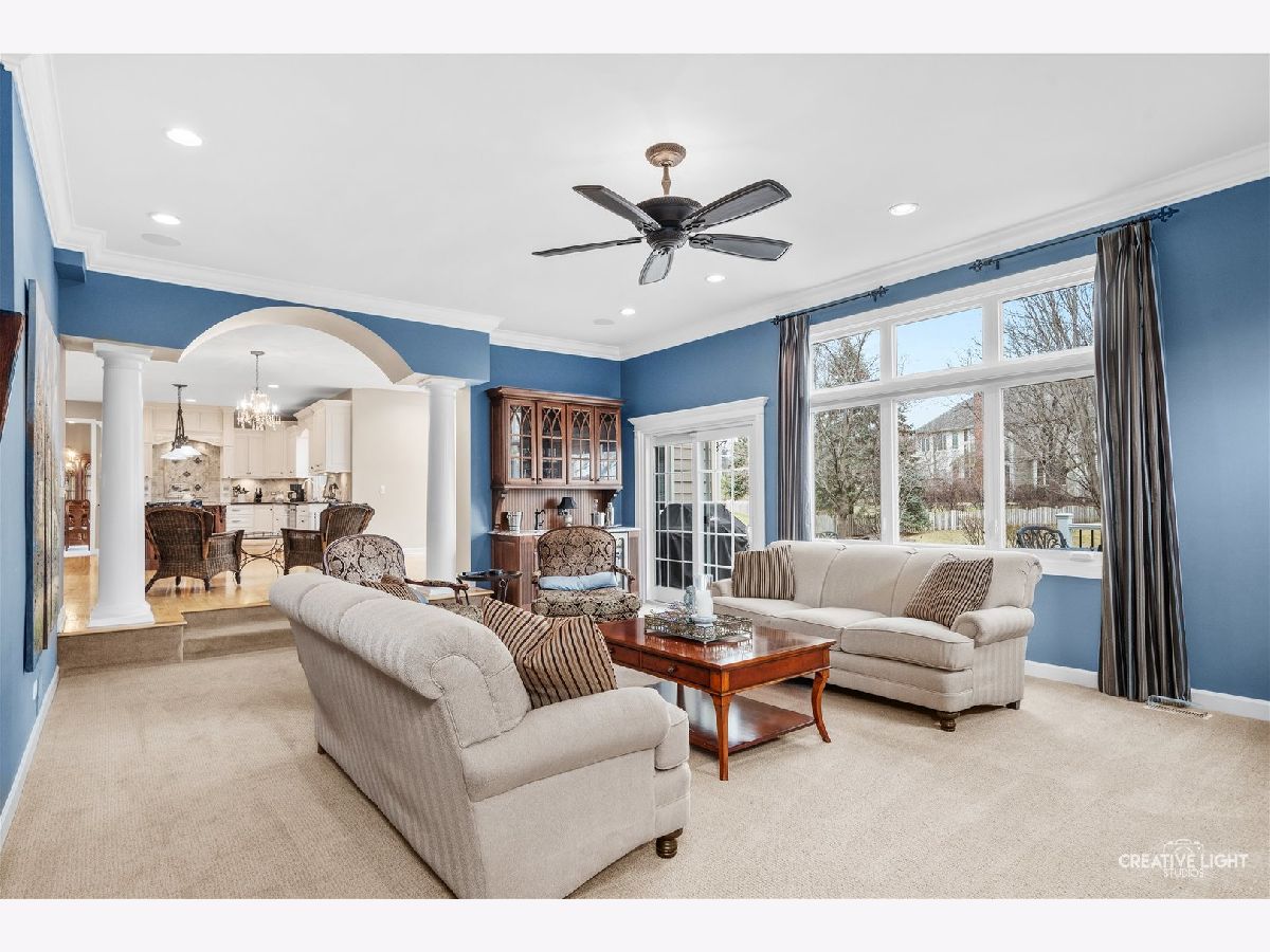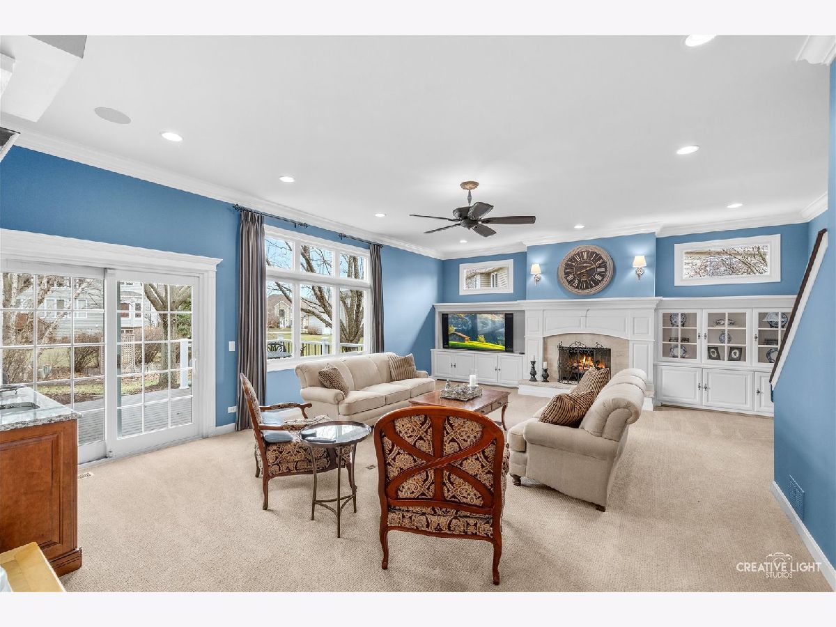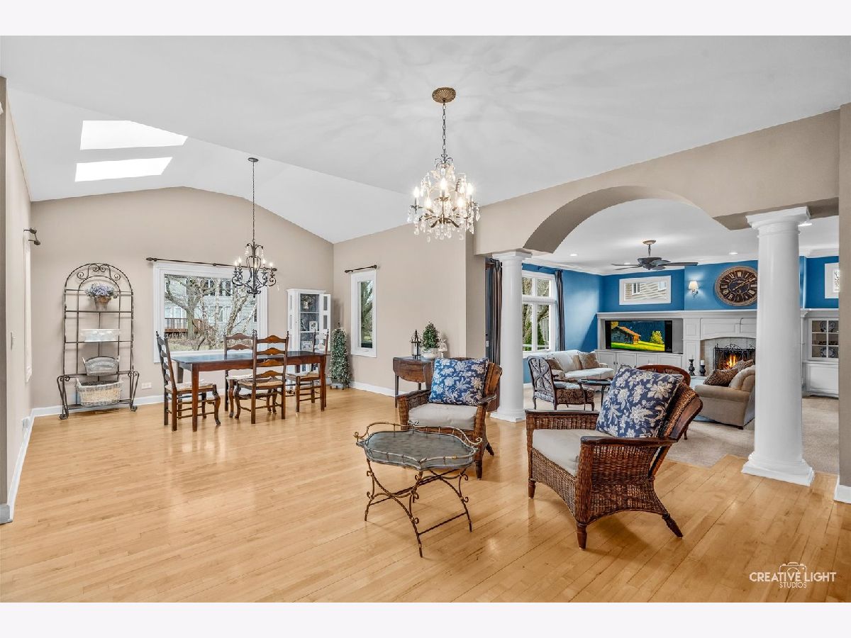 Live your best life in this beautifully appointed home in sought after River Run subdivision. Volume ceilings in living room and dining room provide an elegant area for entertaining. Remodeled gourmet kitchen with stainless steel appliances including a new refrigerator, custom cabinetry, center island with seating provides the perfect space for casual dining & guests. Sunroom with skylights fill the space with sunshine. Kitchen opens to oversized family room featuring thoughtfully considered updates including cabinetry and windows added to flank each side of fireplace, wet bar with rich cabinets & beverage fridge. Main-level office with adjacent full bath offers flexible use as sixth bedroom or in-law space. First floor laundry with updated cabinets & Electrolux washer & dryer. Primary suite has walk-in closet with custom organization system and luxurious renovated bath. Spacious additional bedrooms share updated hall bath. Fourth bedroom includes ensuite bath. Full finished basement with fifth bedroom, half bath, recreation room and wet bar adjacent to wine cellar. Two storage rooms. Scenic backyard to enjoy composite deck, paver patio & water feature. Close proximity to River Run, club membership included with sale has Indoor/Outdoor pool, Clubhouse with banquet facility, Pickleball/tennis courts. Neuqua Valley high school district. Close to shopping, dining and expressway!