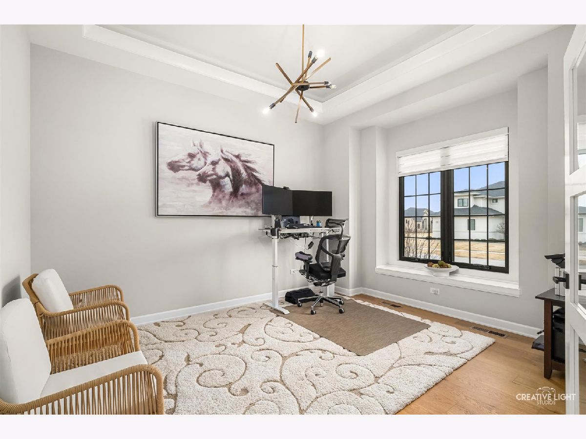 Welcome to this stunning home in the prestigious Ashwood Park community of Naperville, masterfully built by the esteemed quality builder Kings Court and just three years young. This exceptional residence blends timeless elegance with modern luxury, offering sophisticated living in one of Naperville's most sought-after upscale neighborhoods. From the moment you arrive, the impressive curb appeal and desirable side-load three-car garage set the tone for the refined craftsmanship found throughout. Inside, soaring ceilings and expansive windows create a light-filled ambiance, highlighted by a dramatic two-story family room that serves as the stunning focal point of the home-perfect for both grand entertaining and comfortable everyday living. The heart of the home is a true chef's kitchen, thoughtfully designed with high-end appliances, custom cabinetry, premium countertops, and a spacious walk-in, built out pantry for seamless organization. The kitchen flows effortlessly into a sun-drenched sunroom, offering serene views and the perfect setting for morning coffee or relaxed gatherings. The main level also features a private in-law suite, ideal for guests or multi-generational living, along with a dedicated executive office designed for productivity and comfort and a separate powder room. Upstairs, the luxurious primary suite provides a tranquil retreat with spa-inspired finishes, with a decadent master bath and custom closet. Second level of the home offers four spacious bedrooms and four beautifully appointed baths, each showcasing upscale fixtures and designer touches. Laundry Room is located on this level for convenience. Outdoor living is equally inviting with a covered back porch & a patio, creating a seamless extension of the indoor living space-perfect for entertaining or quiet evenings outdoors. The basement is ready to be finished according to your vision, offering endless possibilities for customization. Professionally landscaped with a tinkling waterfall for a relaxed outdoor experience. Residents of Ashwood Park enjoy access to resort-style amenities, including a stunning clubhouse, pool, indoor basketball court, and fully equipped fitness center, all within a vibrant and beautifully maintained community. Combined with top-rated Naperville schools and the superior craftsmanship of Kings Court, this nearly new home represents refined suburban luxury at its finest. An exceptional offering for the most discerning buyer.