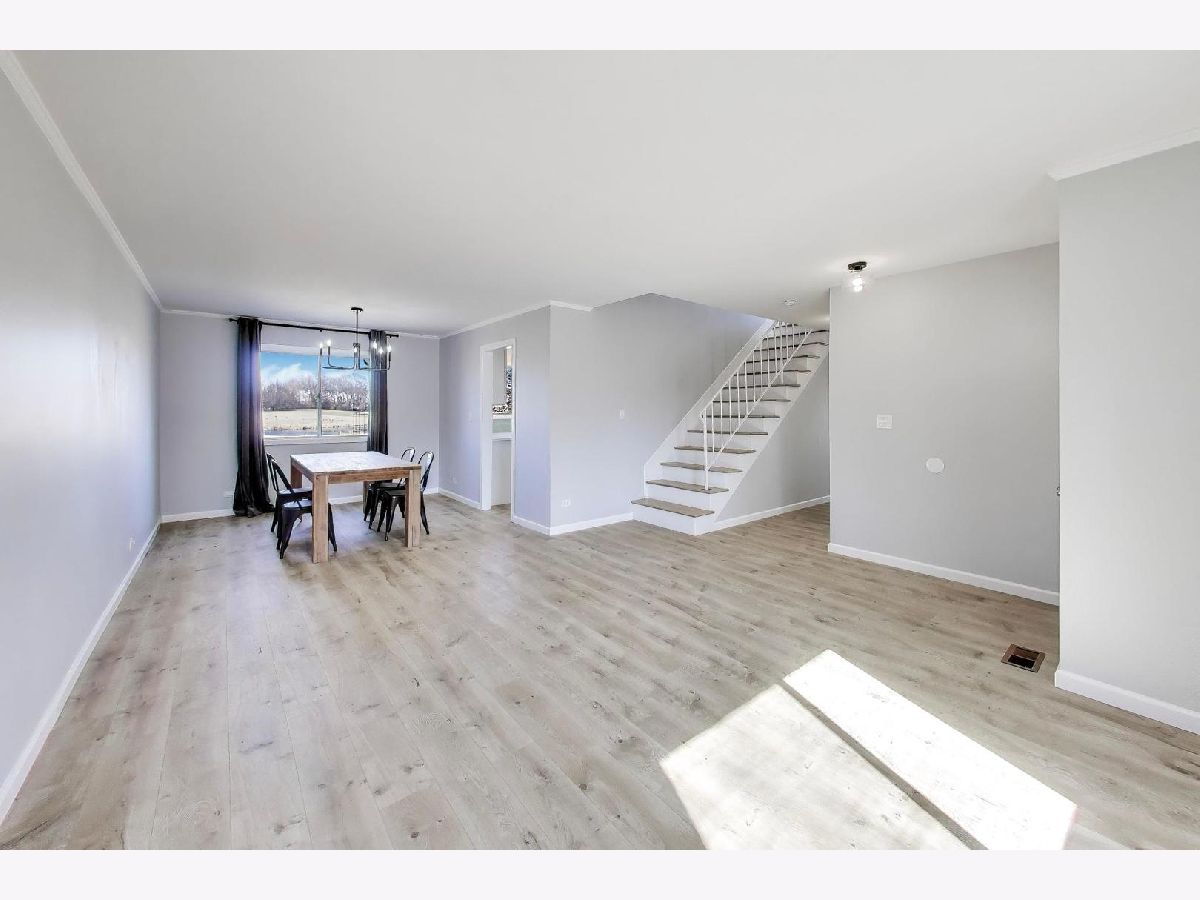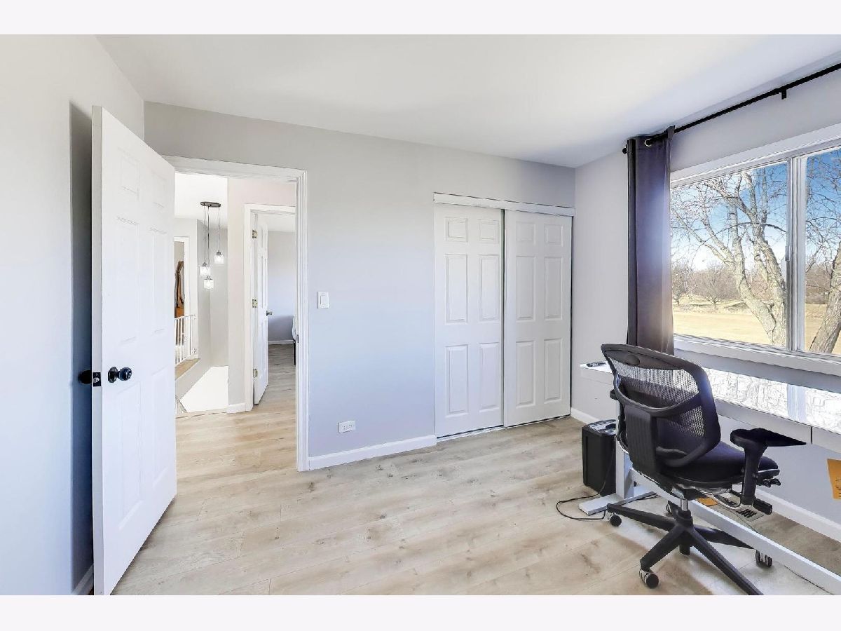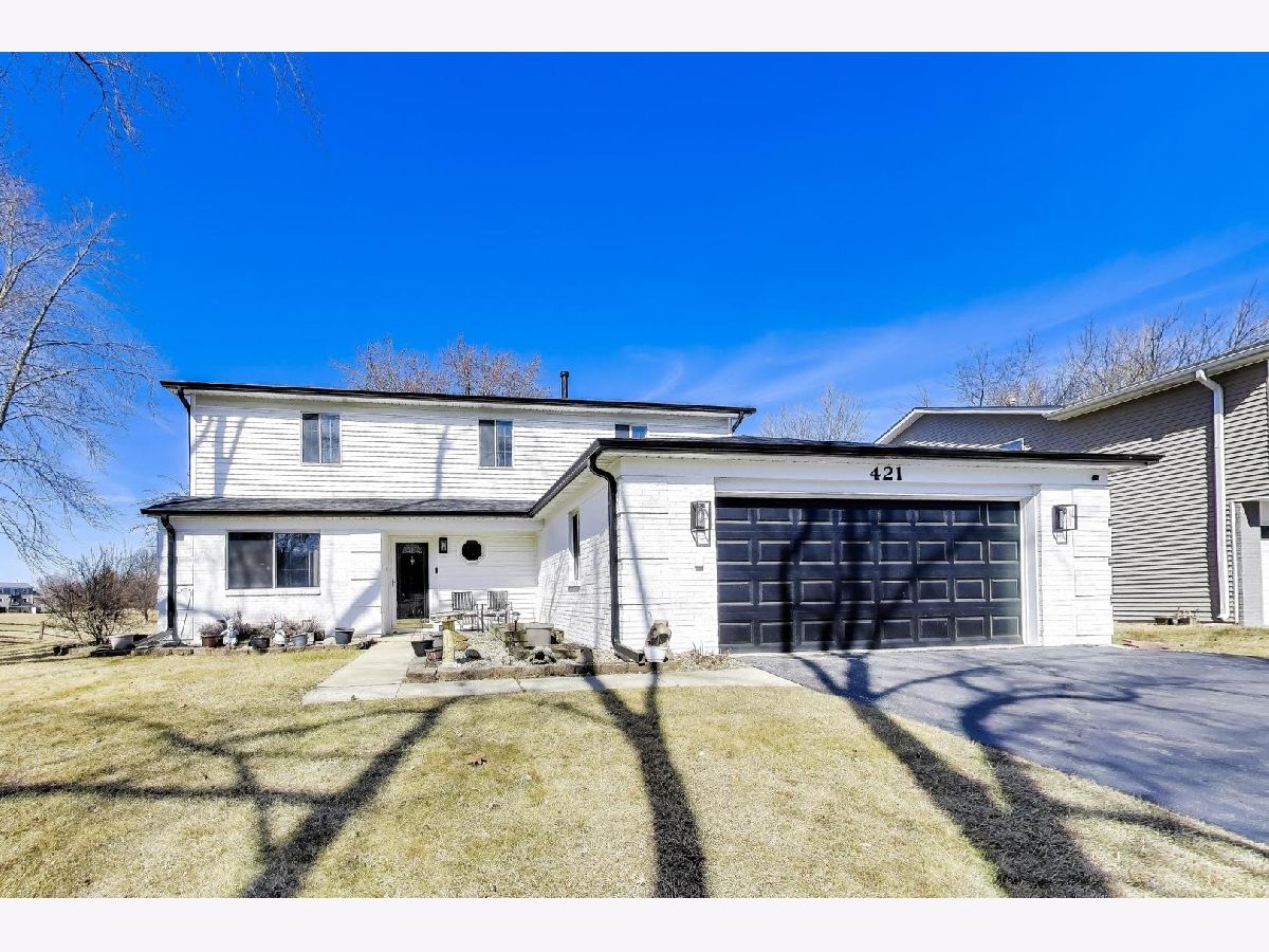 Interior completely remodeled in 2025 along with new roof, siding, gutters and new appliances! This 4-bedroom, 2.5-bath home backs to a golf course with tranquil pond views, creating a true park-like setting right in your own backyard. The yard feels like a private oasis with open green space and peaceful scenery.The main level features a living room, dining room, and a spacious family room with fireplace and two glass sliders-one leading to the side yard and the other to the backyard for seamless indoor-outdoor living. The white kitchen showcases quartz countertops, designer lighting, a striking backsplash, and a dramatic view overlooking the golf course and pond. Light-toned wood laminate flooring runs throughout the home.Upstairs offers four spacious bedrooms and a full bath, including a primary suite with walk-in closet and private bath. A 2.5-car garage provides ample storage. Fully updated and truly move-in ready-everything has been thoughtfully done for you. Age of HVAC and water heater are unknown but has been replaced family believes in the last 10 years. Close to parks, shopping, schools & expressways (I-55 & 355).