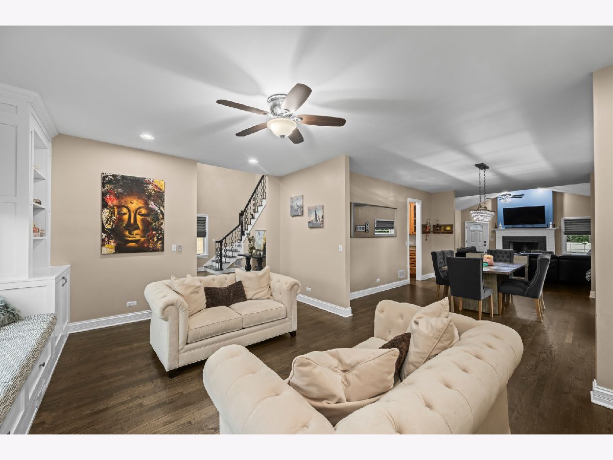 Welcome to 421 West Hawthorne Street, an elegant retreat nestled in the charming community of Arlington Heights. This exquisite two-story residence blends timeless curb appeal with thoughtful modern updates, offering 3,110 square feet of beautifully maintained living space on a coveted corner lot. Step through the grand two-story foyer featuring an oak staircase and six-panel doors, and you'll immediately notice the rich hardwood floors and detailed millwork that create an inviting, sophisticated atmosphere. The open floor plan on the first floor allows for effortless entertaining and large gatherings. The heart of the home centers around a spacious kitchen with Maple cabinetry, crown molding, granite countertops, an island breakfast bar, stainless steel appliances, and a large eating area with sliders leading to the backyard. A butler's pantry connects the kitchen to the formal dining room. The expansive family room is both warm and impressive, with a cathedral ceiling, a floor-to-ceiling brick fireplace (a favorite during winter months), and a wet bar for easy entertaining. Upstairs, you'll find four spacious bedrooms, including a primary suite that serves as a private sanctuary-complete with a whirlpool tub, separate shower, dual sinks, and a walk-in closet. Additional highlights include a full concrete basement with 1,200 square feet of space-ideal for recreation, storage, or customization. A three-car garage adds convenience and plenty of storage. Recent updates reflect the owners' pride of ownership and attention to detail, including windows, exterior doors, and French doors replaced in 2021 (Renewal by Andersen); attic fans replaced in June 2018 and one in October 2024; a second fridge in the mudroom (2024); sump pumps replaced in August 2024; basement ejector pump replaced in 2019; radon fan installed in January 2018; sprinkler system added in 2023; garage doors and openers replaced in 2023; fence installed in 2023; EV charger added in 2023; Kohler smart toilets installed in all three bathrooms (May 2024); exterior painted in 2023; attic insulation upgraded in August 2023; and major systems including A/C (2017), furnace (2017), roof (2018), water heater (2019), refrigerator (2021), oven/stovetop (2017), and dishwasher (2024). The home's mature landscaping adds to its beauty and tranquility. Limelight Panicle Hydrangeas bloom each year and never fail to take your breath away, while a Japanese Cherry Blossom tree graces the south end of the driveway. The covered front porch is perfect for relaxing with a cup of tea, especially when the fragrant Miss Kim Lilac on the east side of the home fills the air. The fenced backyard, surrounded by a six-foot privacy fence, creates an ideal space for summer fun and outdoor enjoyment. Located near parks and within walking distance to downtown Arlington Heights and the train, this distinguished home combines luxury, comfort, and convenience in one remarkable offering.