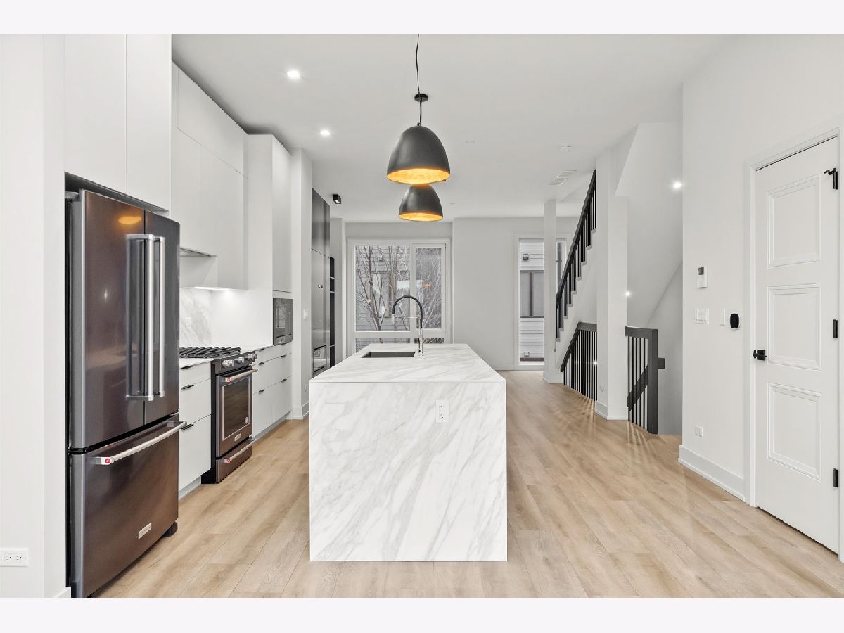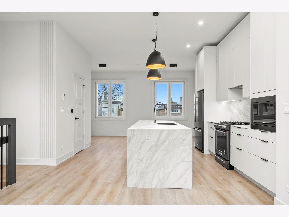 Welcome to AVNDL Estates, a contemporary residential enclave nestled in one of Chicago's most historic and vibrant neighborhoods-Avondale. Developed by the award-winning Noah Properties and thoughtfully designed by Lisek Interiors, this private, gated community offers 52 luxury townhomes ranging from approximately 1,950 to 4,250 square feet, each expertly curated for modern living. Every residence delivers the comfort, privacy, and security of single-family living, featuring a private gated front yard, expansive rooftop deck, attached two-car garage, and secure entry. This exceptional 4-bedroom, 3.1-bath home spans over 2,200 square feet and showcases elevated finishes throughout, including custom European cabinetry, a chef-inspired kitchen with oversized island and stainless-steel appliances, bespoke built-ins, a fireplace, and spa-like bathrooms. A private rooftop retreat provides the perfect setting for entertaining or unwinding. Residents enjoy an impressive collection of on-site amenities just steps from their door, including outdoor grilling and dining areas, a fenced dog run, pet grooming station, and a state-of-the-art indoor fitness center complete with full weight and cardio equipment, private changing rooms, and multiple 60-inch TVs. Move-in ready and enhanced with custom closets and neutral window treatments throughout, this home offers a rare opportunity to experience elevated urban living within a secure, thoughtfully designed community. Explore the property in 3D-click the 3D button to take a virtual tour and experience every detail firsthand.