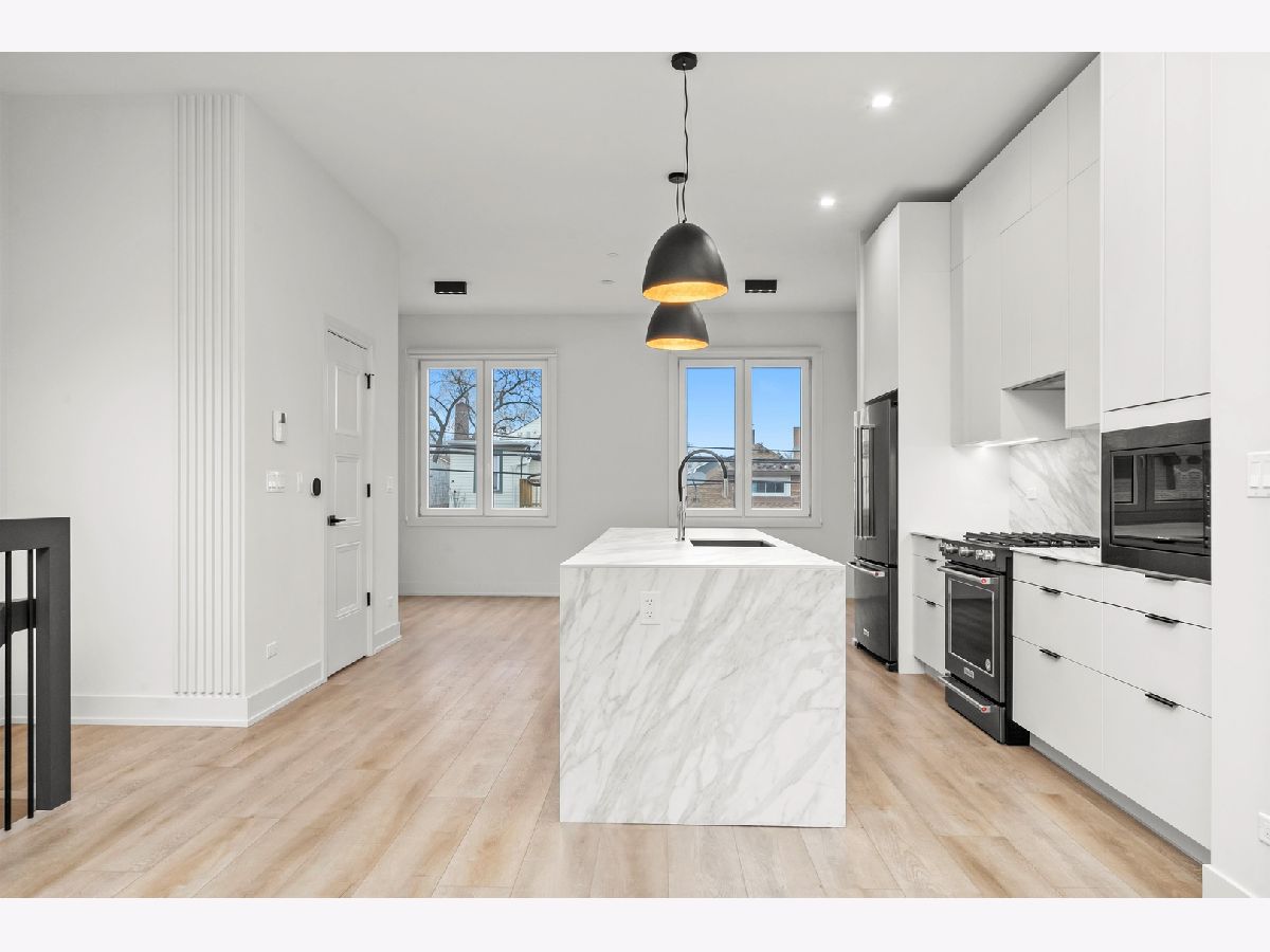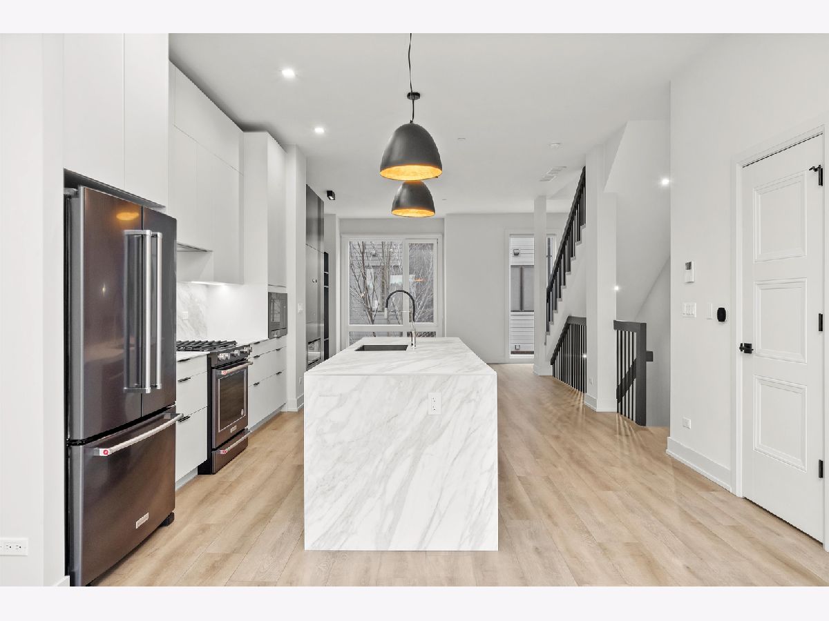 Welcome to AVNDL Estates, a modern residential enclave set within one of Chicago's most historic and vibrant neighborhoods-Avondale. Developed by award-winning Noah Properties and thoughtfully designed by Lisek Interiors, this private, gated community features 52 luxury townhomes ranging from approximately 1,950 to 4,250 square feet, each meticulously curated for contemporary living. Every residence offers the space, privacy, and security of single-family living, complete with a private gated front yard, expansive rooftop deck, attached two-car garage, and secure entry. This exceptional, sun-drenched 4-bedroom, 3.1-bath home spans over 2240 square feet and showcases refined finishes throughout, including custom European cabinetry, a chef-inspired kitchen with oversized island and stainless-steel appliances, bespoke built-ins, a fireplace, spa-like bathrooms, and a private rooftop retreat ideal for entertaining or relaxing. Residents enjoy an impressive suite of amenities just steps from their door, including outdoor grilling and dining areas, a fenced dog run, pet grooming station, and a state-of-the-art indoor fitness center equipped with full weight and cardio equipment, private changing rooms, and multiple 60" TVs. Move-in ready and fully outfitted with custom closets and neutral window treatments throughout, this home presents a rare opportunity to experience elevated urban living in a secure, thoughtfully designed community. Explore the property in 3D-click the 3D button to take a virtual tour and experience every detail firsthand.