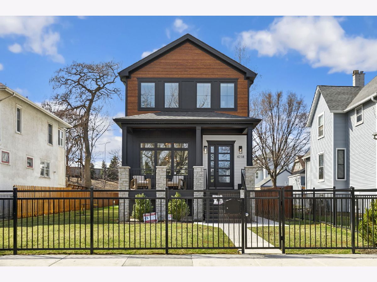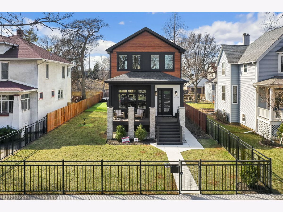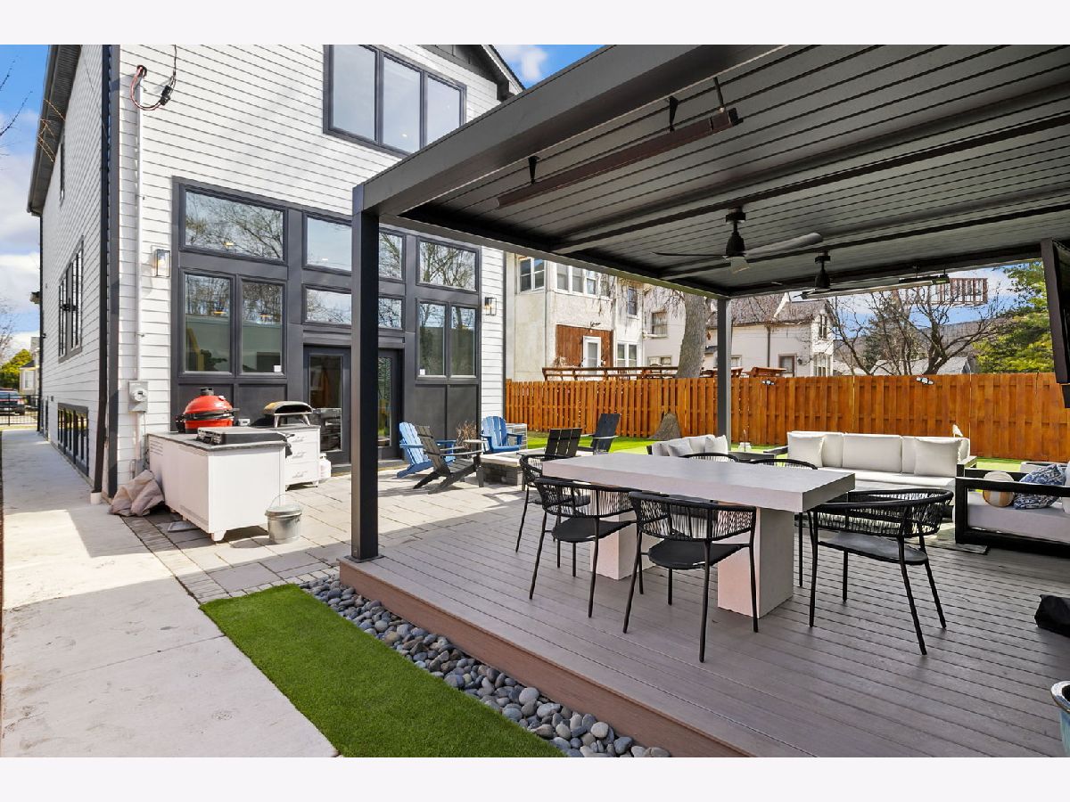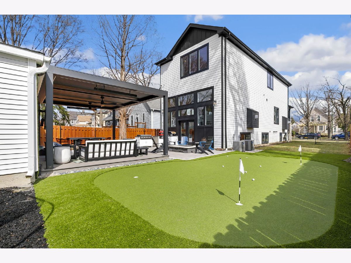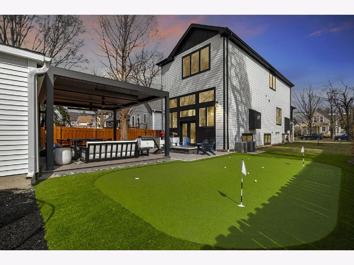 Stunning 2023 newer construction single family home on an oversized 50 x 144 double lot in the heart of Old Irving Park. This extra wide floor plan offers 4 bedrooms and 2 full bathrooms on the upper level, plus a 5th bedroom or office in the finished lower level, delivering a rare amount of space and flexibility for the area. The striking modern farmhouse exterior blends white Hardie siding, wood accents, black board and batten, and stone details, all anchored by a welcoming covered front porch. Inside, a bright and open layout features a combined living and dining space with custom built-ins and a gas fireplace, flowing seamlessly into a chef's kitchen designed for both everyday living and entertaining. Highlights include custom cabinetry, JennAir appliances, a large island with seating, walk-in pantry, and space for a breakfast table. The adjoining sun-filled family room offers a second fireplace and direct access to the mudroom and backyard. Built-in Sonos speakers are wired and installed throughout the home for seamless sound. Upstairs, the spacious primary suite features dual walk-in closets and a beautifully appointed bath with heated floors, soaking tub, frameless glass shower, and double vanity. Three additional bedrooms, a full bath with dual sinks and heated flooring, and a convenient laundry room complete the level. The finished lower level offers impressive ceiling height and natural light, with a large recreation room, wet bar with beverage fridge, 5th bedroom or office, full bath, second laundry hookup, and heated flooring. What truly sets this home apart is the fully built-out outdoor space, completed in 2025. The oversized, gated yard features a custom heated and lit Pratic Italian retractable pergola, deck and patio, and a full outdoor kitchen with custom cabinetry, Blackstone flattop grill, Komodo Joe smoker, and beverage cooler. A 4-hole putting green with chipping area adds a unique touch you rarely see in the city. A detached three-car garage completes the package. Additional features include custom closets and built-ins throughout, skylights, speaker wiring, home security system, and multiple entertaining spaces with two bar areas. All of this in a prime Old Irving location with easy access to 90/94, the Blue Line, Metra, restaurants, shopping, and top-rated Belding Elementary and Disney II Magnet. Opportunities like this rarely come to market in Old Irving Park.