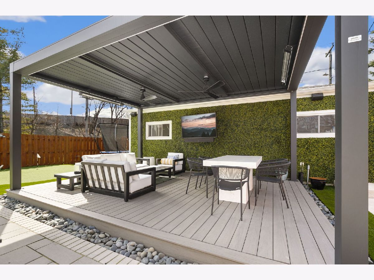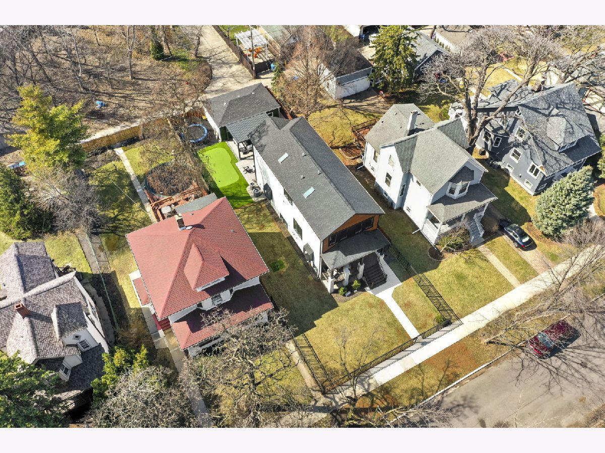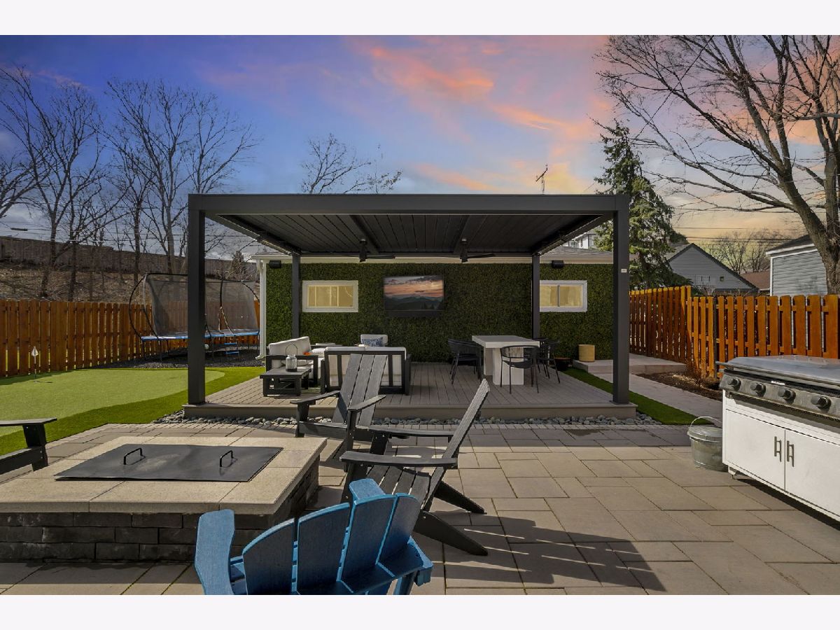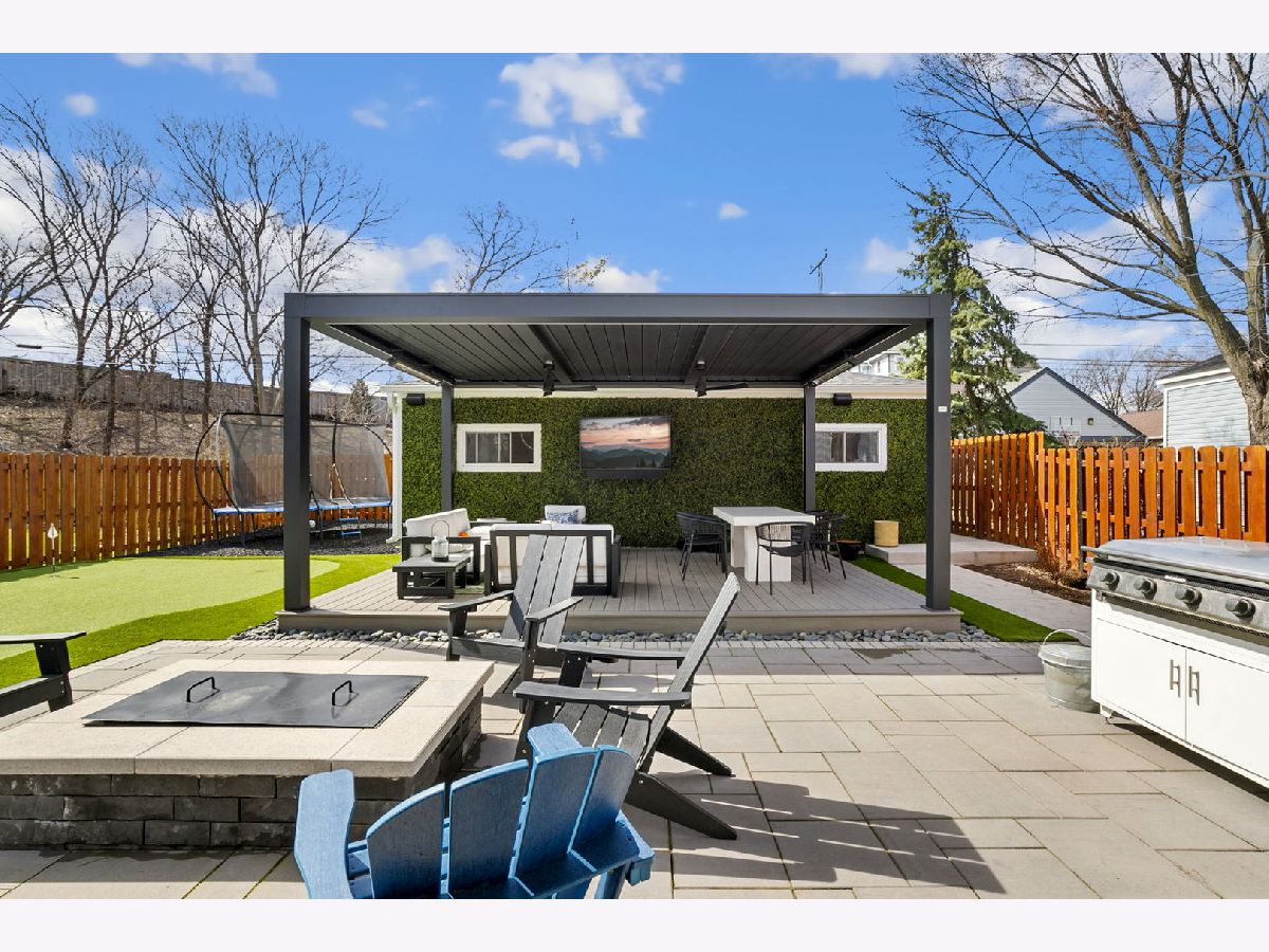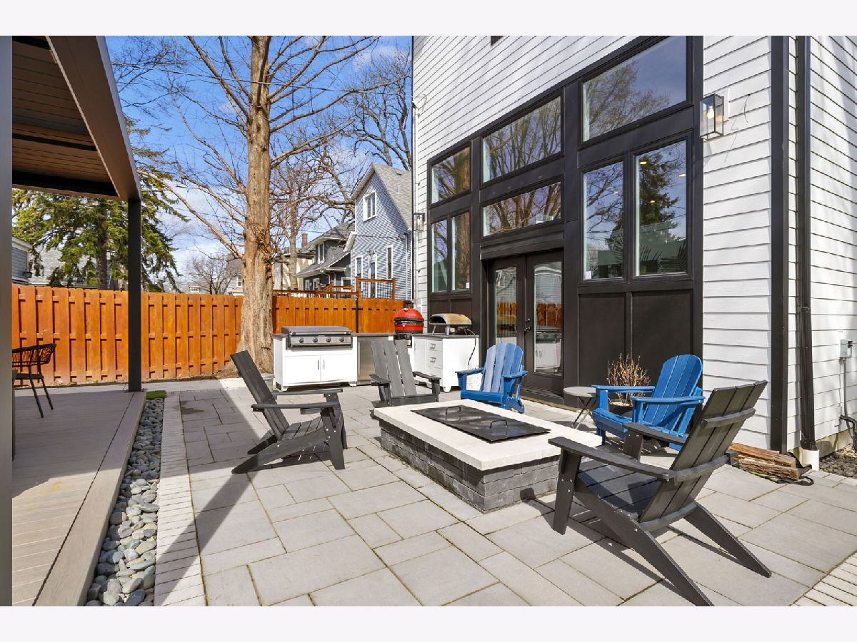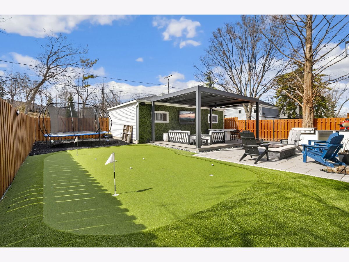 Stunning 2023 newer construction single family home on an oversized 50 x 144 double lot in the heart of Old Irving Park. This extra wide floor plan offers 4 bedrooms and 2 full bathrooms on the upper level, plus a 5th bedroom or office in the finished lower level, delivering a rare amount of space and flexibility for the area. The striking modern farmhouse exterior blends white Hardie siding, wood accents, black board and batten, and stone details, all anchored by a welcoming covered front porch. Inside, a bright and open layout features a combined living and dining space with custom built-ins and a gas fireplace, flowing seamlessly into a chef's kitchen designed for both everyday living and entertaining. Highlights include custom cabinetry, JennAir appliances, a large island with seating, walk-in pantry, and space for a breakfast table. The adjoining sun-filled family room offers a second fireplace and direct access to the mudroom and backyard. Built-in Sonos speakers are wired and installed throughout the home for seamless sound. Upstairs, the spacious primary suite features dual walk-in closets and a beautifully appointed bath with heated floors, soaking tub, frameless glass shower, and double vanity. Three additional bedrooms, a full bath with dual sinks and heated flooring, and a convenient laundry room complete the level. The finished lower level offers impressive ceiling height and natural light, with a large recreation room, wet bar with beverage fridge, 5th bedroom or office, full bath, second laundry hookup, and heated flooring. What truly sets this home apart is the fully built-out outdoor space, completed in 2025. The oversized, gated yard features a custom heated and lit Pratic Italian retractable pergola, deck and patio, and a full outdoor kitchen with custom cabinetry, Blackstone flattop grill, Komodo Joe smoker, and beverage cooler. A 4-hole putting green with chipping area adds a unique touch you rarely see in the city. A detached three-car garage completes the package. Additional features include custom closets and built-ins throughout, skylights, speaker wiring, home security system, and multiple entertaining spaces with two bar areas. All of this in a prime Old Irving location with easy access to 90/94, the Blue Line, Metra, restaurants, shopping, and top-rated Belding Elementary and Disney II Magnet. Opportunities like this rarely come to market in Old Irving Park.