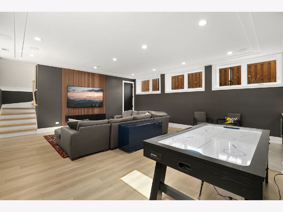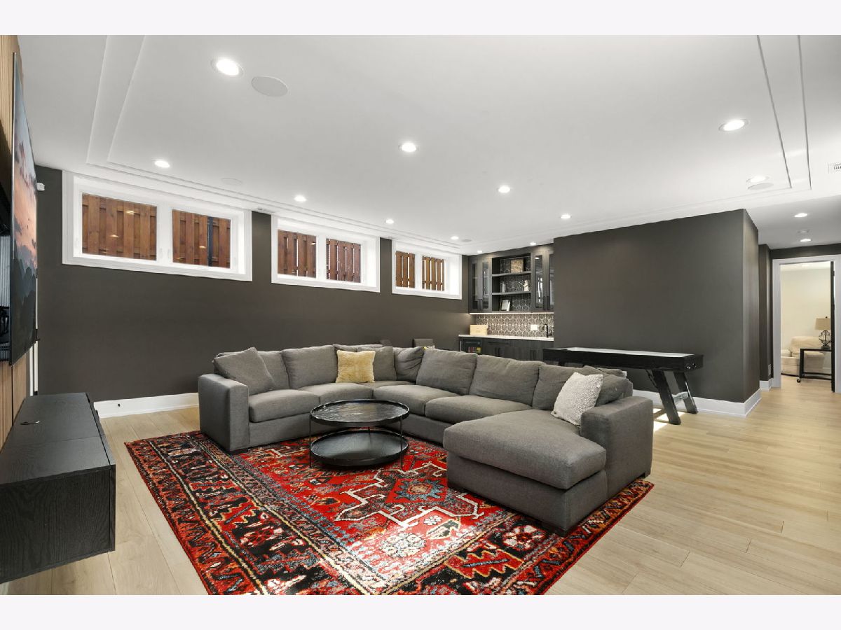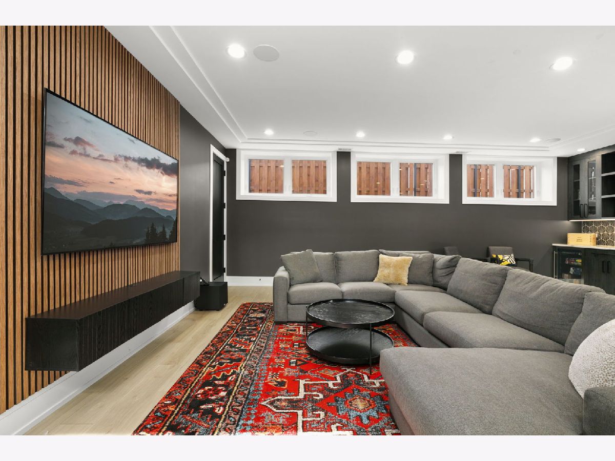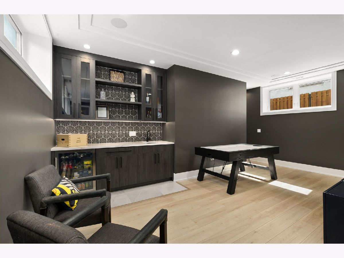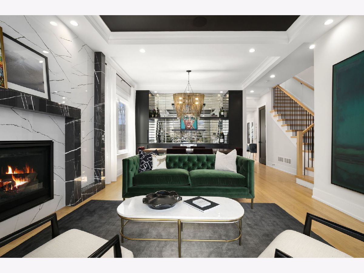 Stunning 2023 newer construction single family home on an oversized 50 x 144 double lot in the heart of Old Irving Park. This extra wide floor plan offers 4 bedrooms and 2 full bathrooms on the upper level, plus a 5th bedroom or office in the finished lower level, delivering a rare amount of space and flexibility for the area. The striking modern farmhouse exterior blends white Hardie siding, wood accents, black board and batten, and stone details, all anchored by a welcoming covered front porch. Inside, a bright and open layout features a combined living and dining space with custom built-ins and a gas fireplace, flowing seamlessly into a chef's kitchen designed for both everyday living and entertaining. Highlights include custom cabinetry, JennAir appliances, a large island with seating, walk-in pantry, and space for a breakfast table. The adjoining sun-filled family room offers a second fireplace and direct access to the mudroom and backyard. Built-in Sonos speakers are wired and installed throughout the home for seamless sound. Upstairs, the spacious primary suite features dual walk-in closets and a beautifully appointed bath with heated floors, soaking tub, frameless glass shower, and double vanity. Three additional bedrooms, a full bath with dual sinks and heated flooring, and a convenient laundry room complete the level. The finished lower level offers impressive ceiling height and natural light, with a large recreation room, wet bar with beverage fridge, 5th bedroom or office, full bath, second laundry hookup, and heated flooring. What truly sets this home apart is the fully built-out outdoor space, completed in 2025. The oversized, gated yard features a custom heated and lit Pratic Italian retractable pergola, deck and patio, and a full outdoor kitchen with custom cabinetry, Blackstone flattop grill, Komodo Joe smoker, and beverage cooler. A 4-hole putting green with chipping area adds a unique touch you rarely see in the city. A detached three-car garage completes the package. Additional features include custom closets and built-ins throughout, skylights, speaker wiring, home security system, and multiple entertaining spaces with two bar areas. All of this in a prime Old Irving location with easy access to 90/94, the Blue Line, Metra, restaurants, shopping, and top-rated Belding Elementary and Disney II Magnet. Opportunities like this rarely come to market in Old Irving Park.