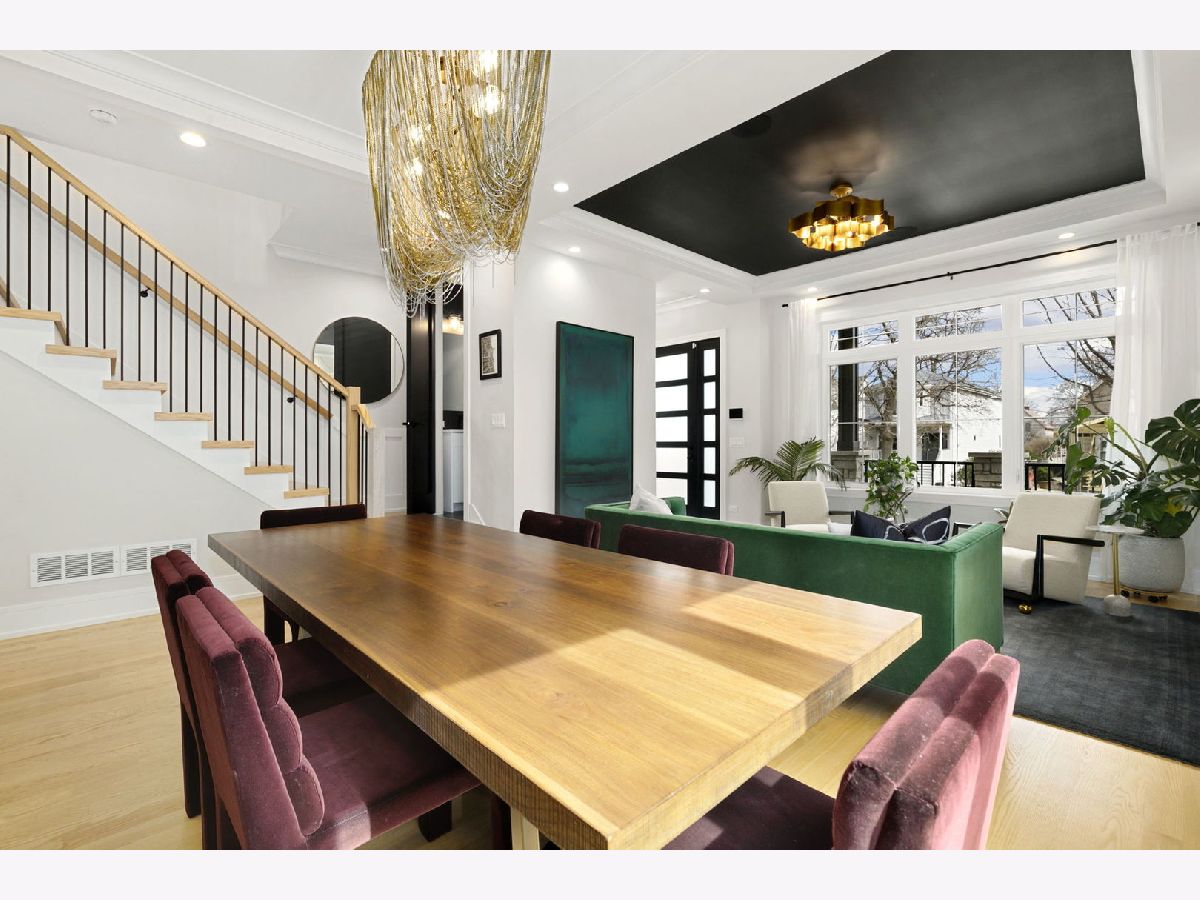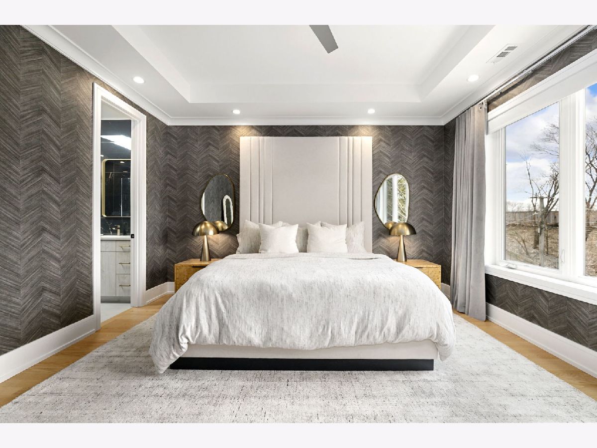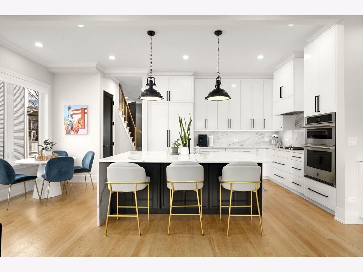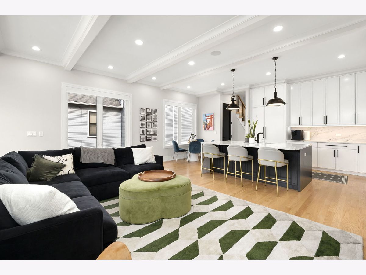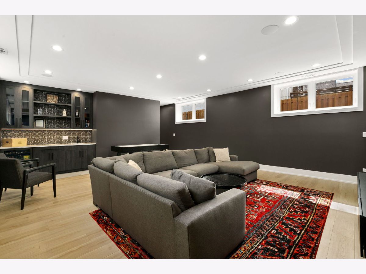 Stunning 2023 newer construction single family home on an oversized 50 x 144 double lot in the heart of Old Irving Park. This extra wide floor plan offers 4 bedrooms and 2 full bathrooms on the upper level, plus a 5th bedroom or office in the finished lower level, delivering a rare amount of space and flexibility for the area. The striking modern farmhouse exterior blends white Hardie siding, wood accents, black board and batten, and stone details, all anchored by a welcoming covered front porch. Inside, a bright and open layout features a combined living and dining space with custom built-ins and a gas fireplace, flowing seamlessly into a chef's kitchen designed for both everyday living and entertaining. Highlights include custom cabinetry, JennAir appliances, a large island with seating, walk-in pantry, and space for a breakfast table. The adjoining sun-filled family room offers a second fireplace and direct access to the mudroom and backyard. Built-in Sonos speakers are wired and installed throughout the home for seamless sound. Upstairs, the spacious primary suite features dual walk-in closets and a beautifully appointed bath with heated floors, soaking tub, frameless glass shower, and double vanity. Three additional bedrooms, a full bath with dual sinks and heated flooring, and a convenient laundry room complete the level. The finished lower level offers impressive ceiling height and natural light, with a large recreation room, wet bar with beverage fridge, 5th bedroom or office, full bath, second laundry hookup, and heated flooring. What truly sets this home apart is the fully built-out outdoor space, completed in 2025. The oversized, gated yard features a custom heated and lit Pratic Italian retractable pergola, deck and patio, and a full outdoor kitchen with custom cabinetry, Blackstone flattop grill, Komodo Joe smoker, and beverage cooler. A 4-hole putting green with chipping area adds a unique touch you rarely see in the city. A detached three-car garage completes the package. Additional features include custom closets and built-ins throughout, skylights, speaker wiring, home security system, and multiple entertaining spaces with two bar areas. All of this in a prime Old Irving location with easy access to 90/94, the Blue Line, Metra, restaurants, shopping, and top-rated Belding Elementary and Disney II Magnet. Opportunities like this rarely come to market in Old Irving Park.