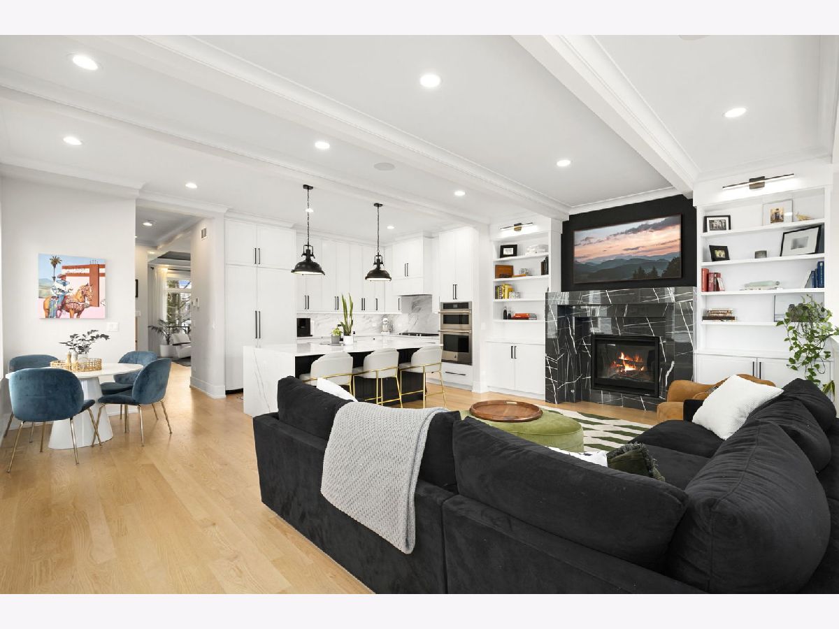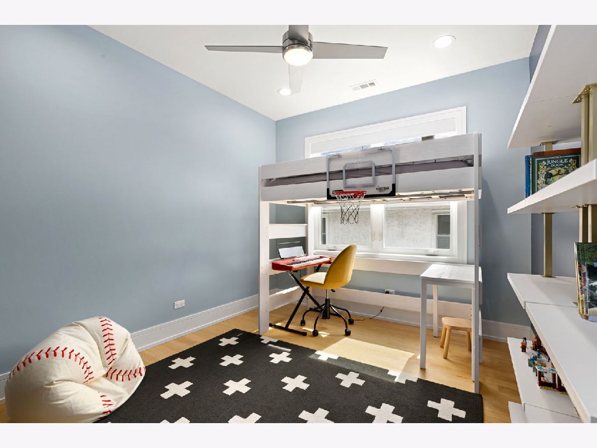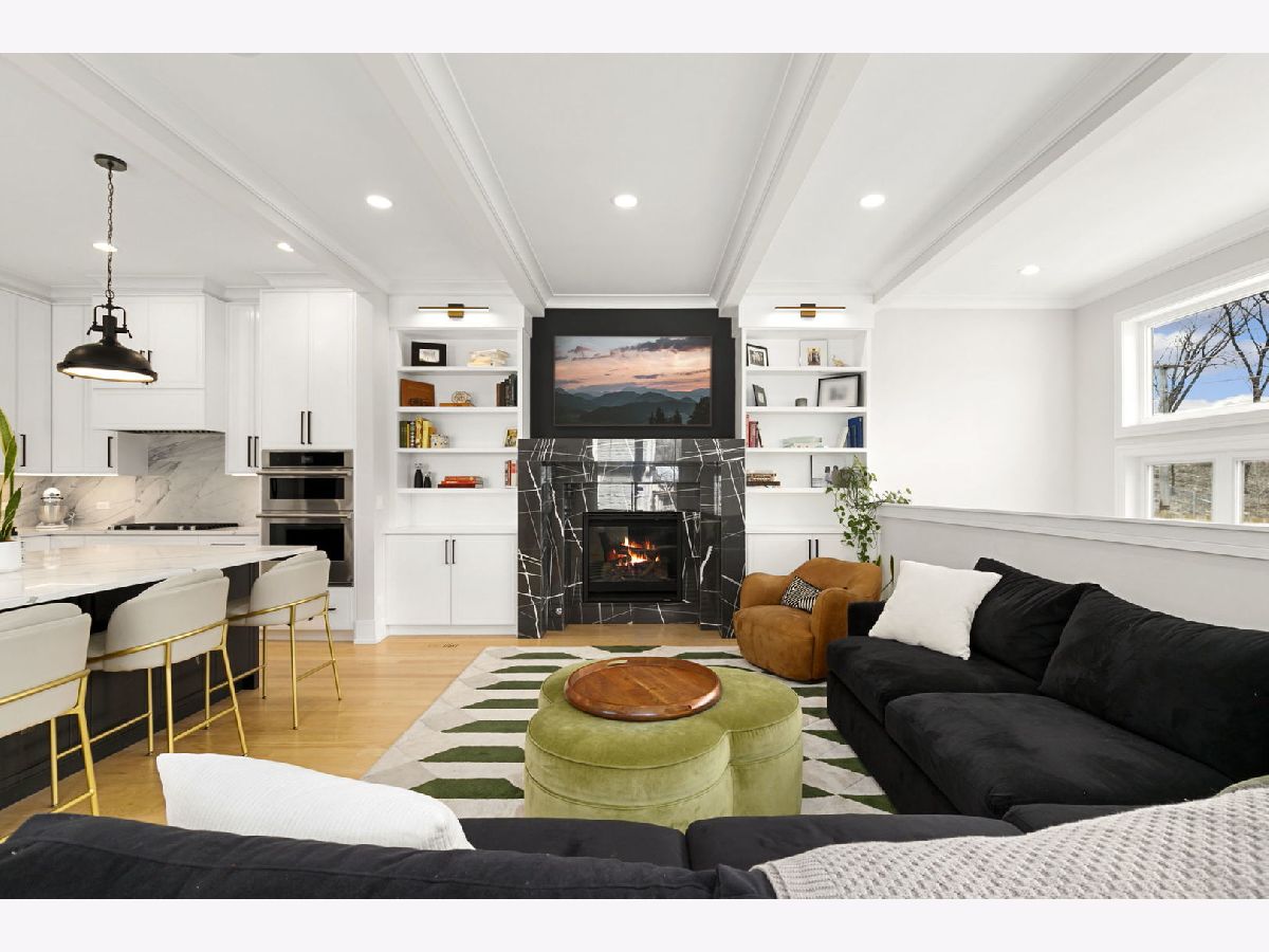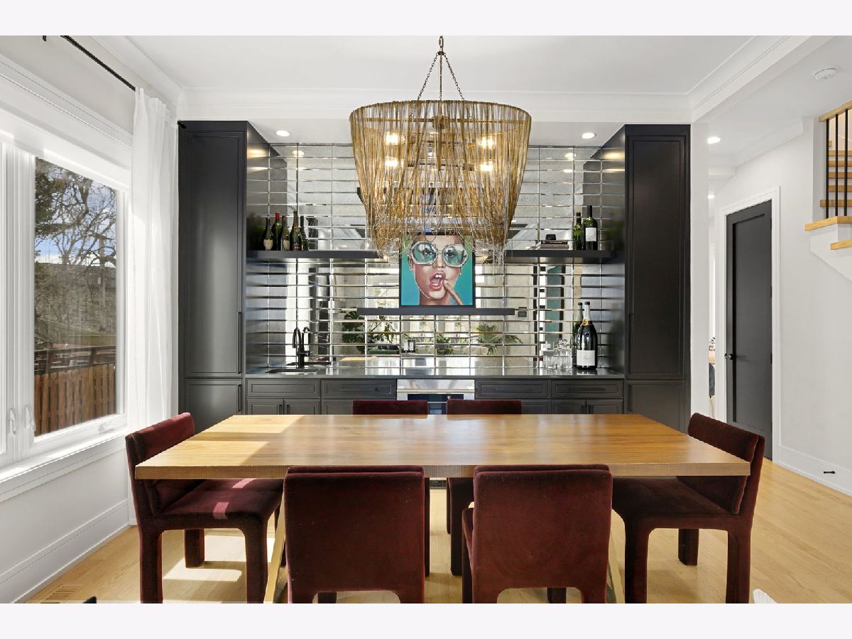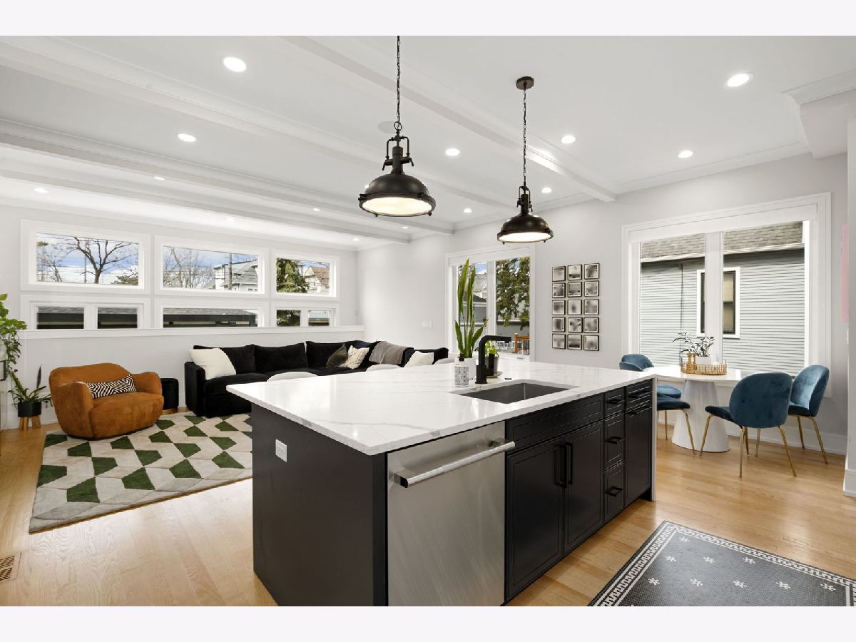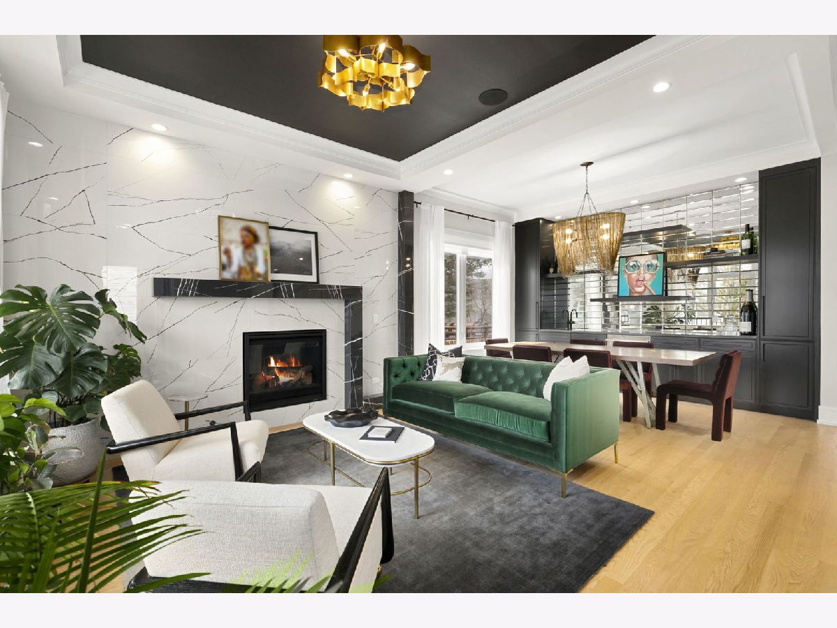 Stunning 2023 newer construction single family home on an oversized 50 x 144 double lot in the heart of Old Irving Park. This extra wide floor plan offers 4 bedrooms and 2 full bathrooms on the upper level, plus a 5th bedroom or office in the finished lower level, delivering a rare amount of space and flexibility for the area. The striking modern farmhouse exterior blends white Hardie siding, wood accents, black board and batten, and stone details, all anchored by a welcoming covered front porch. Inside, a bright and open layout features a combined living and dining space with custom built-ins and a gas fireplace, flowing seamlessly into a chef's kitchen designed for both everyday living and entertaining. Highlights include custom cabinetry, JennAir appliances, a large island with seating, walk-in pantry, and space for a breakfast table. The adjoining sun-filled family room offers a second fireplace and direct access to the mudroom and backyard. Built-in Sonos speakers are wired and installed throughout the home for seamless sound. Upstairs, the spacious primary suite features dual walk-in closets and a beautifully appointed bath with heated floors, soaking tub, frameless glass shower, and double vanity. Three additional bedrooms, a full bath with dual sinks and heated flooring, and a convenient laundry room complete the level. The finished lower level offers impressive ceiling height and natural light, with a large recreation room, wet bar with beverage fridge, 5th bedroom or office, full bath, second laundry hookup, and heated flooring. What truly sets this home apart is the fully built-out outdoor space, completed in 2025. The oversized, gated yard features a custom heated and lit Pratic Italian retractable pergola, deck and patio, and a full outdoor kitchen with custom cabinetry, Blackstone flattop grill, Komodo Joe smoker, and beverage cooler. A 4-hole putting green with chipping area adds a unique touch you rarely see in the city. A detached three-car garage completes the package. Additional features include custom closets and built-ins throughout, skylights, speaker wiring, home security system, and multiple entertaining spaces with two bar areas. All of this in a prime Old Irving location with easy access to 90/94, the Blue Line, Metra, restaurants, shopping, and top-rated Belding Elementary and Disney II Magnet. Opportunities like this rarely come to market in Old Irving Park.