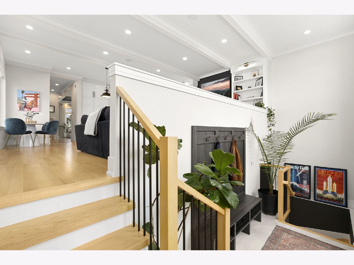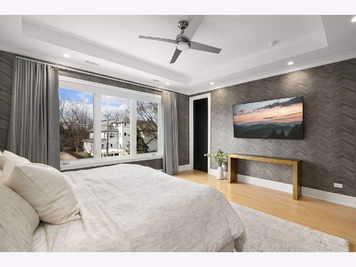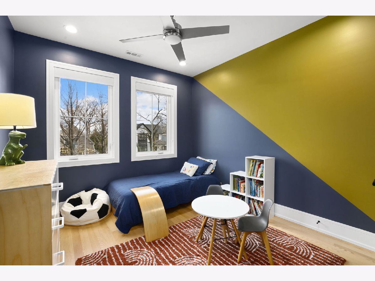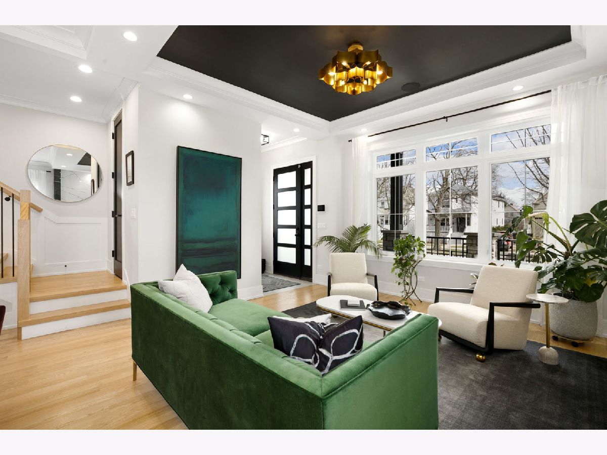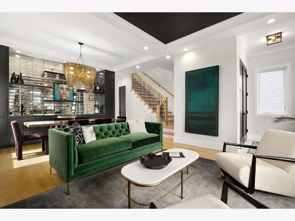 Stunning 2023 newer construction single family home on an oversized 50 x 144 double lot in the heart of Old Irving Park. This extra wide floor plan offers 4 bedrooms and 2 full bathrooms on the upper level, plus a 5th bedroom or office in the finished lower level, delivering a rare amount of space and flexibility for the area. The striking modern farmhouse exterior blends white Hardie siding, wood accents, black board and batten, and stone details, all anchored by a welcoming covered front porch. Inside, a bright and open layout features a combined living and dining space with custom built-ins and a gas fireplace, flowing seamlessly into a chef's kitchen designed for both everyday living and entertaining. Highlights include custom cabinetry, JennAir appliances, a large island with seating, walk-in pantry, and space for a breakfast table. The adjoining sun-filled family room offers a second fireplace and direct access to the mudroom and backyard. Built-in Sonos speakers are wired and installed throughout the home for seamless sound. Upstairs, the spacious primary suite features dual walk-in closets and a beautifully appointed bath with heated floors, soaking tub, frameless glass shower, and double vanity. Three additional bedrooms, a full bath with dual sinks and heated flooring, and a convenient laundry room complete the level. The finished lower level offers impressive ceiling height and natural light, with a large recreation room, wet bar with beverage fridge, 5th bedroom or office, full bath, second laundry hookup, and heated flooring. What truly sets this home apart is the fully built-out outdoor space, completed in 2025. The oversized, gated yard features a custom heated and lit Pratic Italian retractable pergola, deck and patio, and a full outdoor kitchen with custom cabinetry, Blackstone flattop grill, Komodo Joe smoker, and beverage cooler. A 4-hole putting green with chipping area adds a unique touch you rarely see in the city. A detached three-car garage completes the package. Additional features include custom closets and built-ins throughout, skylights, speaker wiring, home security system, and multiple entertaining spaces with two bar areas. All of this in a prime Old Irving location with easy access to 90/94, the Blue Line, Metra, restaurants, shopping, and top-rated Belding Elementary and Disney II Magnet. Opportunities like this rarely come to market in Old Irving Park.