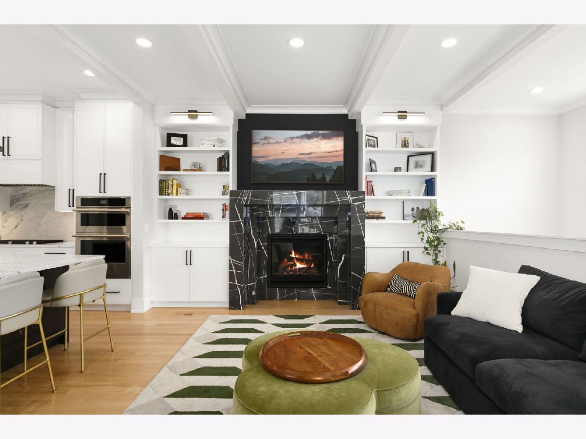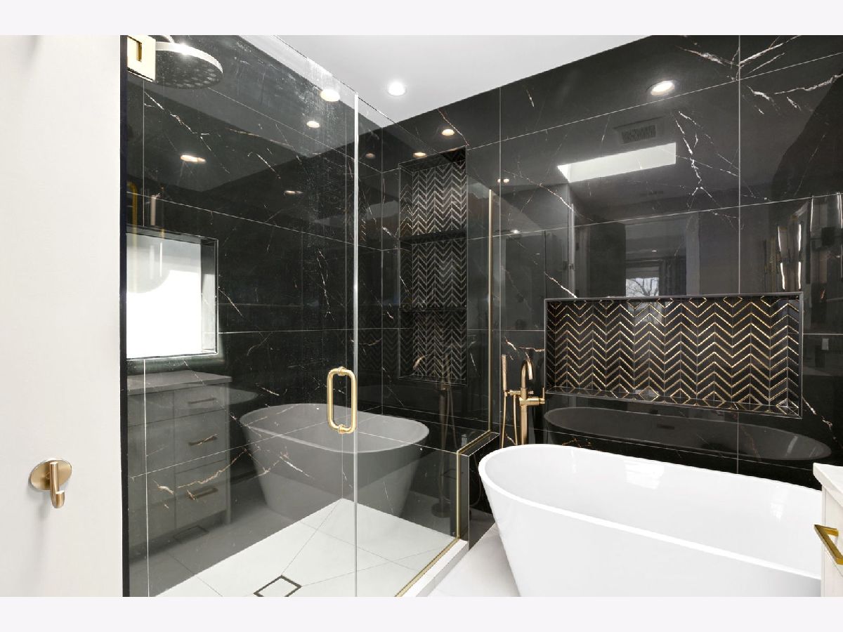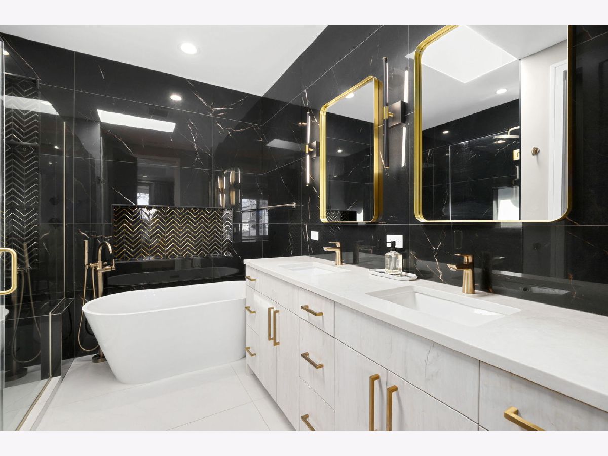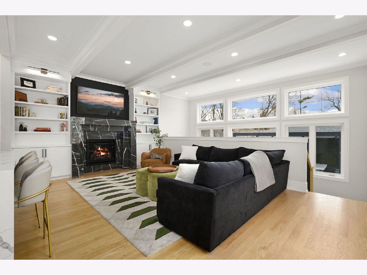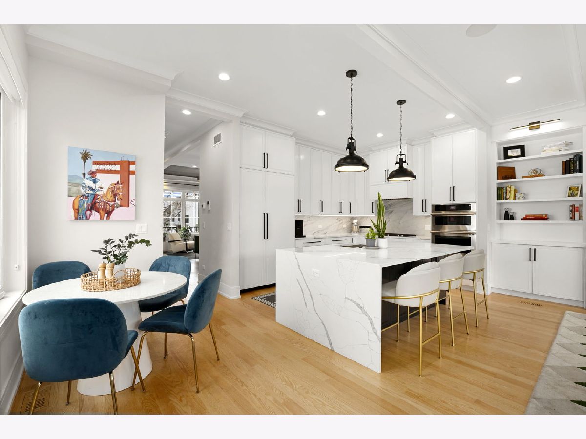 Stunning 2023 newer construction single family home on an oversized 50 x 144 double lot in the heart of Old Irving Park. This extra wide floor plan offers 4 bedrooms and 2 full bathrooms on the upper level, plus a 5th bedroom or office in the finished lower level, delivering a rare amount of space and flexibility for the area. The striking modern farmhouse exterior blends white Hardie siding, wood accents, black board and batten, and stone details, all anchored by a welcoming covered front porch. Inside, a bright and open layout features a combined living and dining space with custom built-ins and a gas fireplace, flowing seamlessly into a chef's kitchen designed for both everyday living and entertaining. Highlights include custom cabinetry, JennAir appliances, a large island with seating, walk-in pantry, and space for a breakfast table. The adjoining sun-filled family room offers a second fireplace and direct access to the mudroom and backyard. Built-in Sonos speakers are wired and installed throughout the home for seamless sound. Upstairs, the spacious primary suite features dual walk-in closets and a beautifully appointed bath with heated floors, soaking tub, frameless glass shower, and double vanity. Three additional bedrooms, a full bath with dual sinks and heated flooring, and a convenient laundry room complete the level. The finished lower level offers impressive ceiling height and natural light, with a large recreation room, wet bar with beverage fridge, 5th bedroom or office, full bath, second laundry hookup, and heated flooring. What truly sets this home apart is the fully built-out outdoor space, completed in 2025. The oversized, gated yard features a custom heated and lit Pratic Italian retractable pergola, deck and patio, and a full outdoor kitchen with custom cabinetry, Blackstone flattop grill, Komodo Joe smoker, and beverage cooler. A 4-hole putting green with chipping area adds a unique touch you rarely see in the city. A detached three-car garage completes the package. Additional features include custom closets and built-ins throughout, skylights, speaker wiring, home security system, and multiple entertaining spaces with two bar areas. All of this in a prime Old Irving location with easy access to 90/94, the Blue Line, Metra, restaurants, shopping, and top-rated Belding Elementary and Disney II Magnet. Opportunities like this rarely come to market in Old Irving Park.
