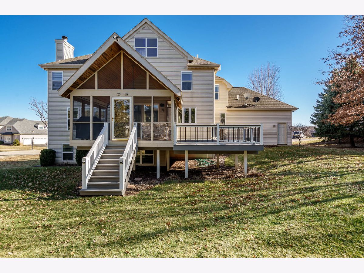 Located in upscale Burled Wood subdivision, this beautiful 5-bedroom, 3.5-bath offers approximately 3,900 square feet of thoughtfully designed living space. Custom built-ins, arched doorways and custom millwork, rounded corners, solid panel oversized doors, and gorgeous hardwood floors add warmth and character throughout. A dramatic two-story foyer welcomes you into an ideal layout for both everyday living and entertaining. The open-concept kitchen features center island, eating area, ample cabinet space, walk-in pantry and flows seamlessly into the living area featuring gas fireplace surrounded by built-ins. A stunning vaulted ceiling sunroom offers the perfect place to unwind in the hot tub, with easy access to the deck and a meticulously landscaped private backyard surrounded by evergreens. High ceilings throughout, the main floor offers a formal dining room, versatile office/playroom with French doors, laundry/mudroom with cabinets and sink, and powder room. Upstairs, French doors lead to the spacious primary suite featuring an en-suite bath with granite countertops, double vanities, separate shower, and Jacuzzi tub. Three additional spacious bedrooms and a full bath complete the second level. Third-story loft potential provides an exciting opportunity for additional finished space. The impressive walkout basement featuring large windows adds over 1,000 square feet of living space, including a large recreation room, fifth bedroom, full bath, and abundant storage. Three-car garage with storage. This home offers a wonderful blend of space, comfort, and timeless style in Boone county, in desirable school district with quick access to shopping, recreational areas, Belvidere, Rockford, Machesney Park and I-90.