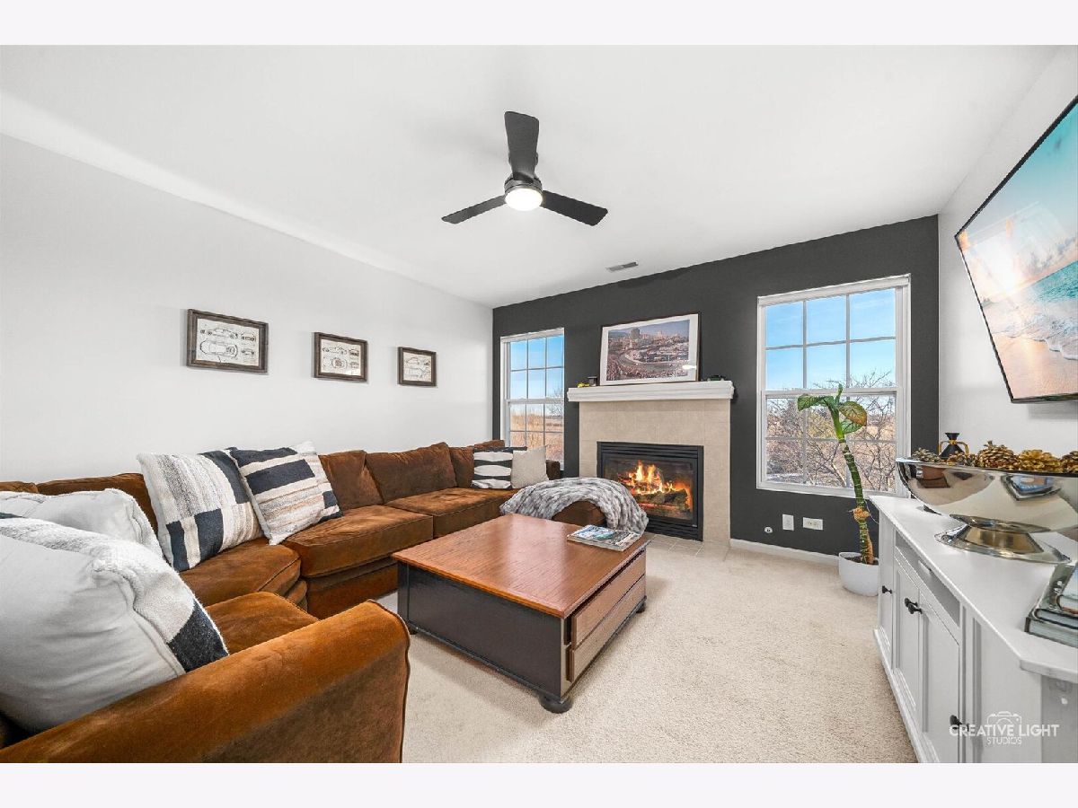 Beautifully maintained townhome with an open, airy floor plan and 9' ceilings throughout the main level. Spacious foyer with hardwood flooring leads into the combined living and dining areas, ideal for entertaining. Fully remodeled kitchen features brand new soft-close cabinets, quartz countertops, extra-deep farmhouse sink, breakfast bar seating, and a walk-in pantry. The living room offers a cozy fireplace and built-in media niche with hidden wiring. Sliding doors from the dining area open to a private patio overlooking the neighborhood pond and walking path. The second level features two loft spaces, including a larger loft with a second fireplace that could easily be converted into a third bedroom. Primary suite offers a cathedral ceiling, walk-in closet with organizer, and private bath. Second bedroom is located near the hall bath, and the second-floor laundry adds everyday convenience. Full basement provides ample storage or future living space. Maintenance-free living includes lawn care and snow removal. Community amenities include pond, walking paths, tot lot, and park district playground. Highly desirable Oswego 308 schools and a convenient location near shopping, dining, and I-88.