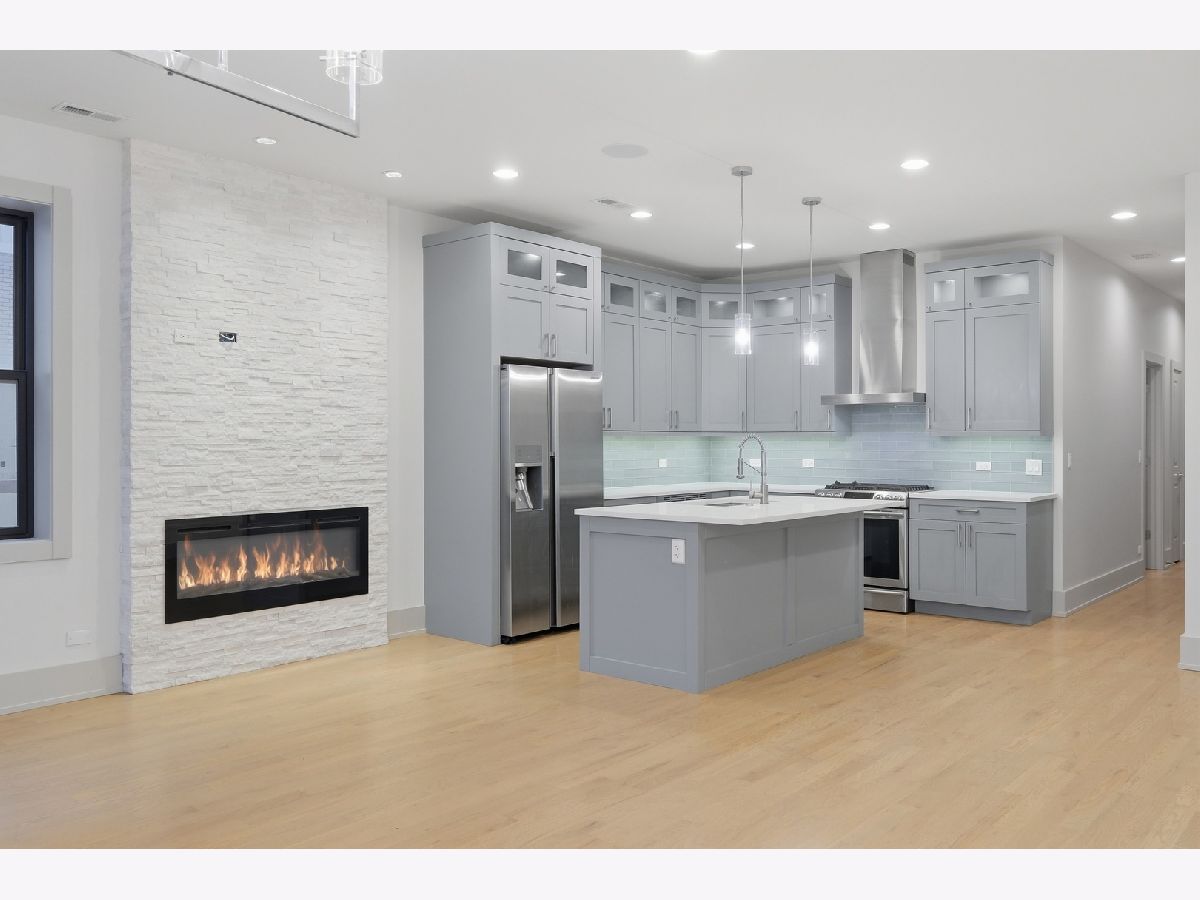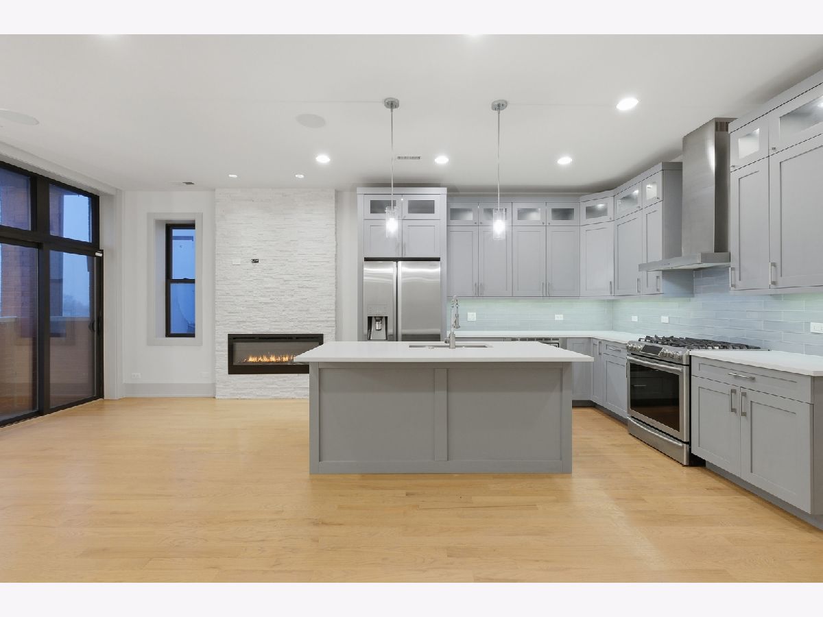 Welcome to Ellis Ave. This stunning top-floor 3-bedroom, 2.5-bath condo offers modern living at its finest. As you enter the unit, you're welcomed by an open-concept living and kitchen area with soaring ceilings and eastern views, filling the space with natural light and creating the perfect setting to enjoy the sunrise from your private balcony overlooking Ellis Ave. This beautiful condo features a chef's kitchen equipped with stainless steel appliances, modern cabinetry, quartz countertops, and a large island with bar seating that seamlessly flows into the living area. The space is perfect for entertaining, highlighted by a modern fireplace and surround sound speakers. Down the hallway, you'll find three spacious bedrooms, including a primary suite with a generous walk-in closet and a luxurious en-suite bathroom. The primary bedroom also features an oversized private rear balcony. Residents enjoy direct access to the rooftop, perfect for relaxing or entertaining while taking in city views. The property also includes a gated garage parking space, which is included in the price. The building is secure with coded entry from both the front and rear. Constructed less than 10 years ago, this modern condo is ready for its second owner. The location is excellent, just steps from the Lake Shore Drive Trail and Oakwood Beach, with plenty of nearby cafes, restaurants, parks, and museums. Commuting is convenient with easy access to the Green and Red Lines, Lake Shore Drive, and the Dan Ryan Expressway. Downtown Chicago is just one bus ride away or about a 10-minute drive. Don't miss this opportunity - schedule your showing today!