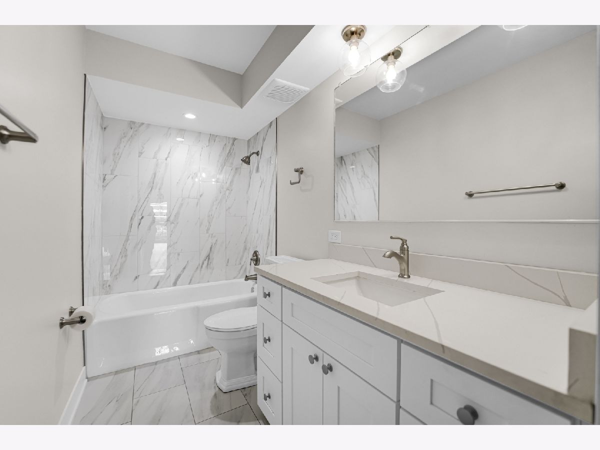 Rehabbed 2-bedroom condo in the highly sought-after Old Irving Park neighborhood! This TOP -floor, 1,100 sq ft unit features a brand-new kitchen with modern cabinets, quartz countertops, and new flooring throughout. Enjoy abundant natural light in the spacious living room, which opens to a large balcony overlooking a peaceful courtyard-perfect for entertaining family and friends. Both generously sized bedrooms offer flexibility for large furniture or a comfortable home office. Recent upgrades include a fully renovated bathroom, new windows, and new A/C wall units. Additional highlights include 1 assigned parking space (#13), secure basement storage (#3F), and radiant floor heating included in the monthly assessment. Building is pet friendly. Ideally located just minutes from I-90/94, . The ultimate in convenience- just blocks away from the BLUE LINE & METRA station , coffee shops, and dining options-yet tucked away on a quiet, tree-lined street. Enjoy low HOA dues and taxes. HOA covers heat, exterior maintenance, and more. Rental-friendly building. The property is located within a high-performing Belding school district.This one won't last!
