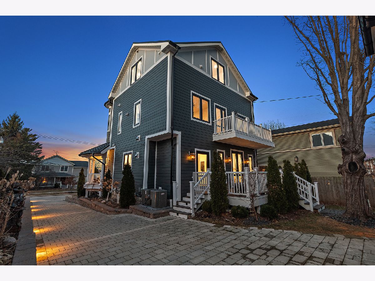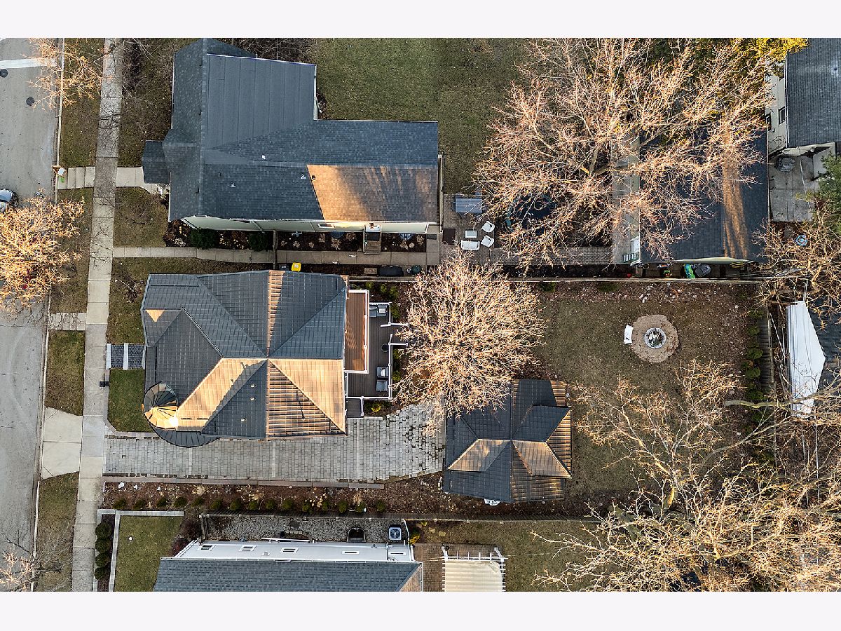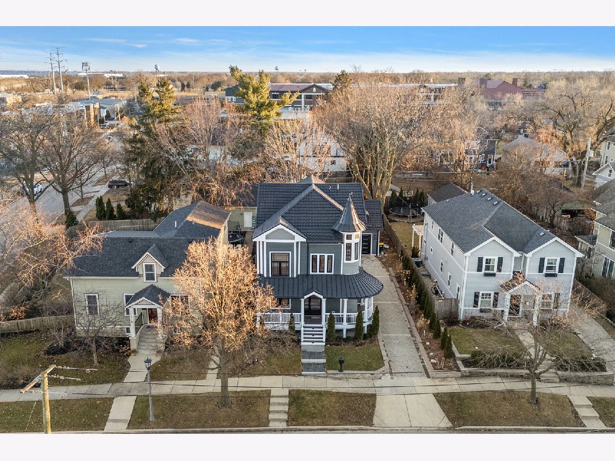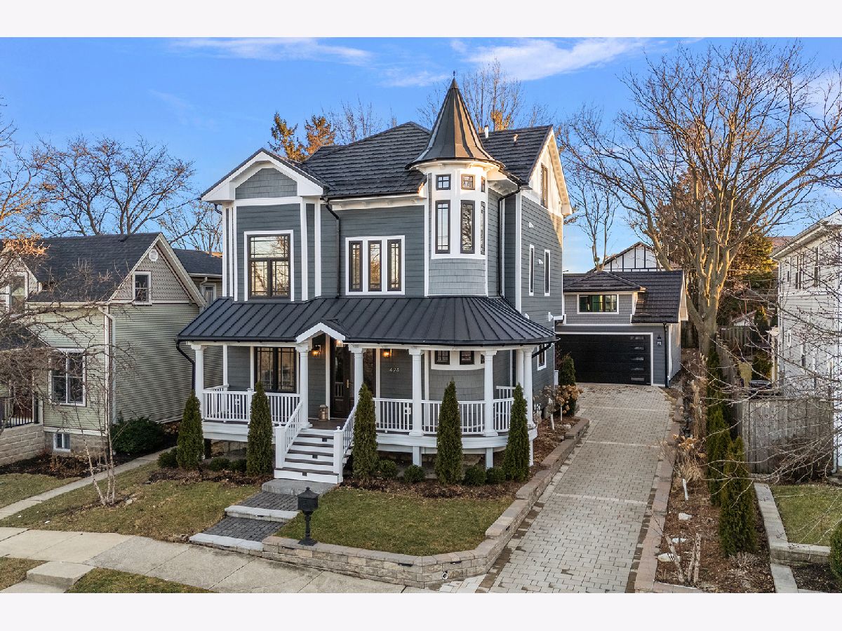 Timeless sophistication defines this exceptional Victorian-inspired residence, seamlessly blending historic architectural character with refined modern luxury. A gracious wrap-around porch and dramatic projecting turret create a commanding presence from the street, while the imported Swedish metal roof delivers both enduring performance and classic elegance. A solid triple-pane oak entry door opens to four impeccably finished levels showcasing superior craftsmanship, premium materials, and meticulous attention to detail throughout. The main level is thoughtfully designed for elevated living and entertaining. A sun-filled, chef-caliber kitchen features top-tier appliances, custom cabinetry, and an expansive island with seating, flowing seamlessly into the open living and dining areas. A fireplace anchors the living space, while elegant French doors extend the entertaining outdoors to the deck and professionally landscaped grounds. A spacious private office, designer powder room, and separate mudroom entry complete the first floor. The second level hosts a luxurious primary suite with a spa-inspired bath, generous walk-in closet, private balcony, and convenient laundry. Two additional bedrooms with custom walk-in closets and a beautifully appointed full bath provide comfort and functionality. The third-floor retreat offers a stunning designer suite with a vaulted, beamed ceiling and a spa-level bathroom featuring a steam shower and soaking tub, creating a true sanctuary experience. The bright lower level is enhanced by egress windows that flood the space with natural light and includes a recreation area, full bath, and laundry room. Premium features include hardwood flooring throughout the first three levels, soaring ceilings, 8-foot doors, triple-pane windows, Bose speaker system, integrated security cameras, Belgium wood composite decking, high-efficiency furnaces and air conditioning, dual-zone tankless water heater, and roughed in radiant heat in the basement. A detached two-car garage offers a finished second-floor flex space ideal for a private office, studio, or recreation area. Professionally designed landscaping completes the property with lush plantings, permeable paver driveway, cobblestone walkway, and curated landscape lighting. At dusk, the facade, driveway, and backyard are beautifully illuminated, creating a striking evening presentation. Walkable to vibrant downtown La Grange's fine dining, boutique shopping, and convenient METRA access.