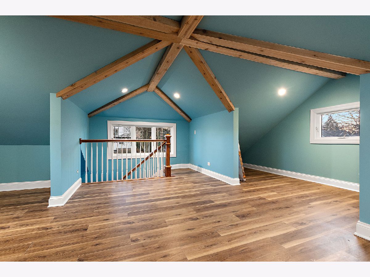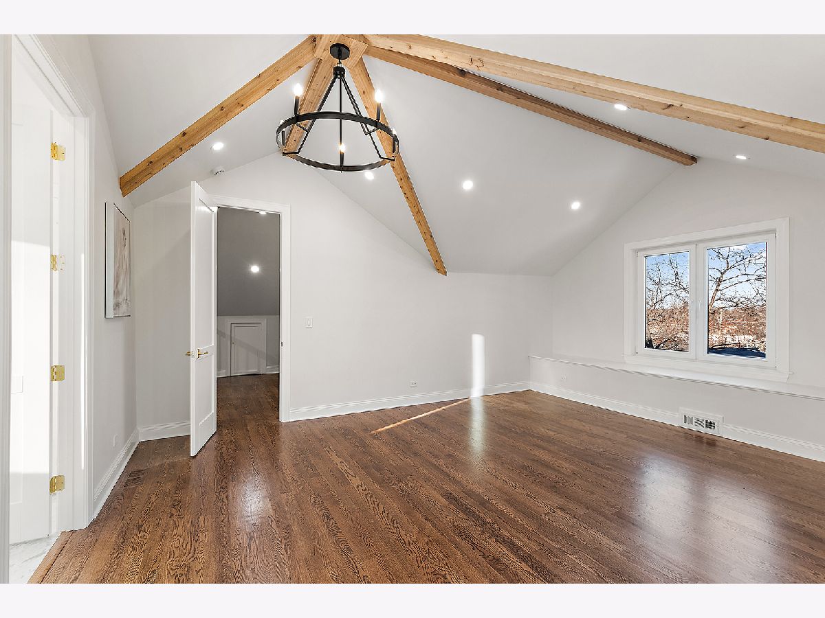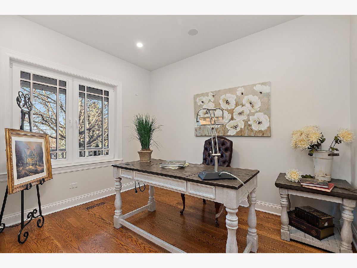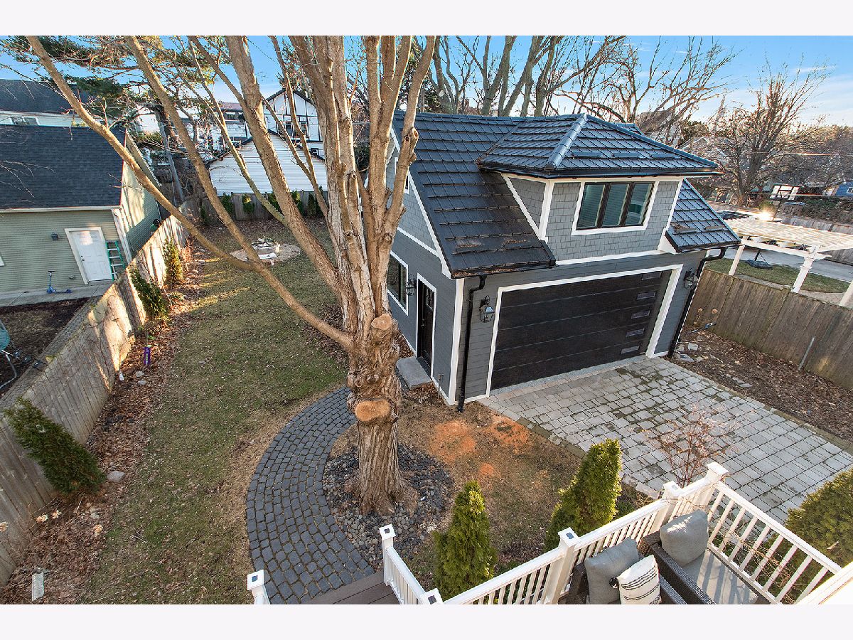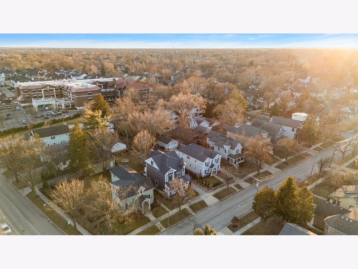 Timeless sophistication defines this exceptional Victorian-inspired residence, seamlessly blending historic architectural character with refined modern luxury. A gracious wrap-around porch and dramatic projecting turret create a commanding presence from the street, while the imported Swedish metal roof delivers both enduring performance and classic elegance. A solid triple-pane oak entry door opens to four impeccably finished levels showcasing superior craftsmanship, premium materials, and meticulous attention to detail throughout. The main level is thoughtfully designed for elevated living and entertaining. A sun-filled, chef-caliber kitchen features top-tier appliances, custom cabinetry, and an expansive island with seating, flowing seamlessly into the open living and dining areas. A fireplace anchors the living space, while elegant French doors extend the entertaining outdoors to the deck and professionally landscaped grounds. A spacious private office, designer powder room, and separate mudroom entry complete the first floor. The second level hosts a luxurious primary suite with a spa-inspired bath, generous walk-in closet, private balcony, and convenient laundry. Two additional bedrooms with custom walk-in closets and a beautifully appointed full bath provide comfort and functionality. The third-floor retreat offers a stunning designer suite with a vaulted, beamed ceiling and a spa-level bathroom featuring a steam shower and soaking tub, creating a true sanctuary experience. The bright lower level is enhanced by egress windows that flood the space with natural light and includes a recreation area, full bath, and laundry room. Premium features include hardwood flooring throughout the first three levels, soaring ceilings, 8-foot doors, triple-pane windows, Bose speaker system, integrated security cameras, Belgium wood composite decking, high-efficiency furnaces and air conditioning, dual-zone tankless water heater, and roughed in radiant heat in the basement. A detached two-car garage offers a finished second-floor flex space ideal for a private office, studio, or recreation area. Professionally designed landscaping completes the property with lush plantings, permeable paver driveway, cobblestone walkway, and curated landscape lighting. At dusk, the facade, driveway, and backyard are beautifully illuminated, creating a striking evening presentation. Walkable to vibrant downtown La Grange's fine dining, boutique shopping, and convenient METRA access.