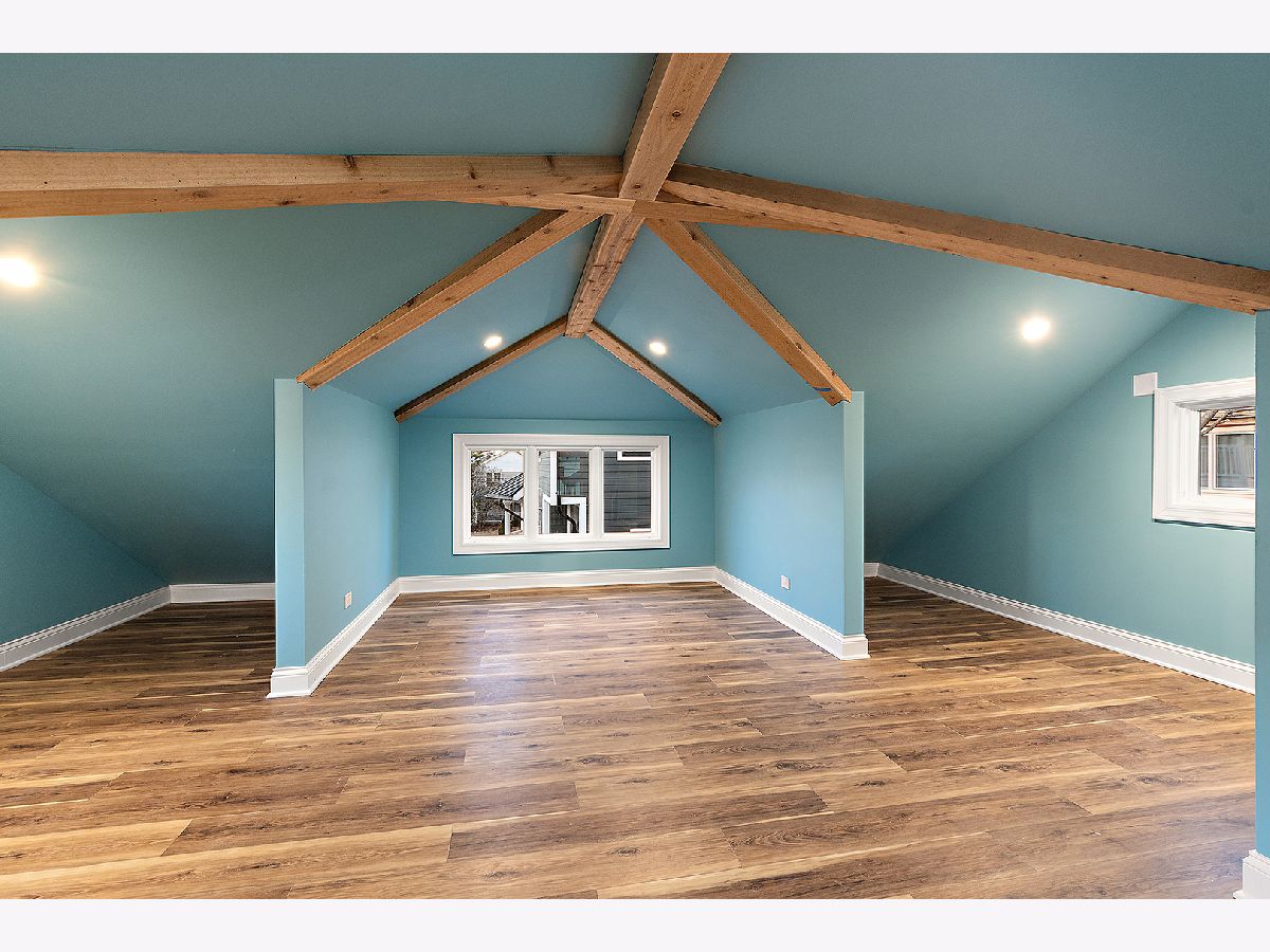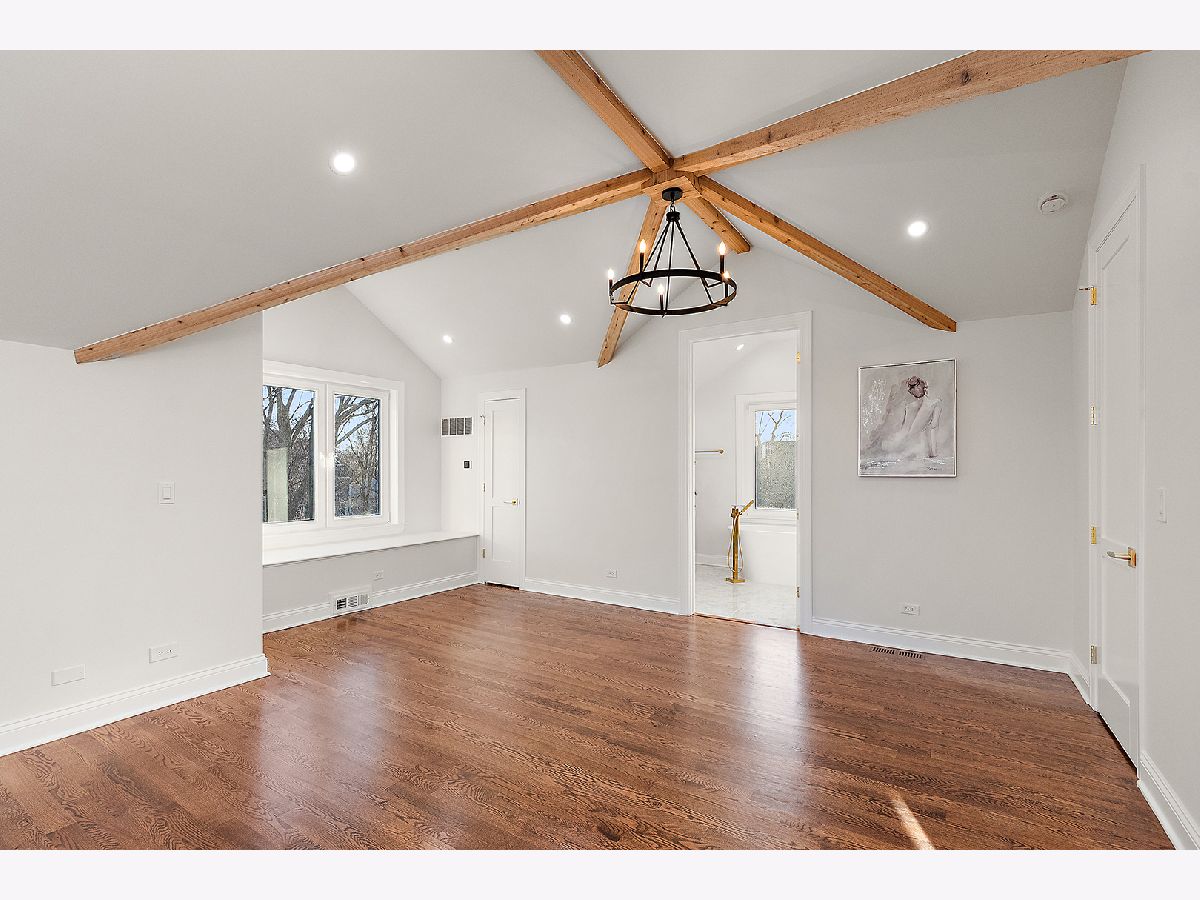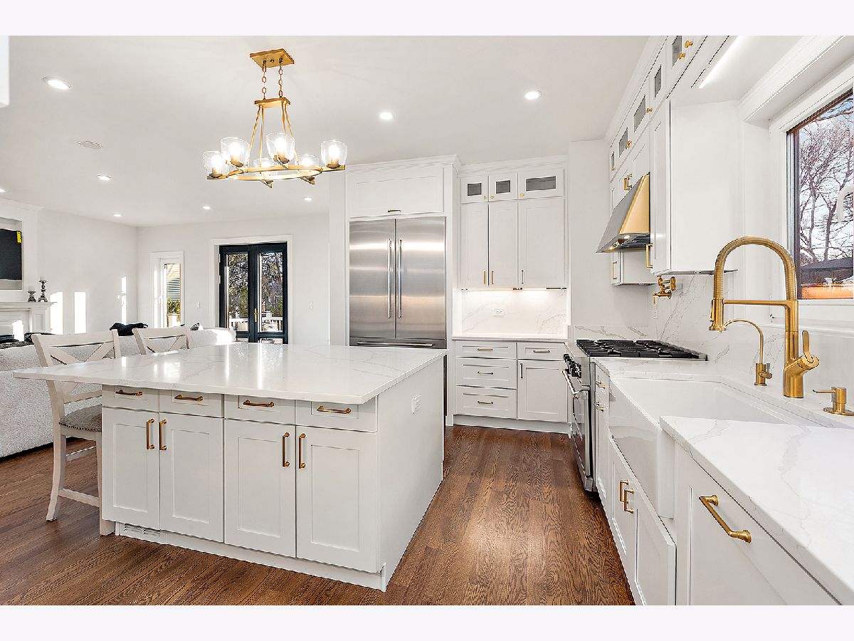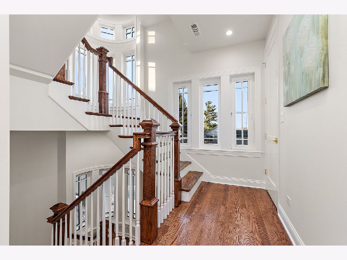 Timeless sophistication defines this exceptional Victorian-inspired residence, seamlessly blending historic architectural character with refined modern luxury. A gracious wrap-around porch and dramatic projecting turret create a commanding presence from the street, while the imported Swedish metal roof delivers both enduring performance and classic elegance. A solid triple-pane oak entry door opens to four impeccably finished levels showcasing superior craftsmanship, premium materials, and meticulous attention to detail throughout. The main level is thoughtfully designed for elevated living and entertaining. A sun-filled, chef-caliber kitchen features top-tier appliances, custom cabinetry, and an expansive island with seating, flowing seamlessly into the open living and dining areas. A fireplace anchors the living space, while elegant French doors extend the entertaining outdoors to the deck and professionally landscaped grounds. A spacious private office, designer powder room, and separate mudroom entry complete the first floor. The second level hosts a luxurious primary suite with a spa-inspired bath, generous walk-in closet, private balcony, and convenient laundry. Two additional bedrooms with custom walk-in closets and a beautifully appointed full bath provide comfort and functionality. The third-floor retreat offers a stunning designer suite with a vaulted, beamed ceiling and a spa-level bathroom featuring a steam shower and soaking tub, creating a true sanctuary experience. The bright lower level is enhanced by egress windows that flood the space with natural light and includes a recreation area, full bath, and laundry room. Premium features include hardwood flooring throughout the first three levels, soaring ceilings, 8-foot doors, triple-pane windows, Bose speaker system, integrated security cameras, Belgium wood composite decking, high-efficiency furnaces and air conditioning, dual-zone tankless water heater, and roughed in radiant heat in the basement. A detached two-car garage offers a finished second-floor flex space ideal for a private office, studio, or recreation area. Professionally designed landscaping completes the property with lush plantings, permeable paver driveway, cobblestone walkway, and curated landscape lighting. At dusk, the facade, driveway, and backyard are beautifully illuminated, creating a striking evening presentation. Walkable to vibrant downtown La Grange's fine dining, boutique shopping, and convenient METRA access.