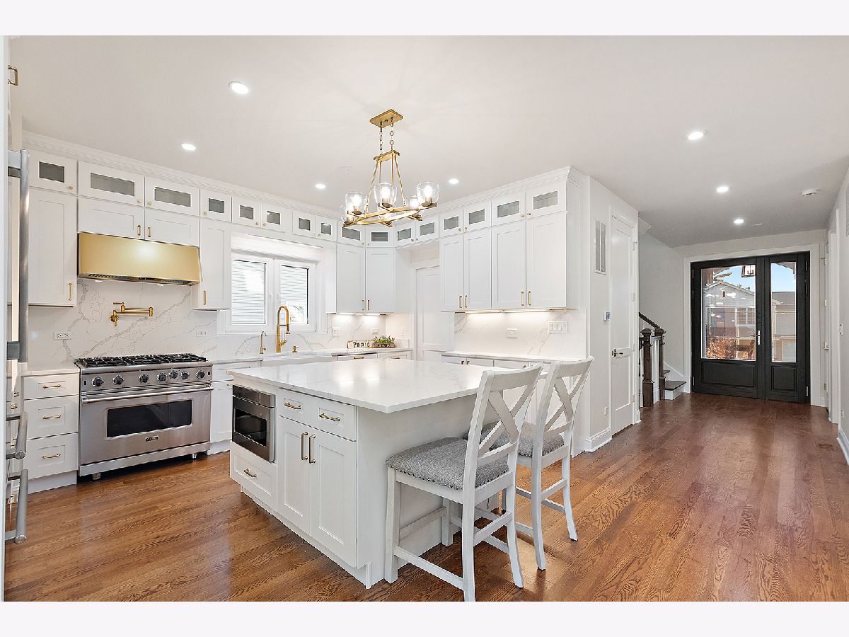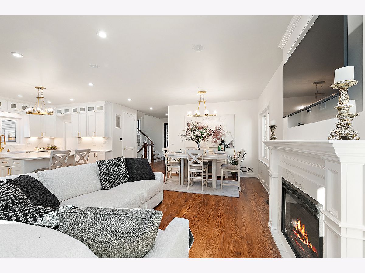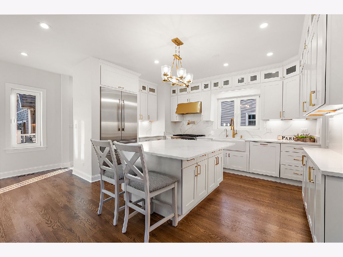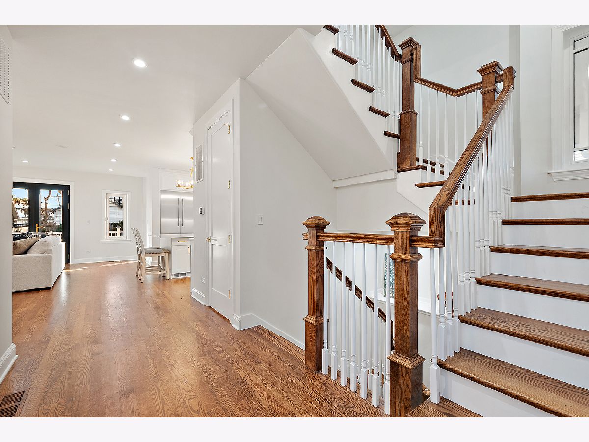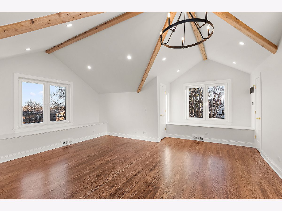 Timeless sophistication defines this exceptional Victorian-inspired residence, seamlessly blending historic architectural character with refined modern luxury. A gracious wrap-around porch and dramatic projecting turret create a commanding presence from the street, while the imported Swedish metal roof delivers both enduring performance and classic elegance. A solid triple-pane oak entry door opens to four impeccably finished levels showcasing superior craftsmanship, premium materials, and meticulous attention to detail throughout. The main level is thoughtfully designed for elevated living and entertaining. A sun-filled, chef-caliber kitchen features top-tier appliances, custom cabinetry, and an expansive island with seating, flowing seamlessly into the open living and dining areas. A fireplace anchors the living space, while elegant French doors extend the entertaining outdoors to the deck and professionally landscaped grounds. A spacious private office, designer powder room, and separate mudroom entry complete the first floor. The second level hosts a luxurious primary suite with a spa-inspired bath, generous walk-in closet, private balcony, and convenient laundry. Two additional bedrooms with custom walk-in closets and a beautifully appointed full bath provide comfort and functionality. The third-floor retreat offers a stunning designer suite with a vaulted, beamed ceiling and a spa-level bathroom featuring a steam shower and soaking tub, creating a true sanctuary experience. The bright lower level is enhanced by egress windows that flood the space with natural light and includes a recreation area, full bath, and laundry room. Premium features include hardwood flooring throughout the first three levels, soaring ceilings, 8-foot doors, triple-pane windows, Bose speaker system, integrated security cameras, Belgium wood composite decking, high-efficiency furnaces and air conditioning, dual-zone tankless water heater, and roughed in radiant heat in the basement. A detached two-car garage offers a finished second-floor flex space ideal for a private office, studio, or recreation area. Professionally designed landscaping completes the property with lush plantings, permeable paver driveway, cobblestone walkway, and curated landscape lighting. At dusk, the facade, driveway, and backyard are beautifully illuminated, creating a striking evening presentation. Walkable to vibrant downtown La Grange's fine dining, boutique shopping, and convenient METRA access.