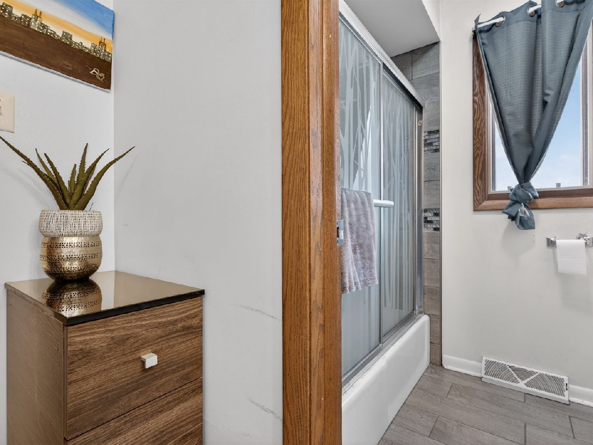 Conveniently located in Oakwood Subdivision, this spacious, 4 bedroom, 2 bath house is what you are looking for. Sunlight pours into your eat-in kitchen. Spacious primary suite boasts attached bath and walk-in closet. The fenced back yard is shady and perfect for entertaining with patio. Original hardwood floors throughout main level. Finished lower-level family room with cozy fireplace and 4th bedroom/office has above-ground windows. Also, lower level has exterior access to the backyard. Attached 2 car garage has extra storage area. A/C and hot water tank replaced in '22. Roof done in '19. Both bathrooms beautifully updated. Located within walking distance to the Matteson Library and Oakwood Park, and just a short drive to the Matteson Community Center