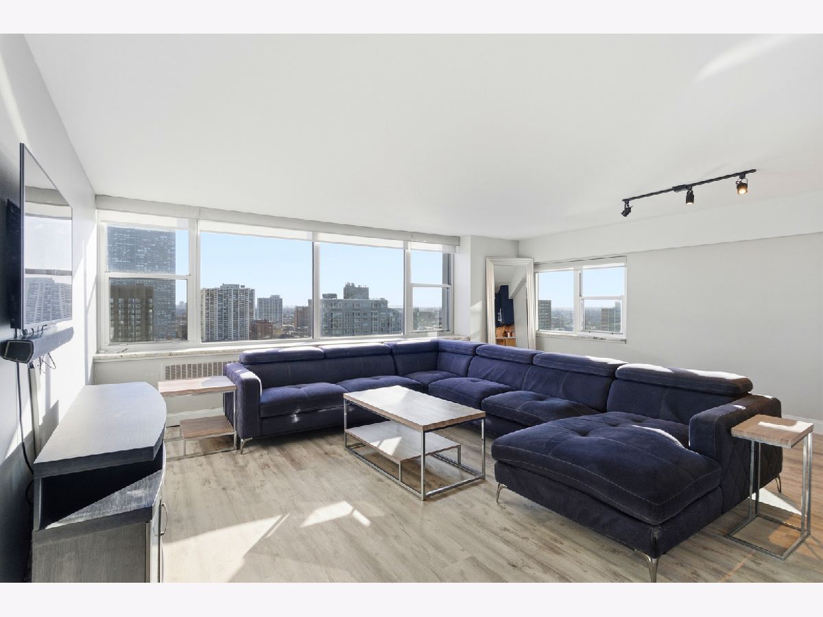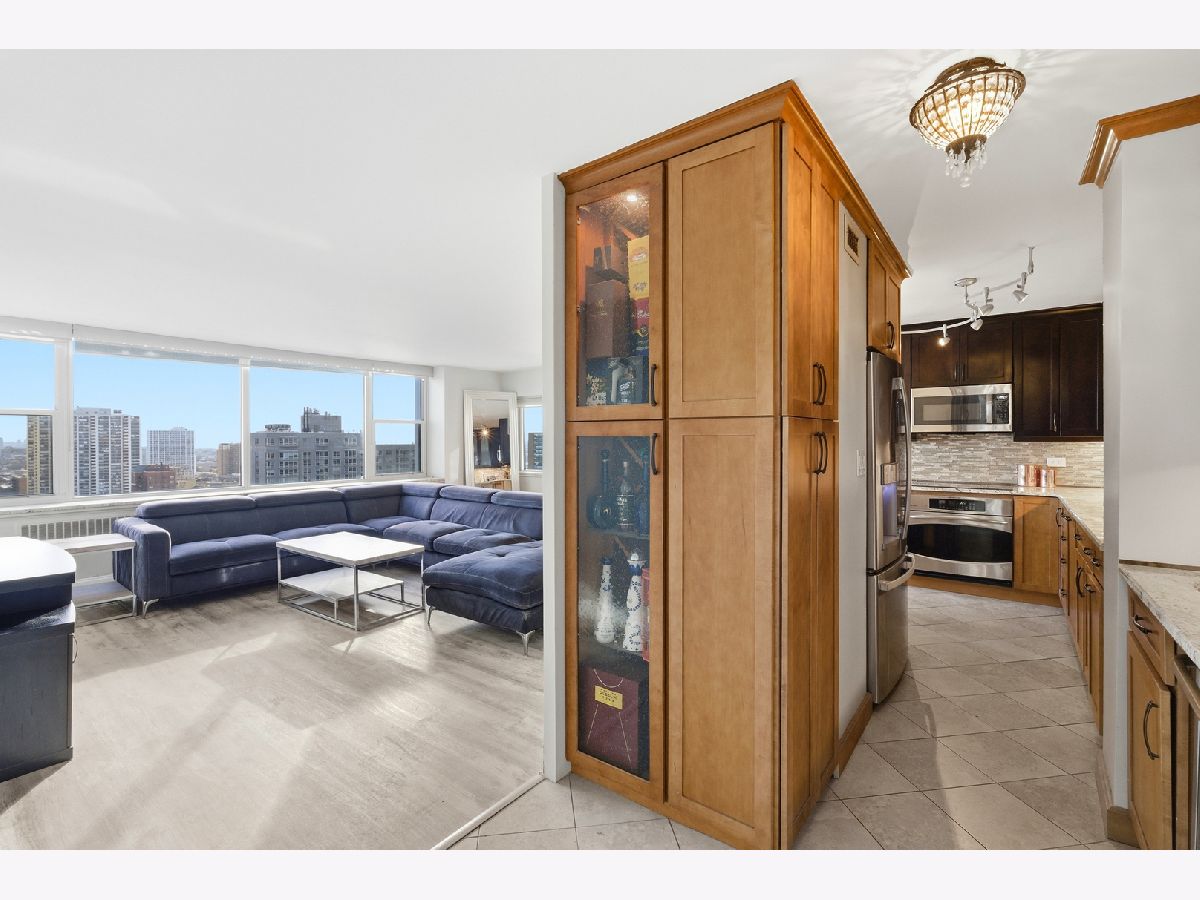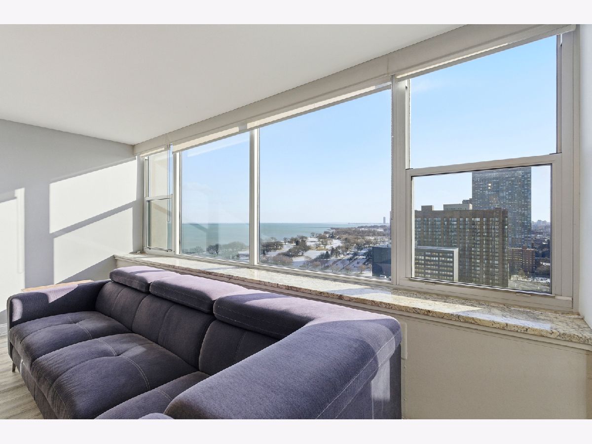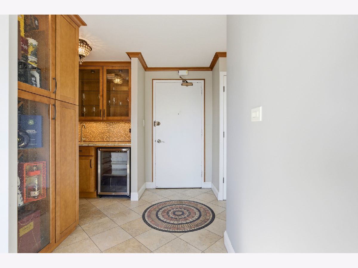 Move-in-ready unit offers a strong combination of quality finishes and standout views. The entrance features imported Italian tile, leading into an open living space with luxury vinyl plank flooring throughout for a clean, updated look. Entertain with ease with your stylish wet bar, complete with a wine refrigerator. The kitchen offers granite countertops, GE Profile appliances, porcelain tile flooring, and generous cabinet storage, making it both functional and attractive for everyday use. Large windows with granite window sills showcase impressive lake and downtown views, and residents can enjoy the Navy Pier fireworks directly from the living room. This unit delivers strong value with upgraded finishes, practical features, and a location that offers some of the best views in the city. Building amenities include: Expansive party room with full kitchen, outdoor pool, multiple gas grills, tables and ample seating, well-equipped gym, on-site convenience store with a breakfast/lunch cafe.