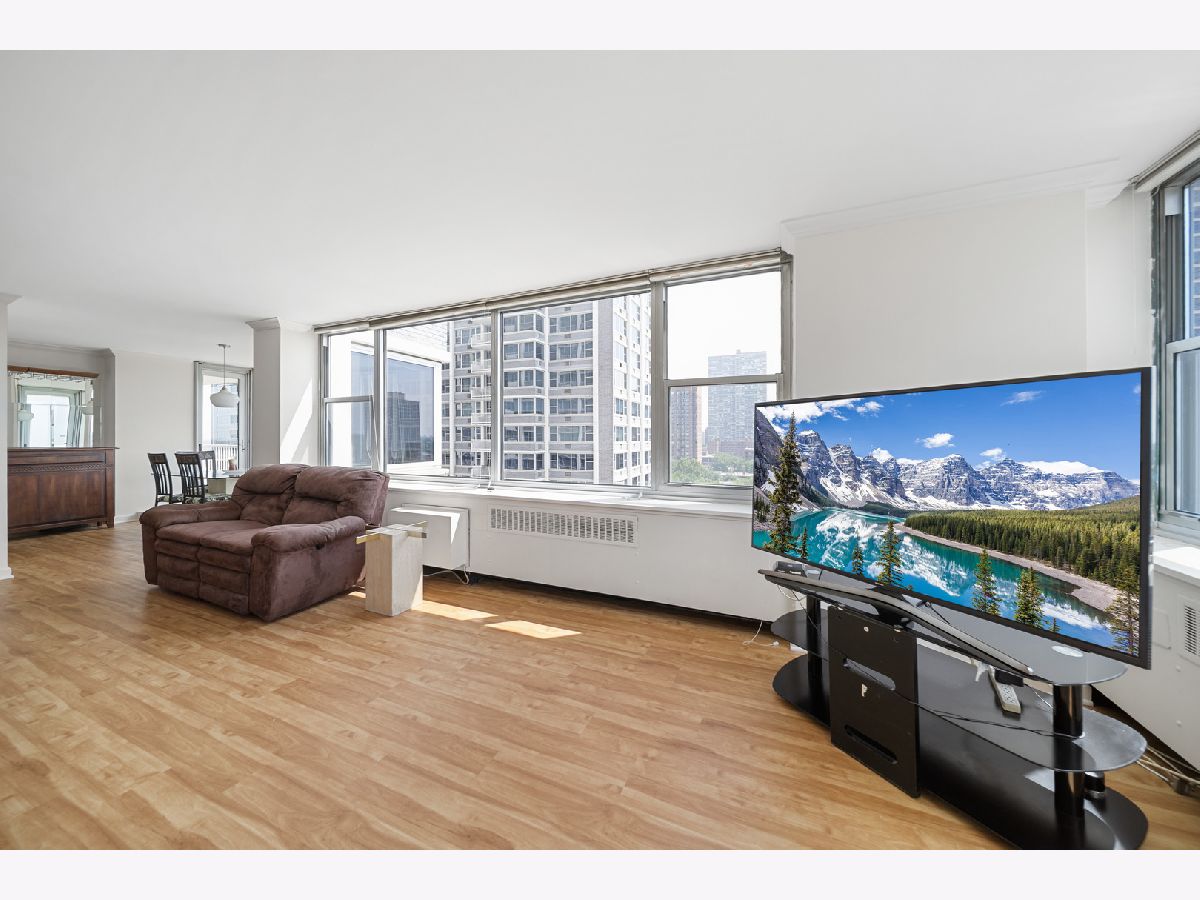 The Awesome Imperial Towers condo community is a full amenity building that offers convenient access to Downtown by way of L.S.D, CTA Redline, #143 & #146CTA bus lines (stops directly in front of building). This very spacious Home w/nearly 1500 sqft of living space has views of the Lake, outdoor pool, city west/evening sunsets, neighborhood lights and Wrigley Field from your living room, dining room and your own {rarely available) private balcony w/lake view too! Just move into this well cared for home that has been professionally painted, installation of new deluxe vinyl planked flooring, all windows have Hunter Douglas blinds or shades and new kitchen stainless steel appliances (All completed in July). Very spacious Living Rm & separate Dining Rm, Split layout design/floor plan, large Primary suite (bring your king-size bed), wall to wall closets (w/Creative Custom Mirror doors) & large 2nd bedroom & 2nd bath (just out the door) in hallway...situated at the other end of this very spacious unit (for added privacy/guest). Pleasant front door staff, utilities (other than electric), TV/Cable & internet & more covered by assessments. Enjoy the Outdoor pool, Children's pool, sitting gardens, grill stations, exercise room, party room, library, Amazon Station, receiving room, Convenient Commissary, etc. All on the premises. A short walk to the lake, beach, dog park & easy access to Lake Shore Drive too! Garage parking/rental available. What more can you ask?
