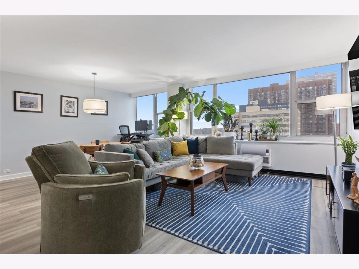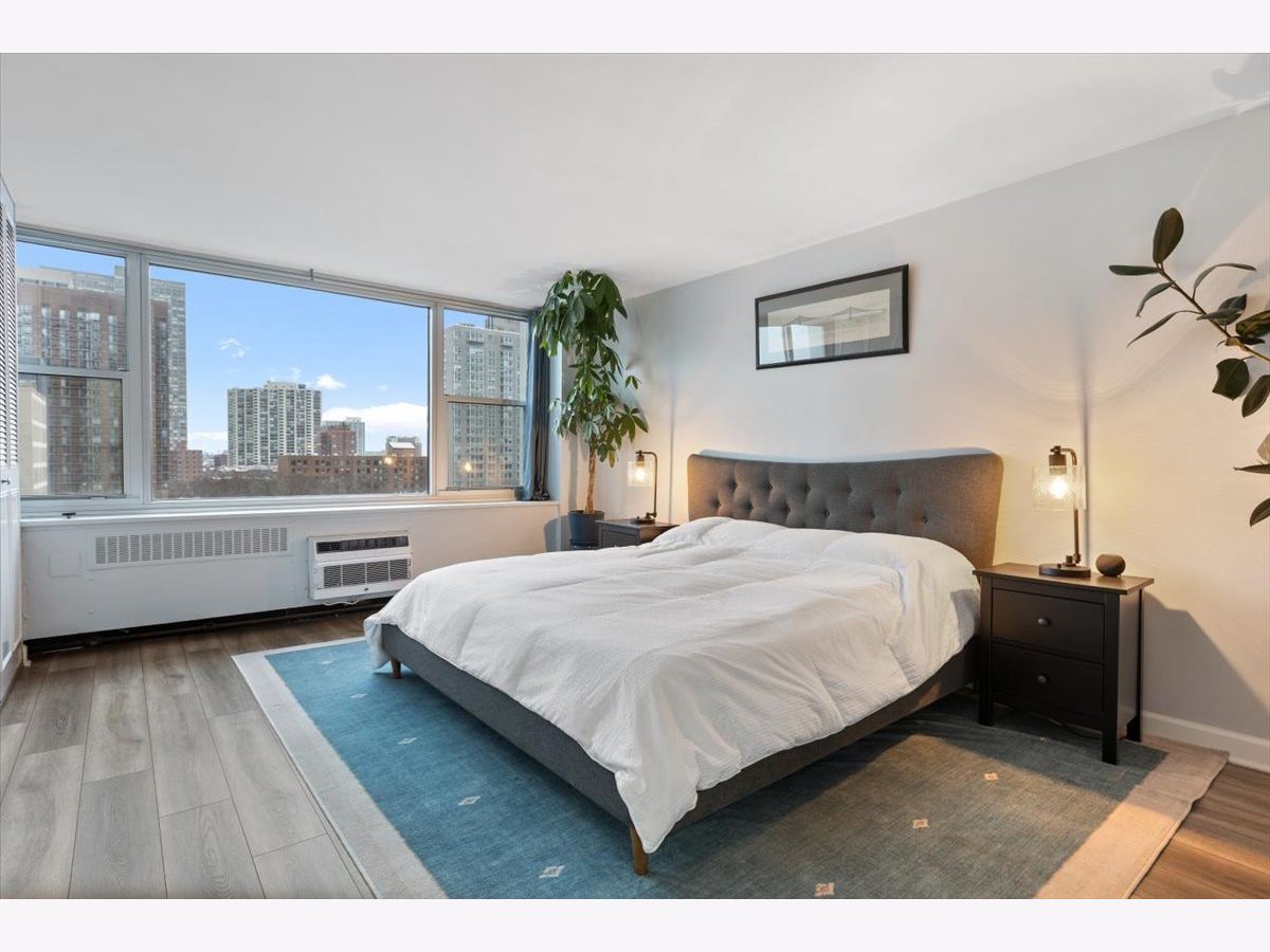 Experience Lake Shore Drive living at its best in this meticulously renovated one-bedroom condo at Imperial Towers. Filled with natural light from south-facing windows, the home offers stunning, unobstructed views of the park and Lake Michigan. The interior has been thoughtfully updated with modern flooring, fresh paint (2025), and a sophisticated Hue smart lighting system. At the center of the home is a chef-inspired kitchen featuring high-end stainless steel appliances (2023), elegant quartz countertops, and a classic tile backsplash. The living and dining areas flow seamlessly together, creating a perfect space for both quiet relaxation and stylish entertaining. The primary bedroom is impressively spacious, easily fitting a king-sized bed with room to spare. Storage is plentiful, including a full wall of closets professionally organized with a custom Elfa system, a modernized bathroom, and an additional storage locker. Every detail has been considered for modern comfort, including new A/C units (2025) and a Smart Lock. Imperial Towers is a premier, full-amenity building currently undergoing a comprehensive transformation. The updated lobby, front desk, management office, hospitality suite, guest suites (hotel), package receiving room, and common-area seating will be completed in 2026. Other recent improvements include new boilers, new elevators (2025/26), and renovated hallways (2024/25). Residents enjoy elite lifestyle perks such as: Amazon Hub 24/7 Access, GoGrocer & Sunflour Cafe, Gym with 24/7 access and new equipment '23, a large pool (13 ft deep), onsite garage parking available for rent, new Xfinity cable/internet (up to 1GB wired), an updated common laundry room (2024), new common grills (2024), onsite management and maintenance/engineers, onsite security, front desk attendant and door staff. Perfectly situated just seconds from Montrose Beach and Harbor, with express transit to downtown at your doorstep, this residence offers a rare blend of luxury and lakeside tranquility.