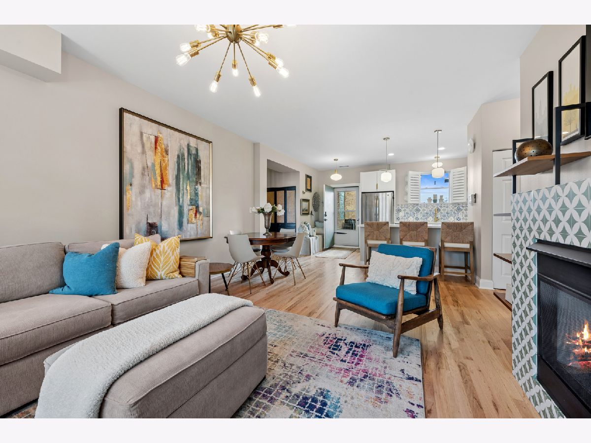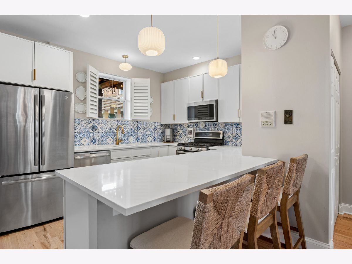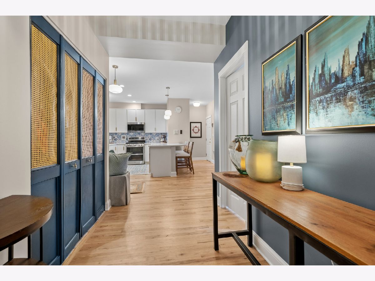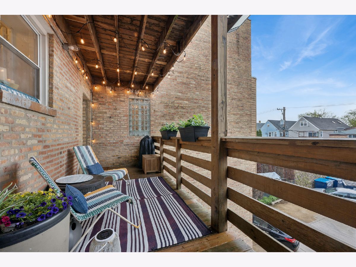 Nestled on a sun-drenched, tree-lined street in the beautiful Irving Park area, this home was thoughtful reimagined and offers an exceptional blend of style, function, and location-with easy access to public transportation and nearby highway access for a seamless city commute. Completely transformed within the past year, the residence features high-quality updates throughout. The redesigned kitchen was reconfigured into an open-concept layout ideal for modern living and entertaining, featuring refreshed cabinetry, quartz countertops, breakfast bar, and stainless steel appliances, opening to a bright living and dining area. Newly added hardwood flooring extends into the kitchen, and all floors have been professionally refinished for a clean, contemporary feel. The primary suite offers a peaceful retreat with an updated full bath and exceptional custom closet space. The second bedroom comfortably fits a queen bed, making it ideal for guests, a nursery, or home office. A second full bath adds convenience. Enjoy a large private porch with beautiful morning sun-perfect for coffee, relaxing, or entertaining outdoors. Additional highlights include custom lighting, new windows with custom blinds, fresh paint, newer mechanicals, and in-unit washer and dryer. This professionally managed, well maintained building includes generous storage and a bike room. Deeded parking-a true neighborhood rarity-adds significant value and convenience. Turnkey home in a highly desirable Irving Park location-thoughtfully updated and move-in ready.