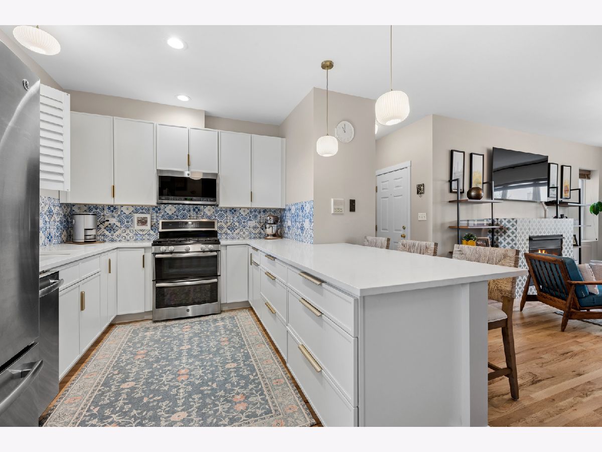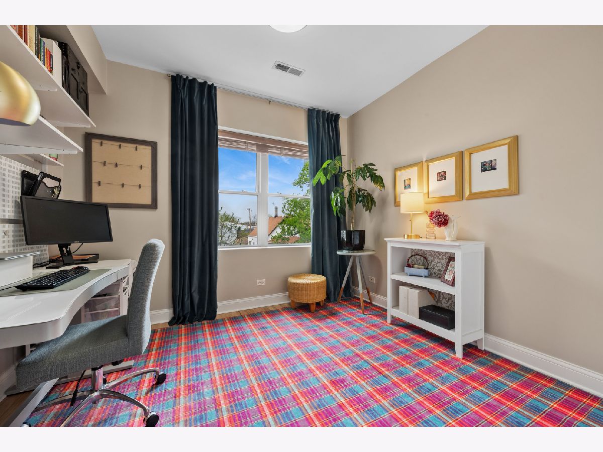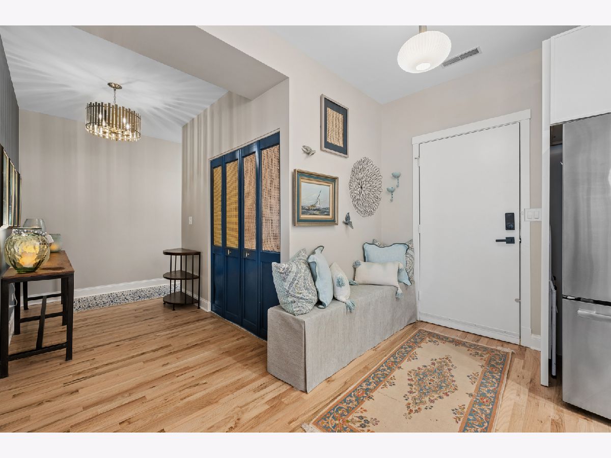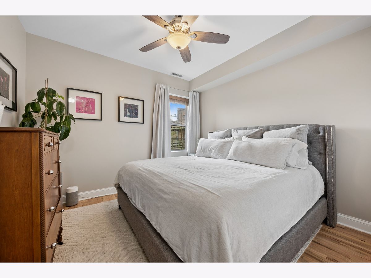 Nestled on a sun-drenched, tree-lined street in the beautiful Irving Park area, this home was thoughtful reimagined and offers an exceptional blend of style, function, and location-with easy access to public transportation and nearby highway access for a seamless city commute. Completely transformed within the past year, the residence features high-quality updates throughout. The redesigned kitchen was reconfigured into an open-concept layout ideal for modern living and entertaining, featuring refreshed cabinetry, quartz countertops, breakfast bar, and stainless steel appliances, opening to a bright living and dining area. Newly added hardwood flooring extends into the kitchen, and all floors have been professionally refinished for a clean, contemporary feel. The primary suite offers a peaceful retreat with an updated full bath and exceptional custom closet space. The second bedroom comfortably fits a queen bed, making it ideal for guests, a nursery, or home office. A second full bath adds convenience. Enjoy a large private porch with beautiful morning sun-perfect for coffee, relaxing, or entertaining outdoors. Additional highlights include custom lighting, new windows with custom blinds, fresh paint, newer mechanicals, and in-unit washer and dryer. This professionally managed, well maintained building includes generous storage and a bike room. Deeded parking-a true neighborhood rarity-adds significant value and convenience. Turnkey home in a highly desirable Irving Park location-thoughtfully updated and move-in ready.
