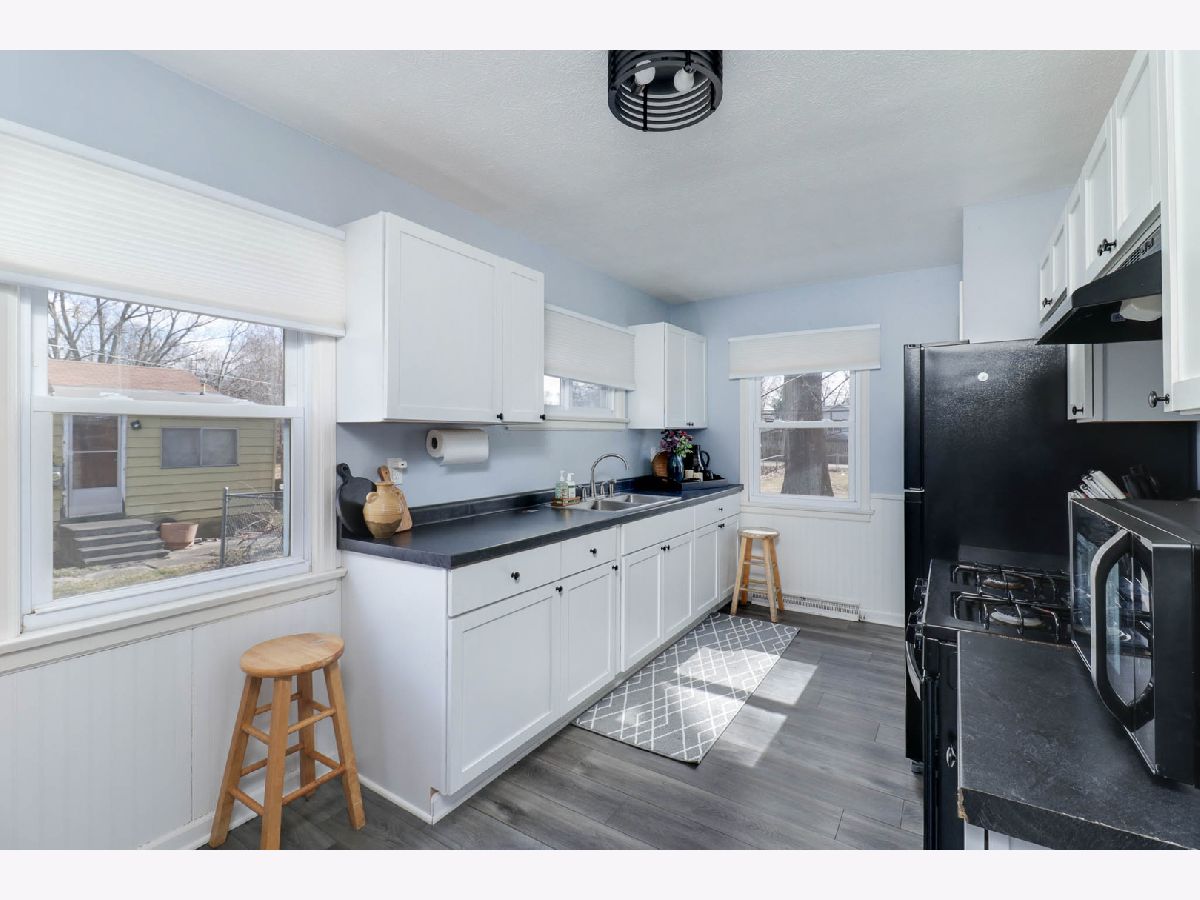 This cozy, move-in-ready 2-bedroom bungalow sits on a spacious 80x185 fully fenced lot and blends classic charm with modern updates throughout. Renovated in 2024, inside you'll find fresh paint, all-new flooring, a fully remodeled eat-in kitchen with newer appliances, updated bath, bright living room, and two comfortable bedrooms. The open basement offers laundry and excellent storage or future finishing potential. Outside features include a poured concrete patio, gravel driveway, low-maintenance vinyl siding, metal roof, vinyl windows, and an impressive 18x24 fully insulated and heated garage with newer opener and separate electrical panel. Conveniently located near parks, schools, the fairgrounds, and Lincoln Memorial Hospital - this one is sharp, updated, and ready to go.