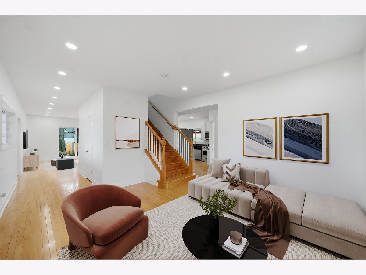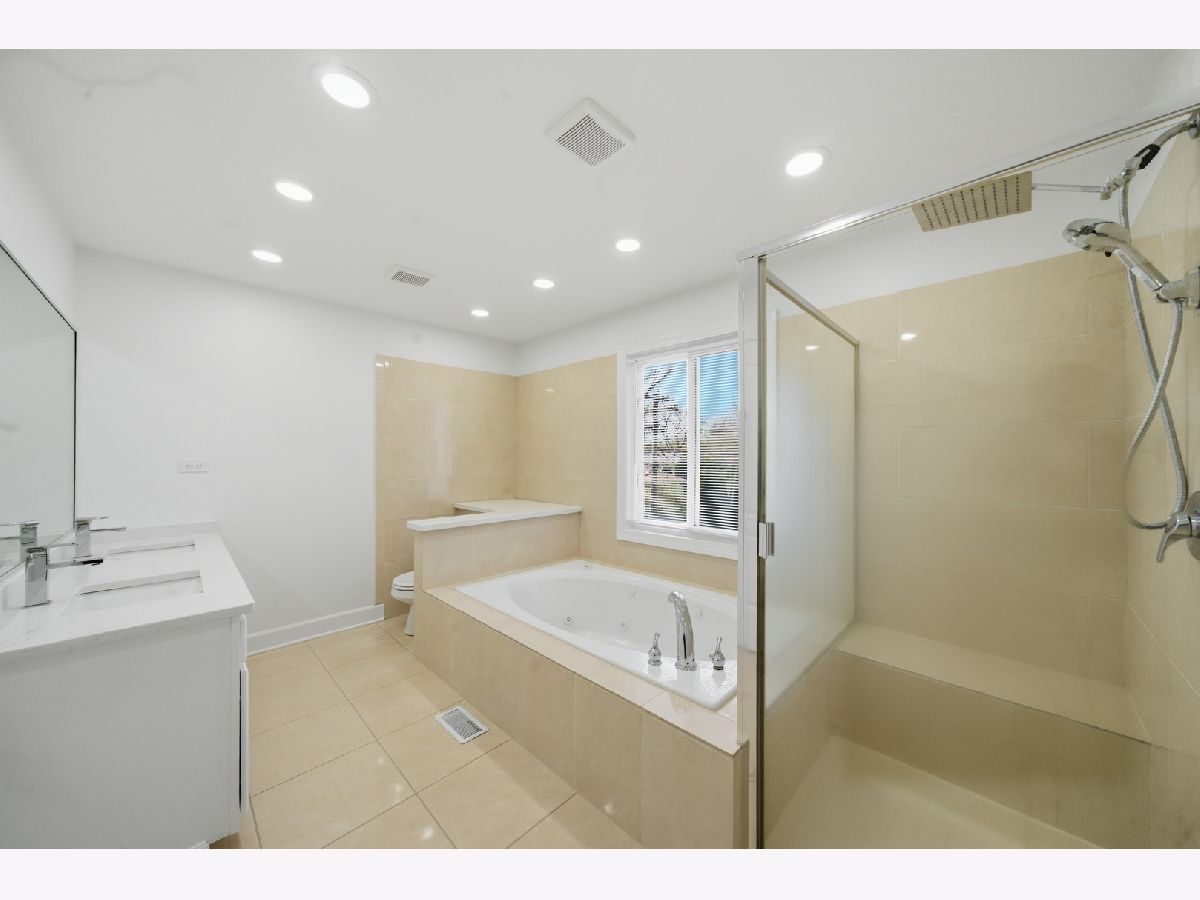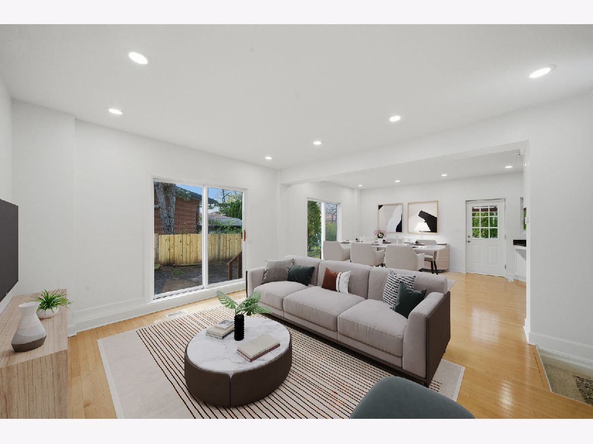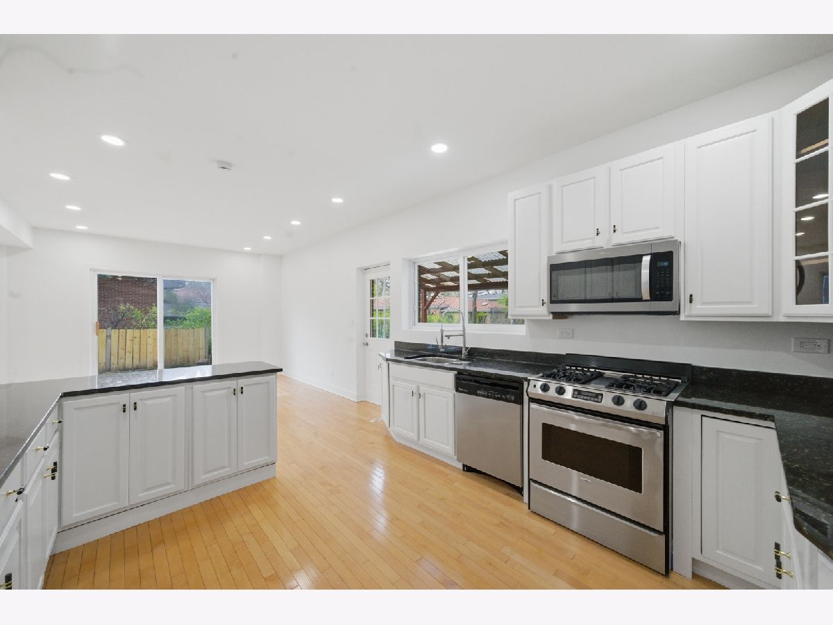 Completely rebuilt in 2002 and thoughtfully designed for modern living, this spacious Skokie residence offers over 2,400 square feet of bright, flexible living space on an oversized lot. Freshly painted and move-in ready, the home features hardwood flooring throughout the main living areas, new vinyl flooring upstairs, recessed lighting. The main level showcases an open-concept layout with generous living and dining areas flowing seamlessly into a beautifully updated kitchen with white cabinetry, granite countertops, stainless steel appliances, center island, and abundant workspace. A large great room with sliding doors to the backyard creates the perfect setting for everyday living and entertaining. A main-level bedroom or office provides ideal flexibility for guests, remote work, or multigenerational living. Upstairs, the private primary suite offers a walk-in closet and spacious en-suite bath with double vanity, soaking tub, and separate shower. Additional generously sized bedrooms, a full hall bath, and versatile loft space provide ample room for family, guests, study, or play. The finished lower level adds exceptional living space with a large recreation area, second kitchen, full bath, bonus room, and excellent storage-ideal for extended family living, entertaining, home gym, or office needs. Step outside to enjoy the expansive fenced backyard with patio space and plenty of room for entertaining, play, gardening, or future outdoor enhancements. Attached 2-car garage and oversized driveway offer ample parking. Conveniently located near parks, shopping, dining, Westfield Old Orchard, top-rated schools, the Skokie Swift Yellow Line, and major commuter routes, this home offers the perfect combination of size, flexibility, updates, and location.