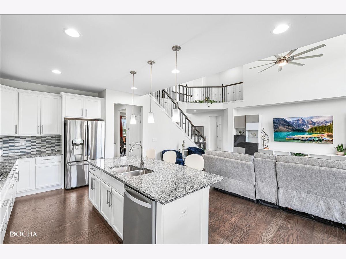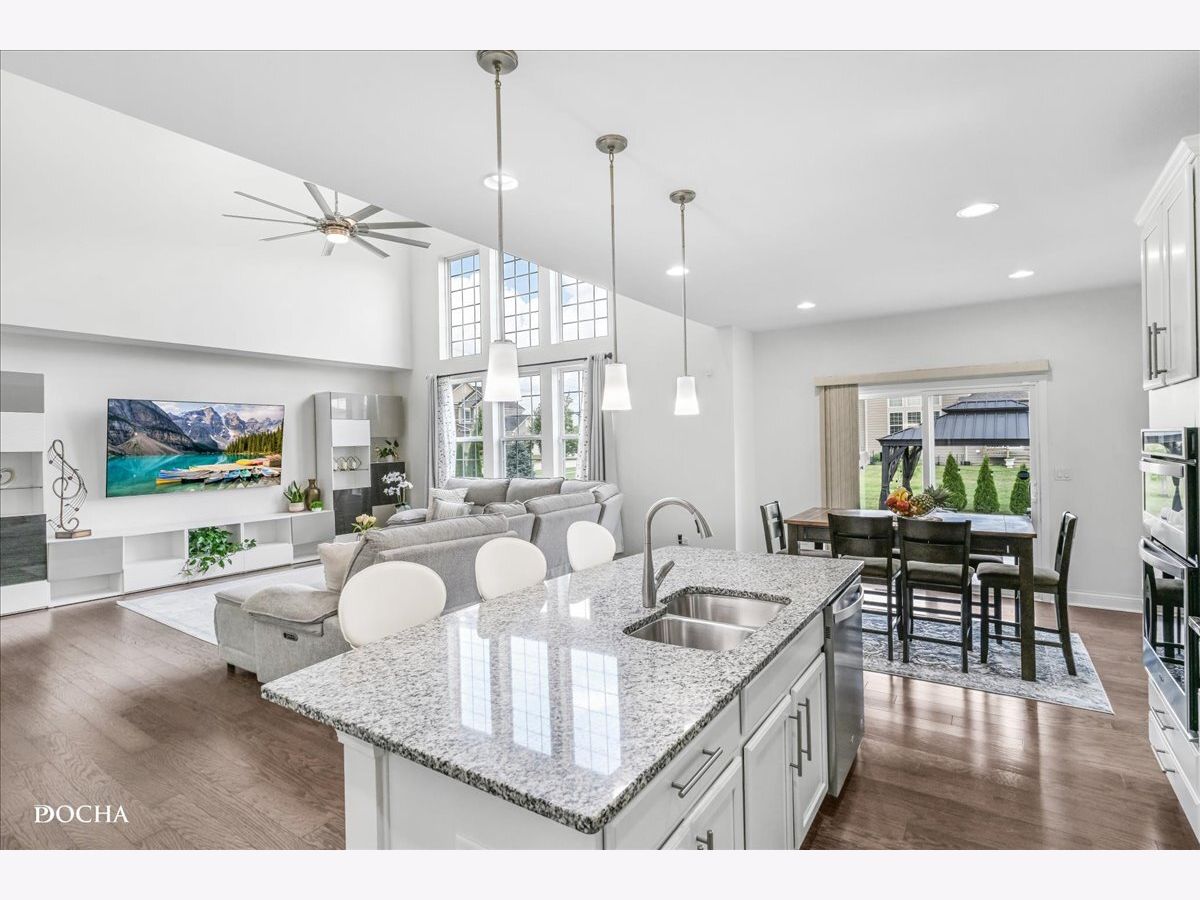 Step into this gorgeous south facing, home built in 2020 in the sought after Ashwood Park community within the acclaimed Naperville School District 204. This home has been cared for with real pride by its original owners and it shows in every corner. With more than 3500 square feet of living space, five bedrooms and four and a half bathrooms, you get an incredible amount of room to live comfortably and entertain with ease. The exterior sets the tone right away with beautiful red brick, inviting vinyl accents, a covered front porch and a perfectly maintained generous sized corner lot that feels warm and welcoming the moment you arrive. Inside, the two-story foyer opens into a stunning family room with soaring ceilings and gleaming hardwood floors that make the whole space feel bright and open. The kitchen is the kind of space people dream about with built in appliances, a large island, tall cabinetry, a full walk-in pantry and plenty of room to gather. A planning center gives you a convenient spot for work or study and the first-floor laundry room keeps everyday life running smoothly. You also get a true bonus with a first-floor bedroom that adds flexibility for guests, multigenerational living or a private workspace. The second floor offers four spacious bedrooms and three full bathrooms including a luxurious primary suite with a private retreat and a spa inspired bath that feels like your own personal escape. The finished basement adds even more value with a huge great room, an additional bedroom and a full bathroom that works perfectly for guests or for hosting movie nights and game days. Step outside and enjoy an open backyard designed for relaxing and entertaining with a stamped concrete patio, gazebo and a sprinkler system already in place to maintain the professionally landscaped, perfectly manicured yard . The three-car garage includes an EV charger outlet and the home features a smart thermostat, some Wi-Fi enabled lighting and zoned HVAC for comfort and efficiency. Living in Ashwood Park means you also get access to an impressive clubhouse, a resort style pool, tennis courts and more. Plus, you are only minutes from Downtown Naperville, the Riverwalk, parks, shopping and dining. Homes like this do not come along often and when they do they do not stay available for long. This is a rare chance to enjoy a beautifully upgraded home in an exceptional community with amenities that elevate everyday living. Multiple Offers Received. H&B due Wednesday 4/1/26 at 3 PM