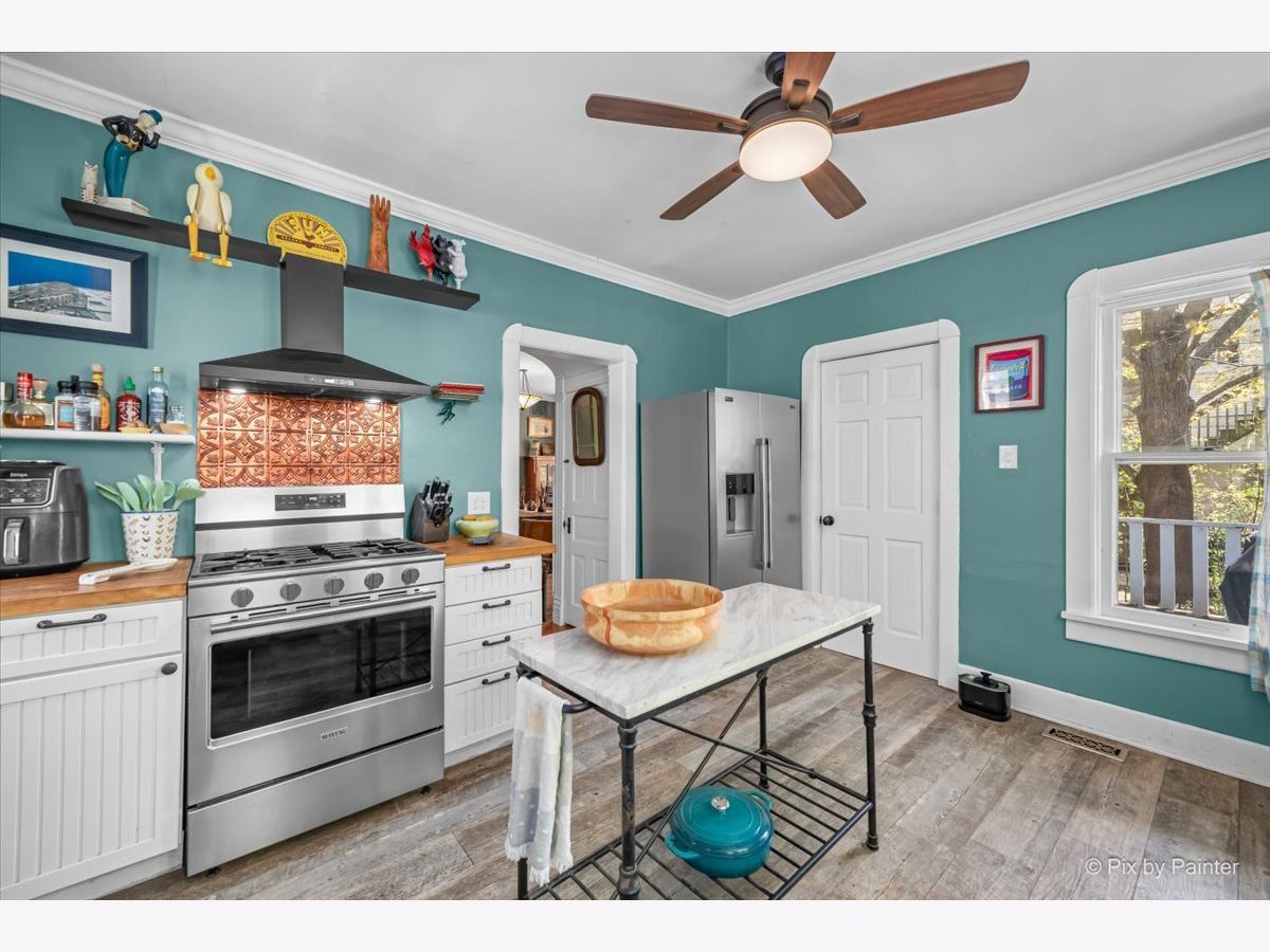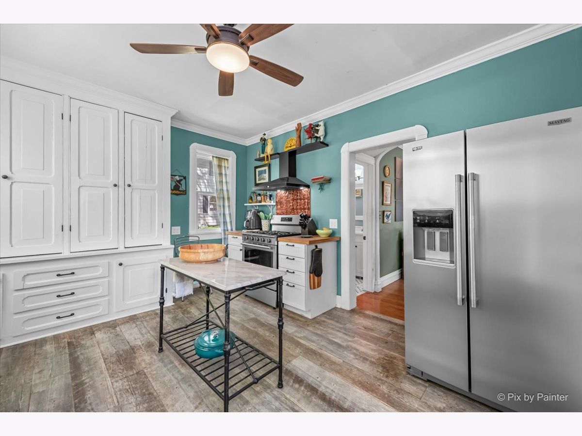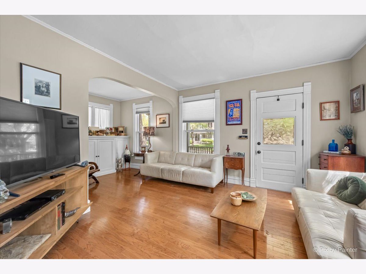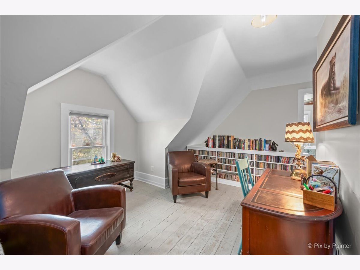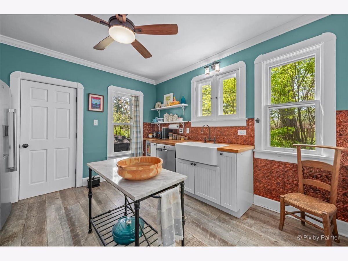 Charming 1.5 story bungalow with 3 bedrooms, 2 baths, loft, full basement and 1.5-car garage is ready for new owners. A lovely porch welcomes you. Step inside the living room with beautiful built-ins and hardwood floors that flow through to the adjacent dining room with big windows. First floor bedroom with ceiling fan and LVP flooring and first floor full bath with soaking tub. Great kitchen with built-ins, cabinets and wood counters, stainless steel appliances and exterior access to the back porch. Full bath with 2 additional bedrooms with ceiling fans, a roomy loft with built-ins and a full hall bath with shower stall. A full basement has abundant storage space, laundry room, workshop and more. Detached 1.5-car garage and an extra-long driveway. Relax outdoors on the wood porch, by the firepit or in the ample greenspace of the fully fenced extended yard beyond the garage. Walking distance to the elementary school. Value added features: (2025) Fridge, dishwasher, oven, washer, dryer, fence; (2022) AC, furnace; (2018) Roof, gutters, exterior painted, upper bath renovation, basement fridge; (2016) Garage door; (2015) Kitchen and lower bath renovations.