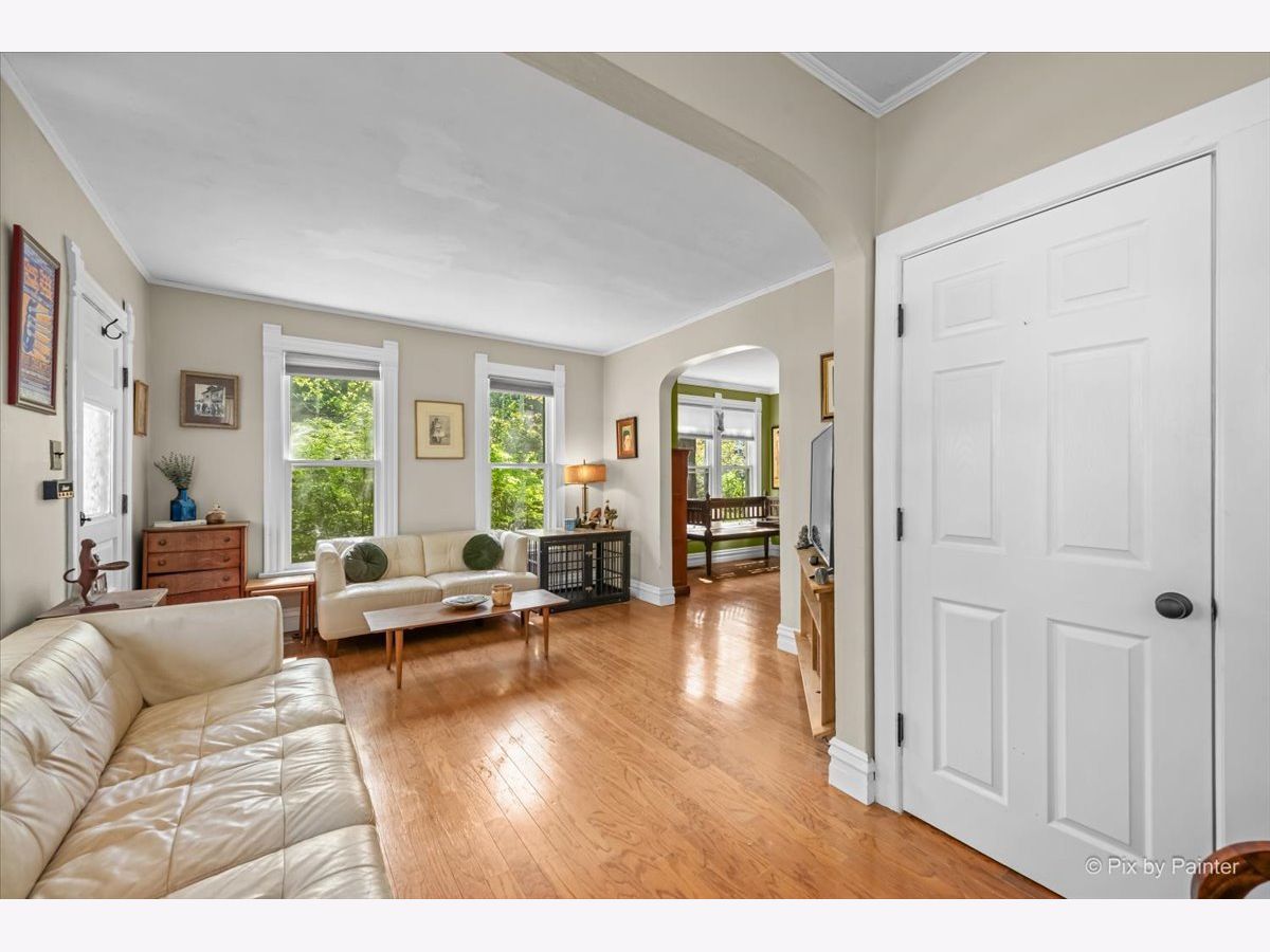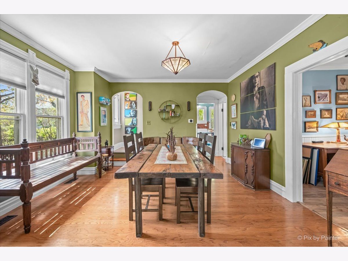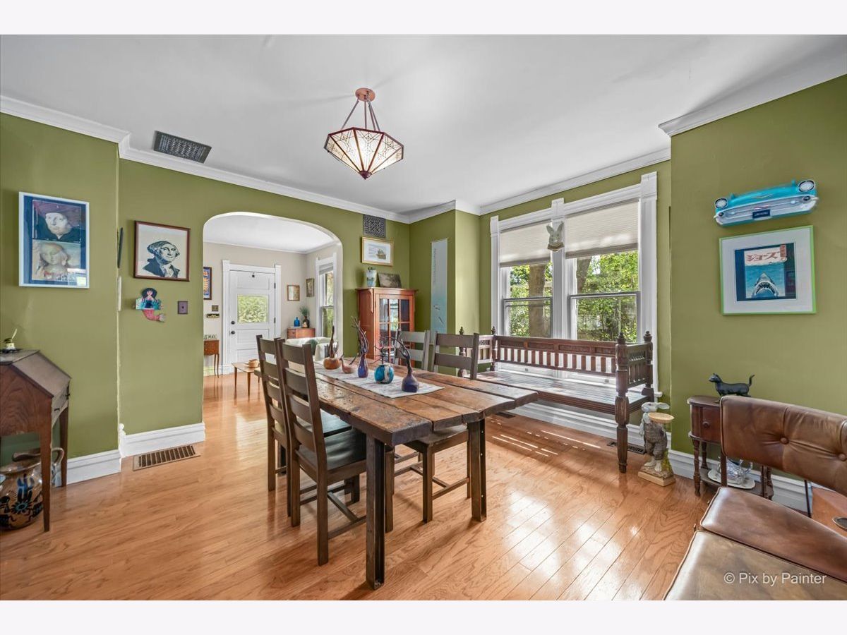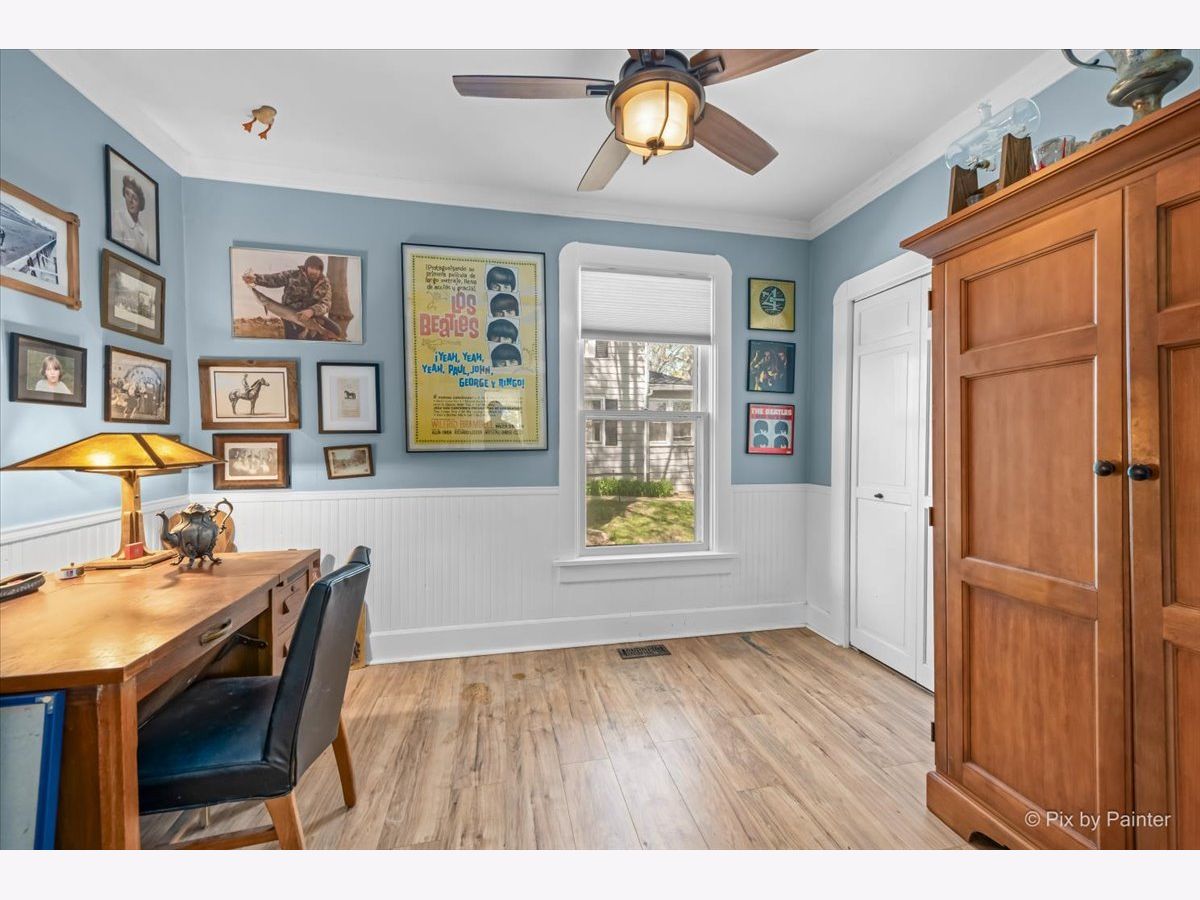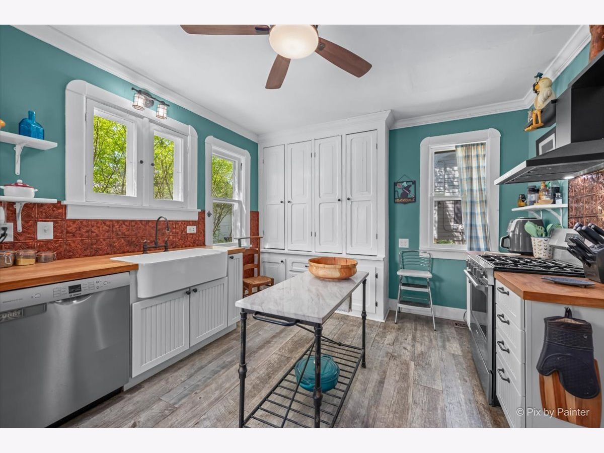 Charming 1.5 story bungalow with 3 bedrooms, 2 baths, loft, full basement and 1.5-car garage is ready for new owners. A lovely porch welcomes you. Step inside the living room with beautiful built-ins and hardwood floors that flow through to the adjacent dining room with big windows. First floor bedroom with ceiling fan and LVP flooring and first floor full bath with soaking tub. Great kitchen with built-ins, cabinets and wood counters, stainless steel appliances and exterior access to the back porch. Full bath with 2 additional bedrooms with ceiling fans, a roomy loft with built-ins and a full hall bath with shower stall. A full basement has abundant storage space, laundry room, workshop and more. Detached 1.5-car garage and an extra-long driveway. Relax outdoors on the wood porch, by the firepit or in the ample greenspace of the fully fenced extended yard beyond the garage. Walking distance to the elementary school. Value added features: (2025) Fridge, dishwasher, oven, washer, dryer, fence; (2022) AC, furnace; (2018) Roof, gutters, exterior painted, upper bath renovation, basement fridge; (2016) Garage door; (2015) Kitchen and lower bath renovations.