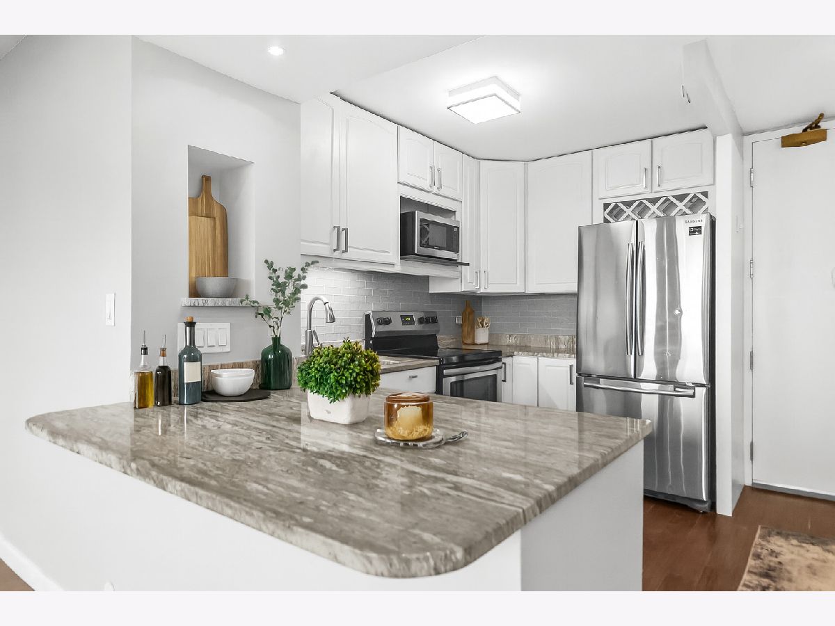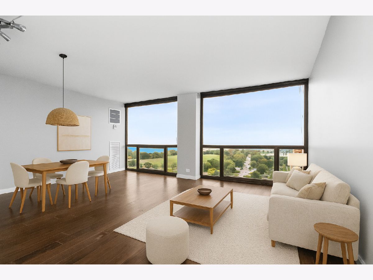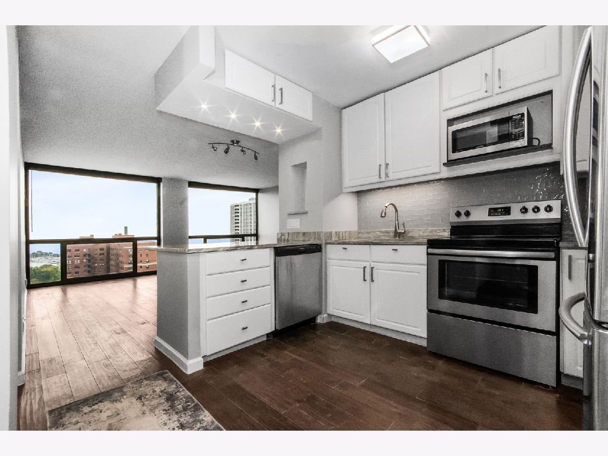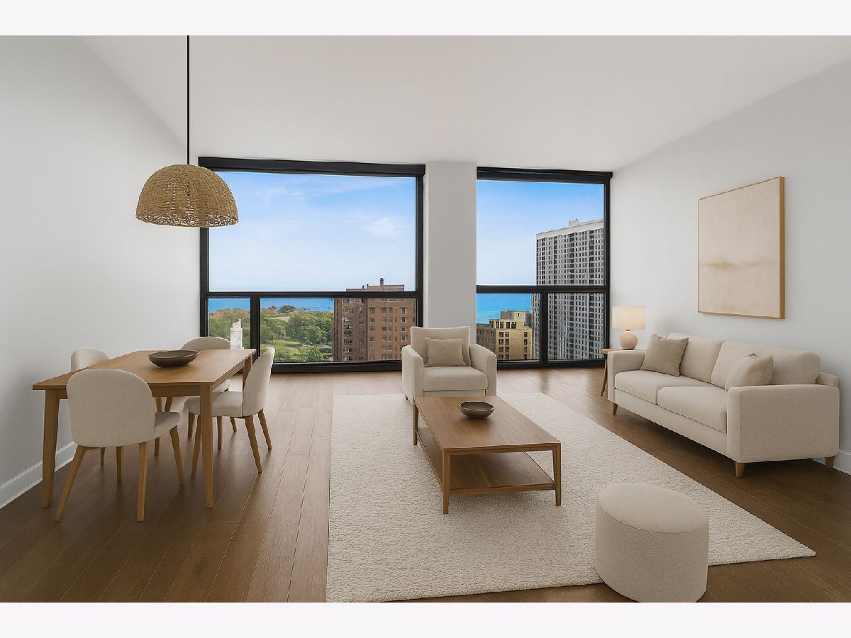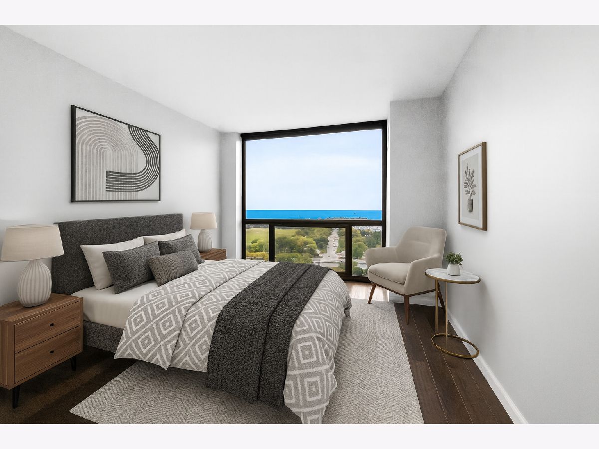 Wake up to beautiful lake views in this rare high floor east-facing unit at 4343 N Clarendon. With floor-to-ceiling windows throughout, this home is filled with natural light and offers a front-row seat to Chicago's lakefront - without the noise of living right on Lake Shore Drive. The kitchen features modern white cabinetry, contemporary countertops, stainless steel appliances, and a breakfast bar that opens into the living area - a great setup for everyday living or hosting friends. The bedroom offers more floor-to-ceiling windows and views, plus rich dark hardwood flooring runs throughout. Central A/C and heating adds comfort and convenience. Enjoy full-service living with building amenities that include a gym, outdoor pool, roof deck, dog run, laundry facilities, and 24-hour door staff. The building is dog-friendly and well-loved by residents. Whether you're a first-time buyer looking for a move-in-ready home or an investor adding to your portfolio, this unit checks the right boxes. Heated garage self parking is usually available for rent through other unit owners for approximately $250 a month. For investors, this unit's monthly rental price is projected around $2,150. Located in a highly desirable area, this a great property for you!