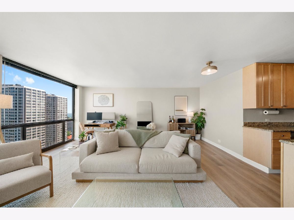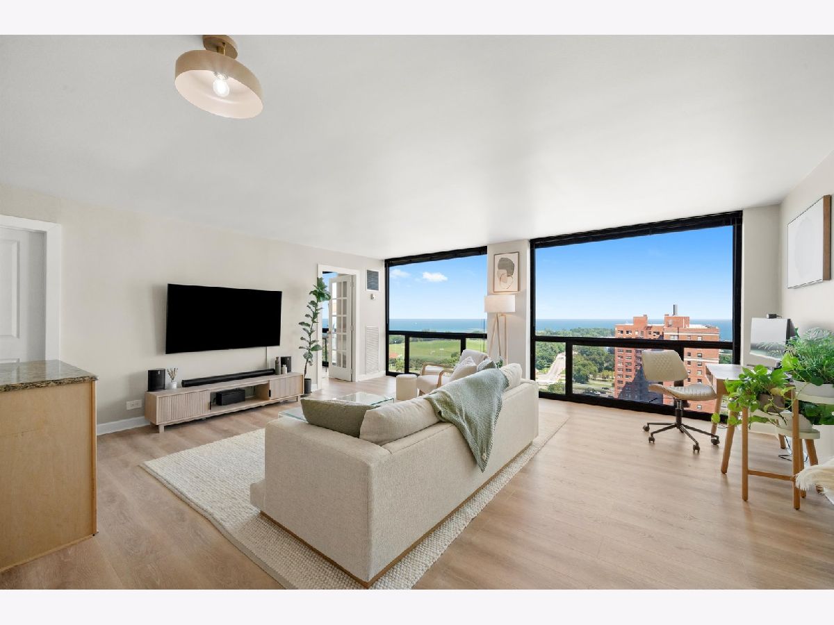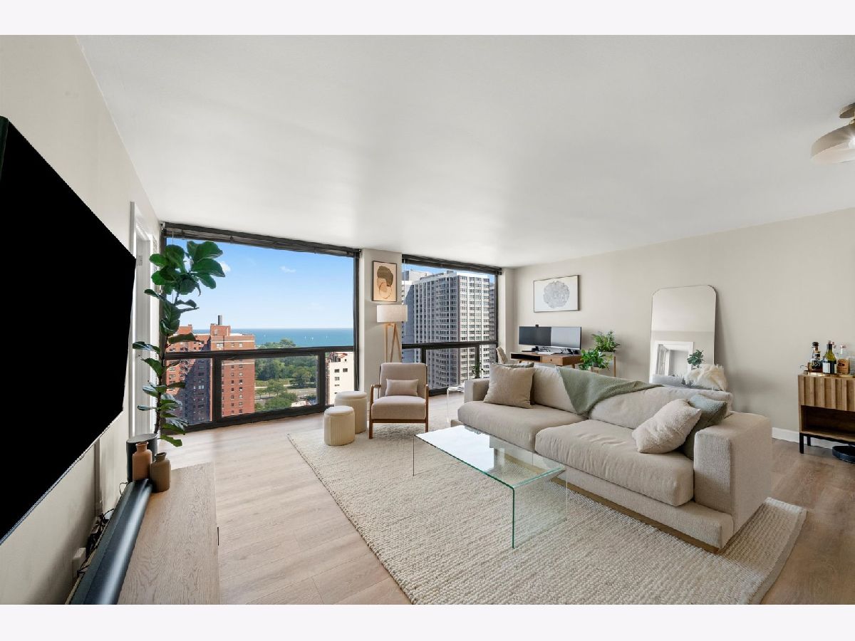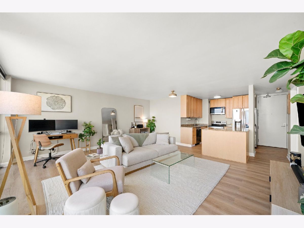 Move-in ready with lake views at this price point, truly unheard of! Perched on the 21st floor, this spacious 1-bed, 1-bath home offers dramatic, unobstructed views of the lake and stunning sunsets. Inside, you'll find new laminate plank flooring throughout a flexible open-concept living and dining space, along with a functional kitchen featuring a breakfast bar and stainless steel appliances. Bedroom is spacious with great closet space. Located in the heart of Buena Park, this full-amenity building includes 24-hour door staff, a fitness center, outdoor pool, tennis courts, and a sundeck with grills. Just one block from the lakefront trail, Montrose Beach, and express CTA transit. Whether you're looking for a move-in ready home or a strong investment (no rental caps + solid reserves), this one checks all the boxes. Leased parking available & rentable storage available. Come see it for yourself and make it yours!