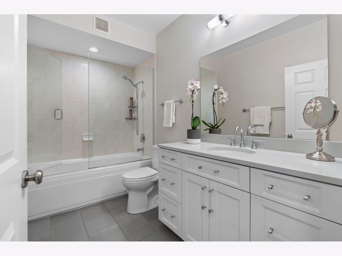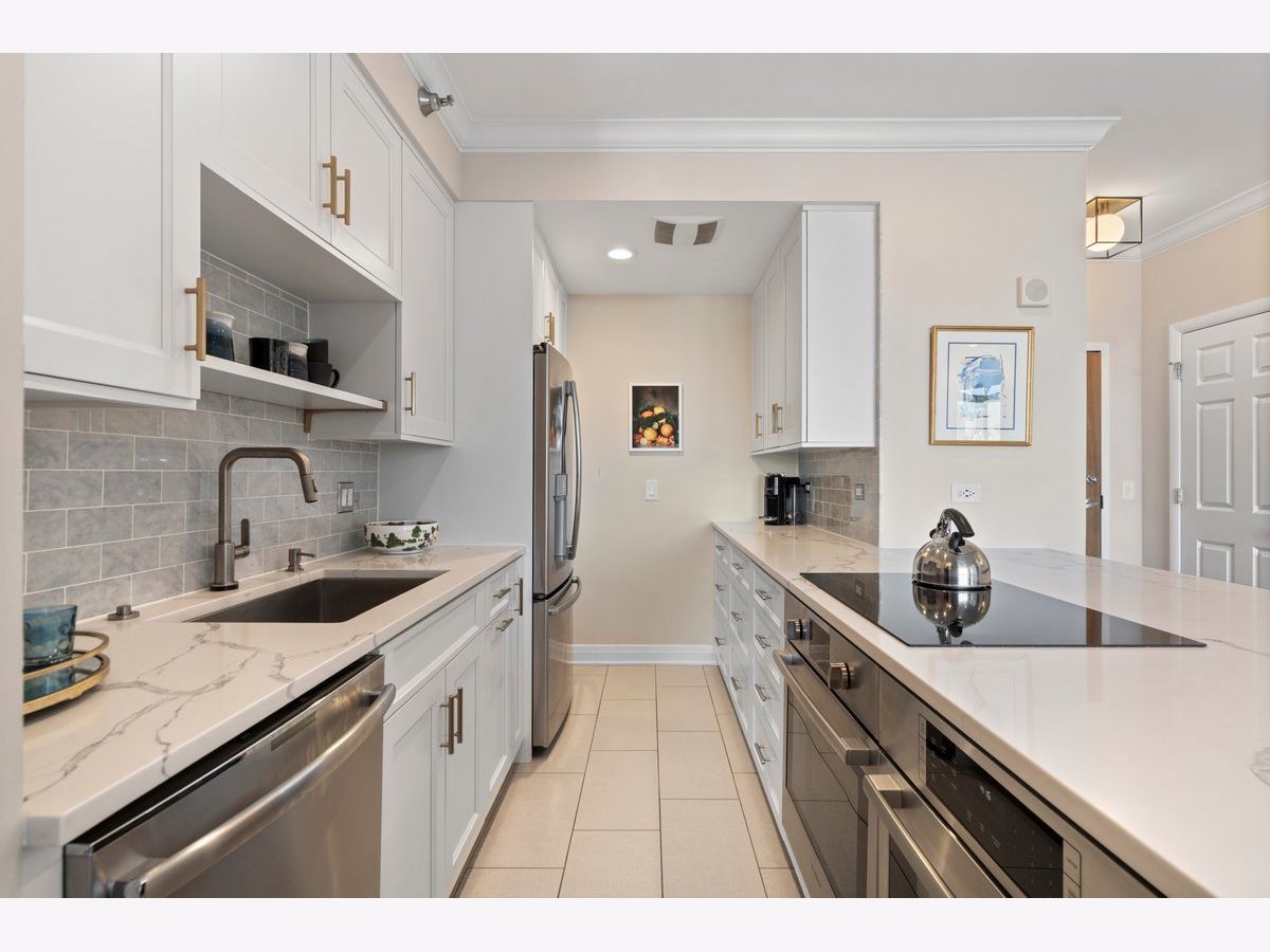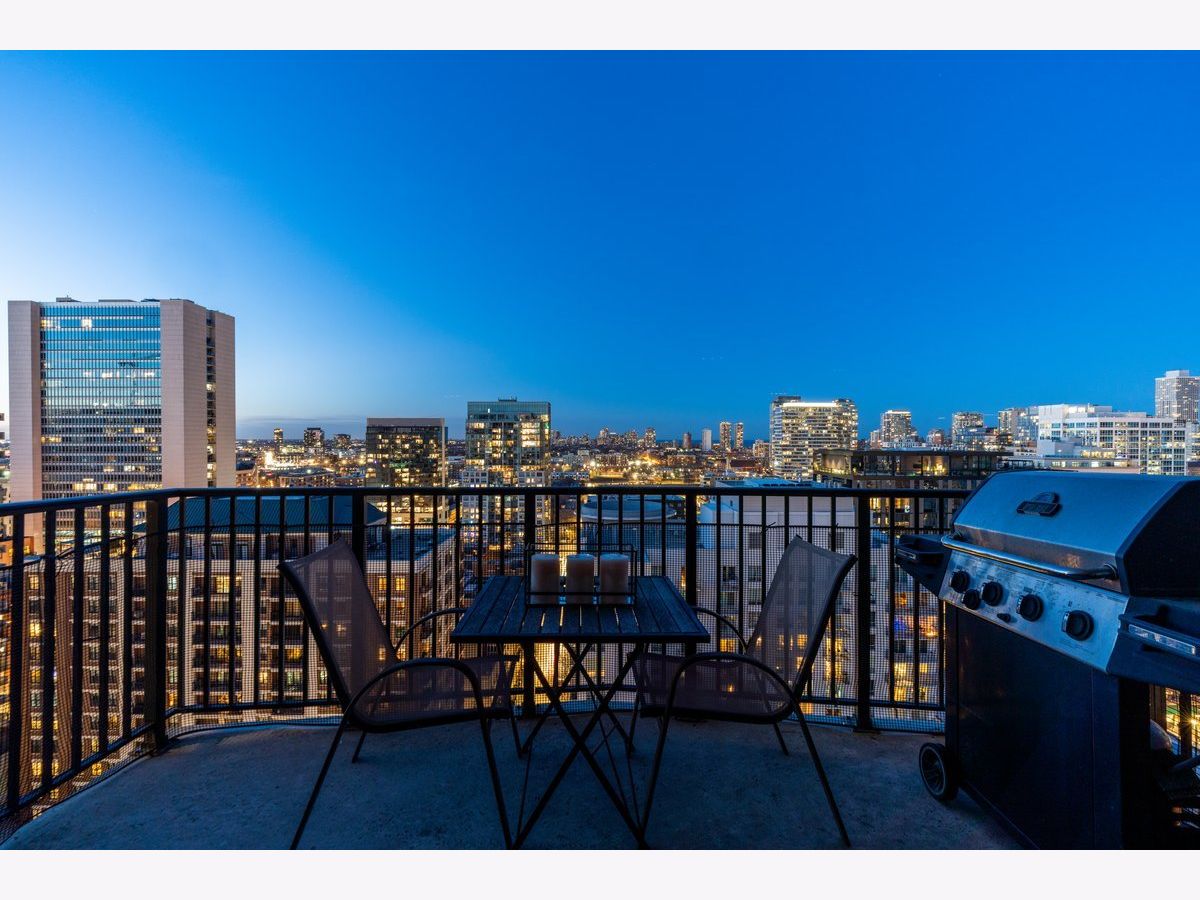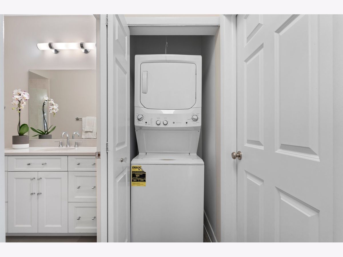 Elevated living awaits in this stunning, fully renovated 2-bedroom, 2-bath residence showcasing breathtaking, wide-open lake and city views from your private balcony. Thoughtfully redesigned with numerous high-end upgrades, this condo seamlessly blends modern luxury with timeless sophistication. The expansive living space is anchored by a custom built-in wall unit with integrated TV cabinet, shelving, and storage, complemented by hardwood floors throughout, crown molding, a gas fireplace with updated hearth, and designer lighting. A stylish built-in dining banquette creates the perfect space for everyday living and entertaining, while a sliding barn door with upgraded track and hardware adds architectural interest. The beautifully reimagined kitchen is outfitted with polished quartz slab countertops and backsplash, new cabinetry and hardware, and a premium appliance package including a Bosch induction cooktop, stainless steel single wall oven, stainless steel speed oven, dishwasher, microwave, and a sleek sink with touch faucet-designed for both functionality and style. The spacious primary suite features a massive walk-in closet plus an additional cedar walk-in closet, offering exceptional storage. The spa-inspired primary bath boasts new cabinetry, quartz vanity countertop, updated flooring, designer mirror, wall sconces, and refined finishes throughout. The guest bath has also been completely updated with new cabinetry, quartz vanity, flooring, tile shower surround, modern lighting, and mirror. Additional upgrades include a new GE 27" stacked washer and dryer, new window treatments, stained wood floors, and thoughtfully selected hardware throughout. Located in a premier full-amenity, pet friendly building featuring 24-hour door staff, an incredible rooftop deck with panoramic 360-degree city views, fitness center, and party room-this exceptional home offers luxury living at its finest. One garage parking spot is included in the price, with one additional parking spot available to purchase for $35K. Rarely available and truly move-in ready-this one won't last long!