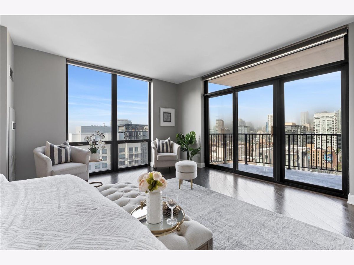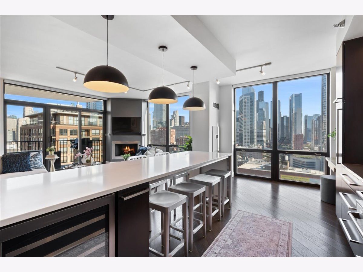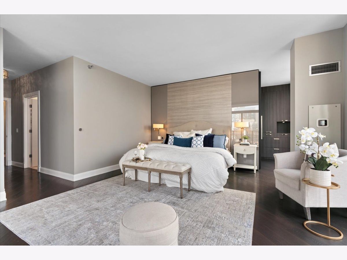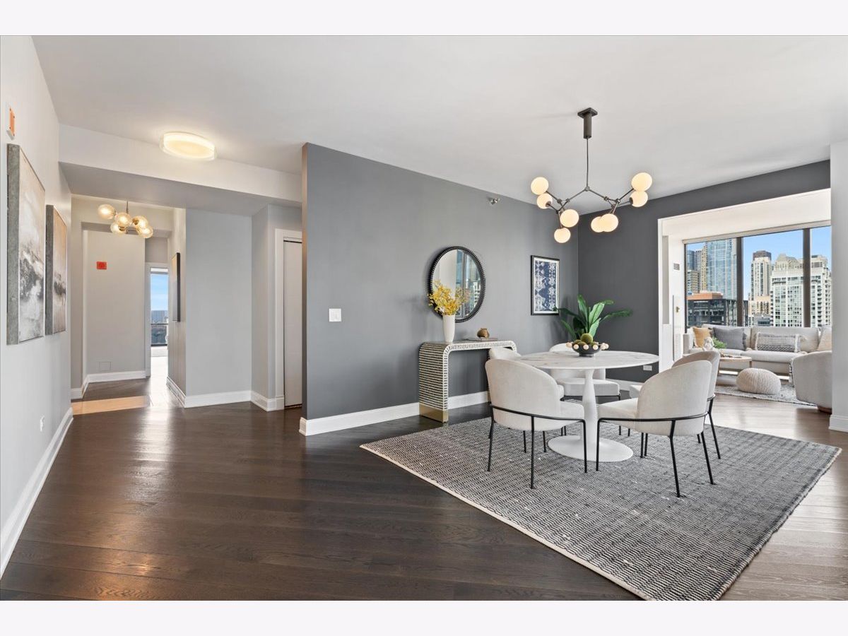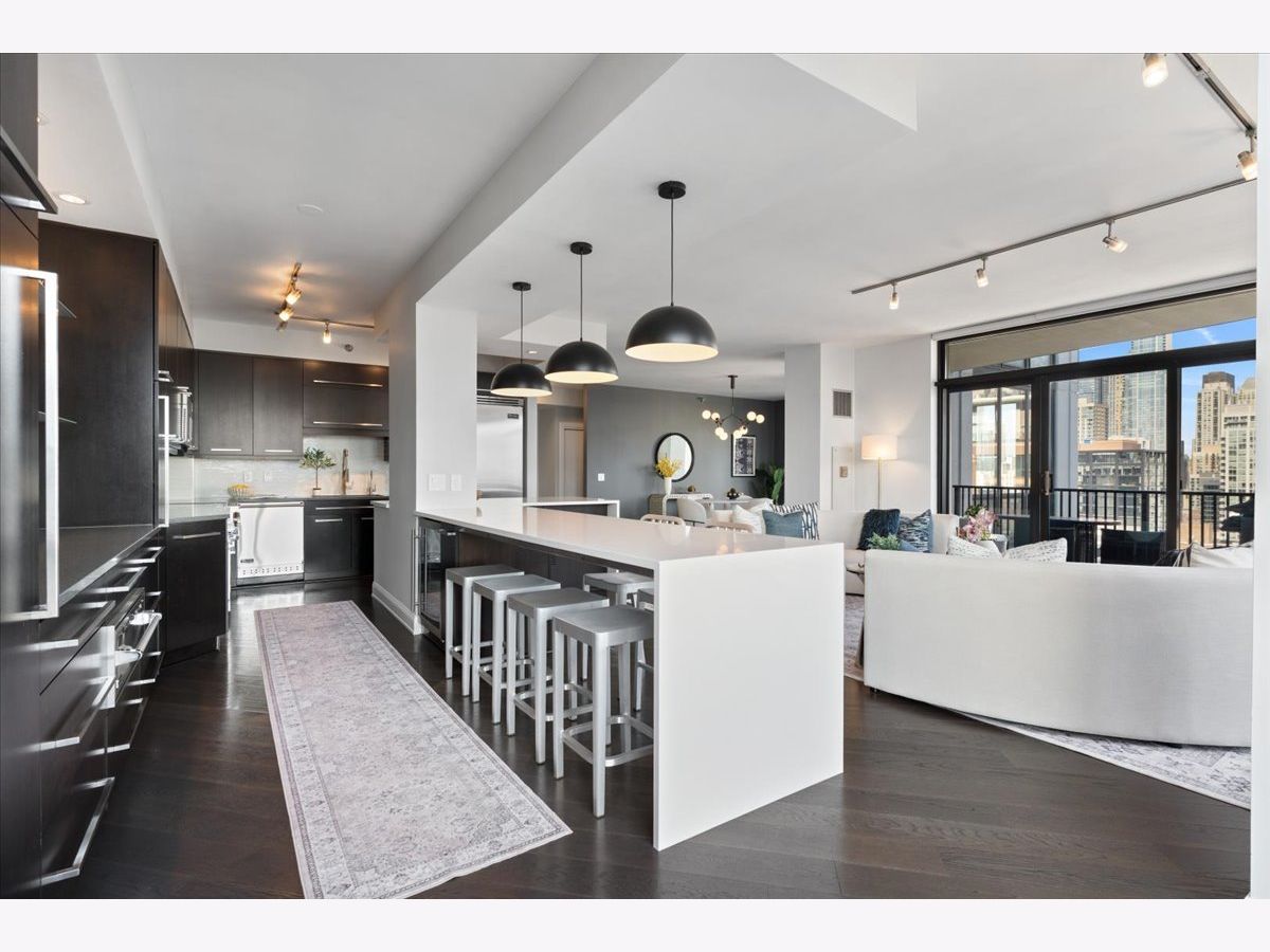 Experience refined luxury living at Erie Centre Tower in the heart of River North. This spectacular, fully gutted and meticulously redesigned residence offers approximately 3,000 square feet of sophisticated living space, spanning the entire east side of the building with breathtaking, unobstructed city views to the south, east, and north. Floor-to-ceiling windows flood the home with natural light, while two private balconies provide the perfect setting for morning coffee or evening entertaining. The expansive open-concept layout showcases a stunning chef's kitchen designed for both everyday living and effortless hosting, complemented by premium designer finishes and integrated smart home technology throughout. Every detail has been thoughtfully curated, including 6" Carlisle white oak flooring, custom closets, Hunter Douglas electronic shades, and designer lighting throughout. An additional living area featuring a wet bar and beverage center creates the ideal space for entertaining or relaxing in style. The luxurious primary suite offers a true retreat, complete with a spa-inspired bath featuring a soaking tub, walk-in shower with body sprays, rain shower, steam, and Robern mirrors with integrated lighting. Additional highlights include two heated, deeded, electric vehicle-ready parking spaces available for an additional $50,000 total. Erie Centre Tower offers full-service amenities including 24-hour door staff, a fitness center, and a rooftop sundeck. This is a rare opportunity to own a turnkey, designer-quality residence in one of River North's premier locations.