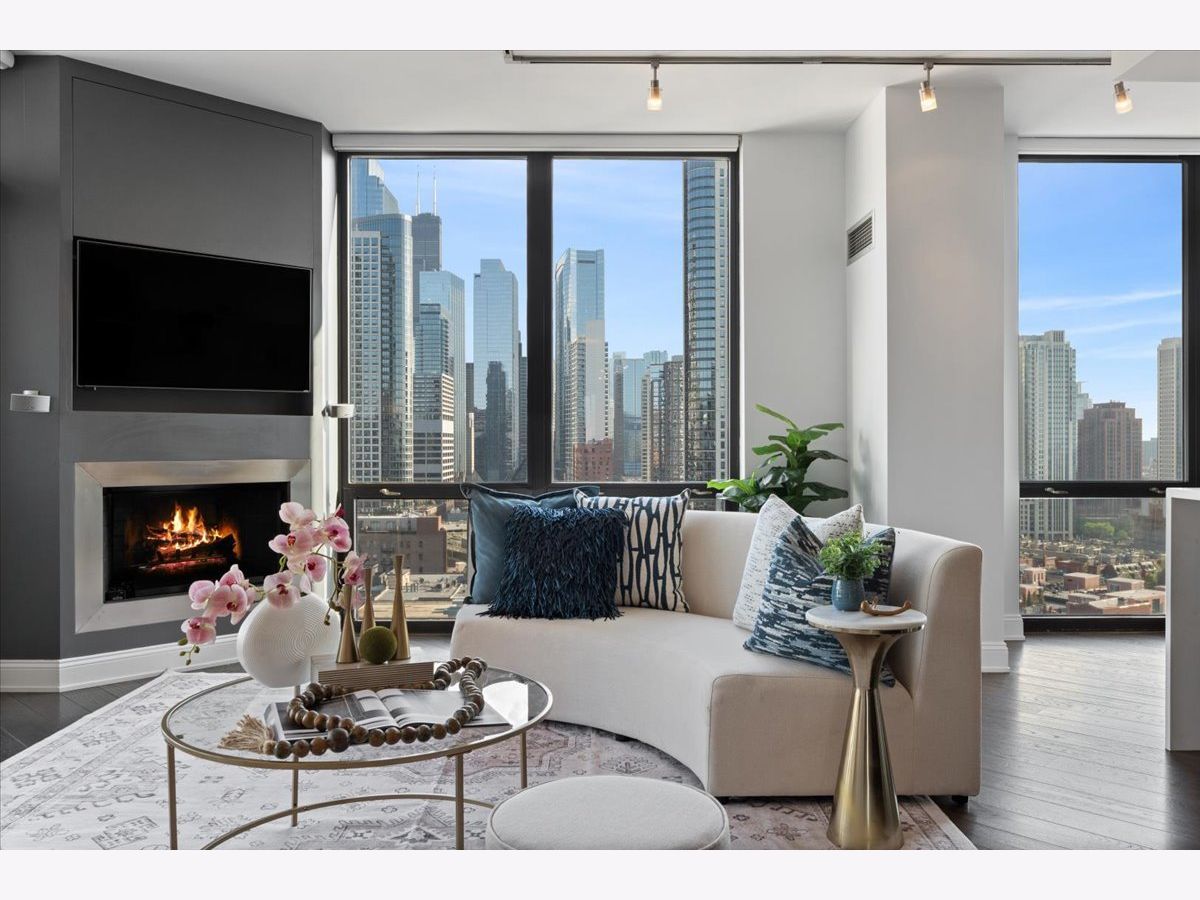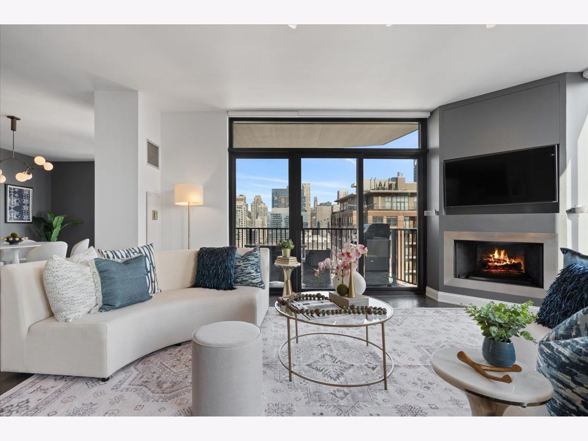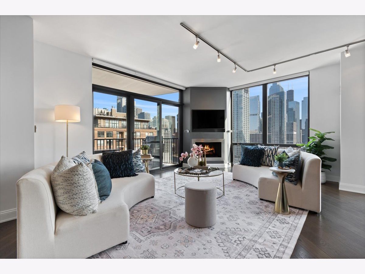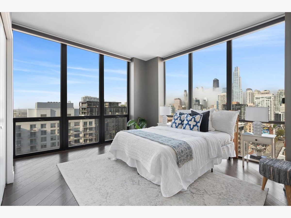 Experience refined luxury living at Erie Centre Tower in the heart of River North. This spectacular, fully gutted and meticulously redesigned residence offers approximately 3,000 square feet of sophisticated living space, spanning the entire east side of the building with breathtaking, unobstructed city views to the south, east, and north. Floor-to-ceiling windows flood the home with natural light, while two private balconies provide the perfect setting for morning coffee or evening entertaining. The expansive open-concept layout showcases a stunning chef's kitchen designed for both everyday living and effortless hosting, complemented by premium designer finishes and integrated smart home technology throughout. Every detail has been thoughtfully curated, including 6" Carlisle white oak flooring, custom closets, Hunter Douglas electronic shades, and designer lighting throughout. An additional living area featuring a wet bar and beverage center creates the ideal space for entertaining or relaxing in style. The luxurious primary suite offers a true retreat, complete with a spa-inspired bath featuring a soaking tub, walk-in shower with body sprays, rain shower, steam, and Robern mirrors with integrated lighting. Additional highlights include two heated, deeded, electric vehicle-ready parking spaces available for an additional $50,000 total. Erie Centre Tower offers full-service amenities including 24-hour door staff, a fitness center, and a rooftop sundeck. This is a rare opportunity to own a turnkey, designer-quality residence in one of River North's premier locations.