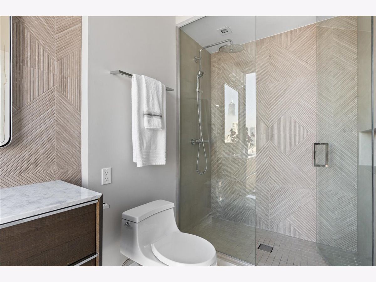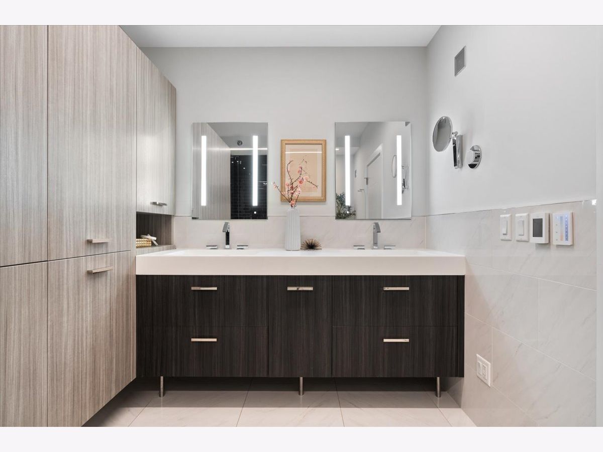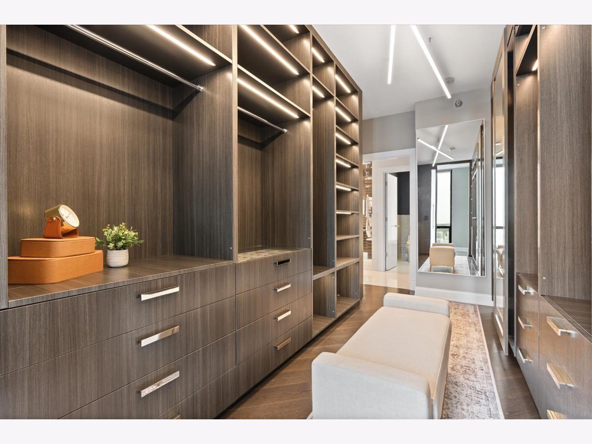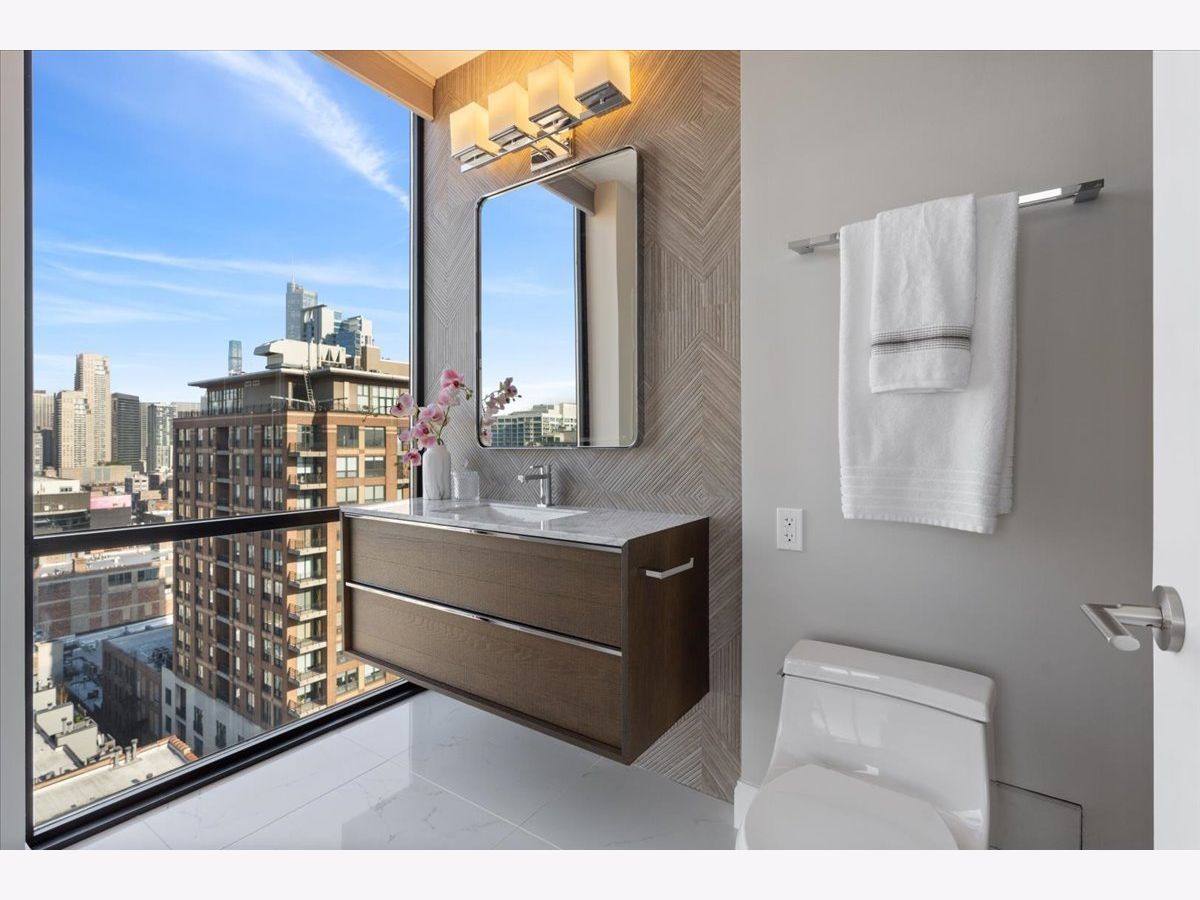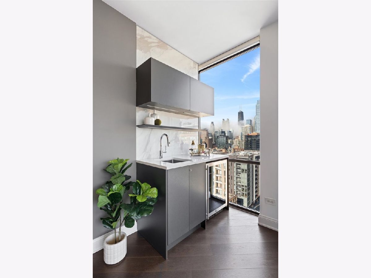 Experience refined luxury living at Erie Centre Tower in the heart of River North. This spectacular, fully gutted and meticulously redesigned residence offers approximately 3,000 square feet of sophisticated living space, spanning the entire east side of the building with breathtaking, unobstructed city views to the south, east, and north. Floor-to-ceiling windows flood the home with natural light, while two private balconies provide the perfect setting for morning coffee or evening entertaining. The expansive open-concept layout showcases a stunning chef's kitchen designed for both everyday living and effortless hosting, complemented by premium designer finishes and integrated smart home technology throughout. Every detail has been thoughtfully curated, including 6" Carlisle white oak flooring, custom closets, Hunter Douglas electronic shades, and designer lighting throughout. An additional living area featuring a wet bar and beverage center creates the ideal space for entertaining or relaxing in style. The luxurious primary suite offers a true retreat, complete with a spa-inspired bath featuring a soaking tub, walk-in shower with body sprays, rain shower, steam, and Robern mirrors with integrated lighting. Additional highlights include two heated, deeded, electric vehicle-ready parking spaces available for an additional $50,000 total. Erie Centre Tower offers full-service amenities including 24-hour door staff, a fitness center, and a rooftop sundeck. This is a rare opportunity to own a turnkey, designer-quality residence in one of River North's premier locations.