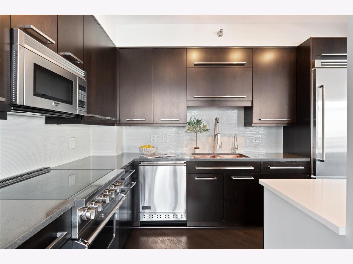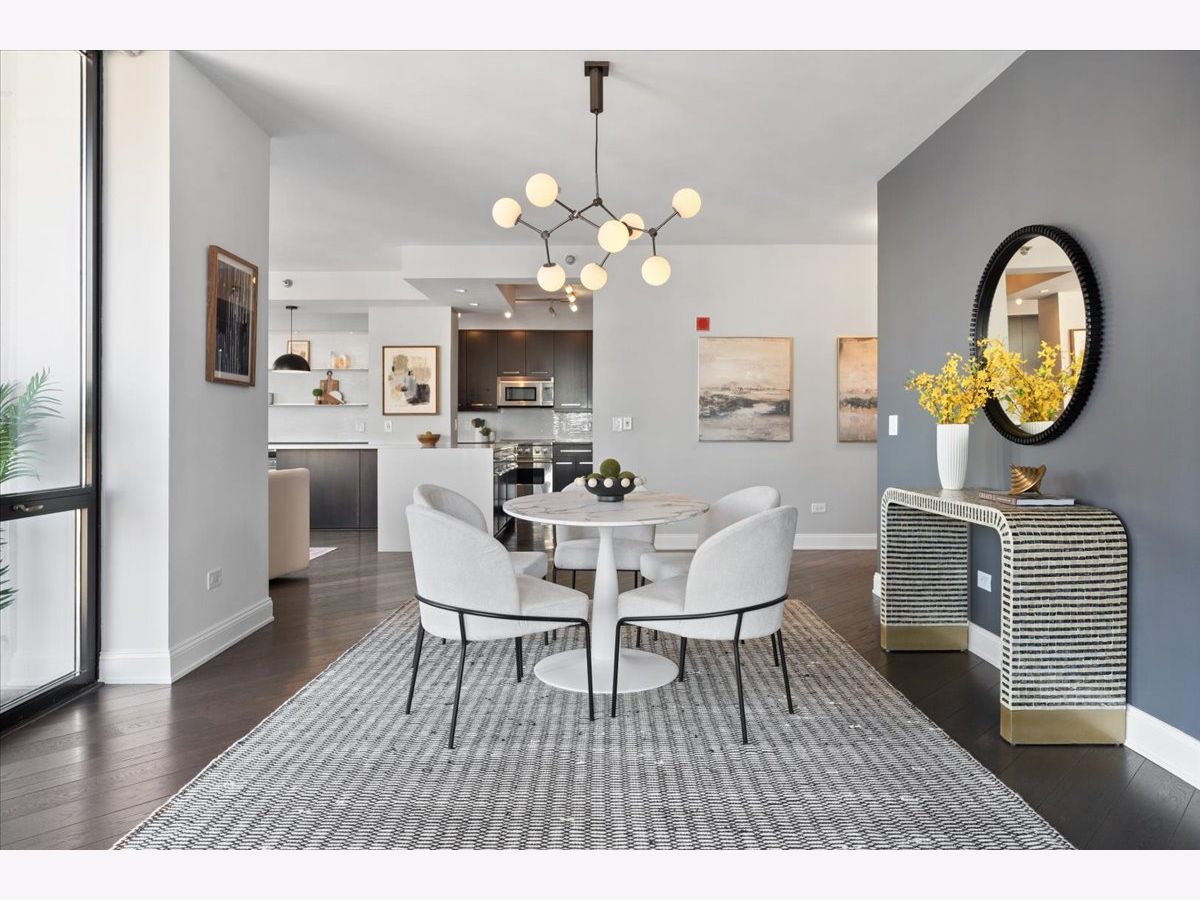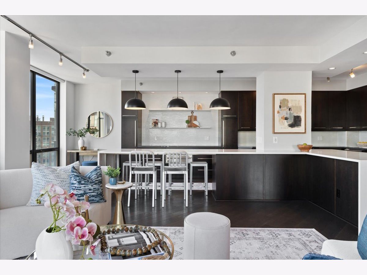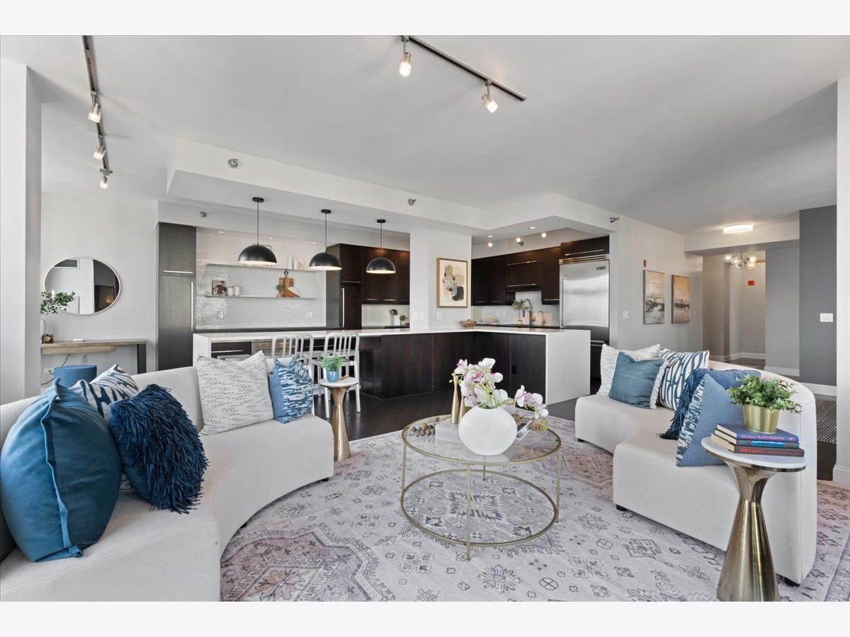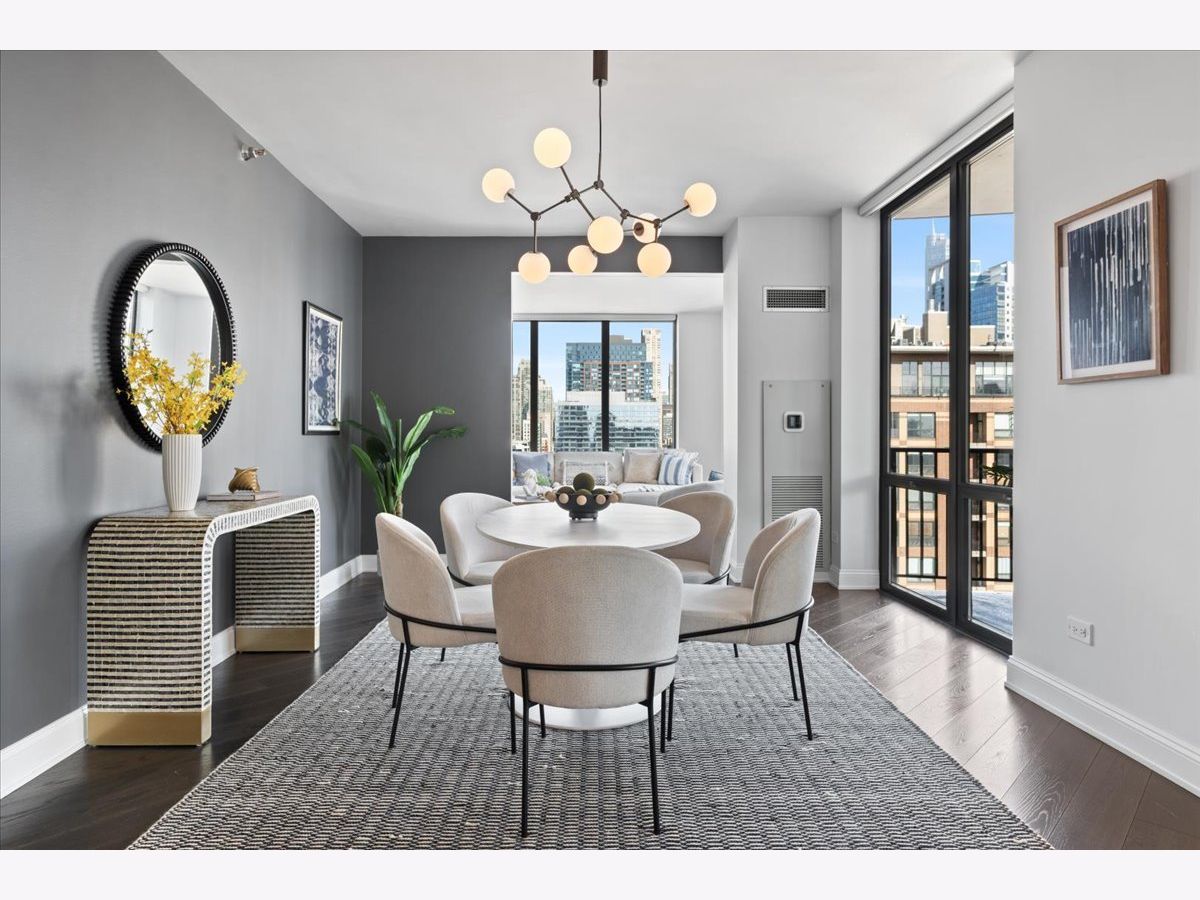 Experience refined luxury living at Erie Centre Tower in the heart of River North. This spectacular, fully gutted and meticulously redesigned residence offers approximately 3,000 square feet of sophisticated living space, spanning the entire east side of the building with breathtaking, unobstructed city views to the south, east, and north. Floor-to-ceiling windows flood the home with natural light, while two private balconies provide the perfect setting for morning coffee or evening entertaining. The expansive open-concept layout showcases a stunning chef's kitchen designed for both everyday living and effortless hosting, complemented by premium designer finishes and integrated smart home technology throughout. Every detail has been thoughtfully curated, including 6" Carlisle white oak flooring, custom closets, Hunter Douglas electronic shades, and designer lighting throughout. An additional living area featuring a wet bar and beverage center creates the ideal space for entertaining or relaxing in style. The luxurious primary suite offers a true retreat, complete with a spa-inspired bath featuring a soaking tub, walk-in shower with body sprays, rain shower, steam, and Robern mirrors with integrated lighting. Additional highlights include two heated, deeded, electric vehicle-ready parking spaces available for an additional $50,000 total. Erie Centre Tower offers full-service amenities including 24-hour door staff, a fitness center, and a rooftop sundeck. This is a rare opportunity to own a turnkey, designer-quality residence in one of River North's premier locations.