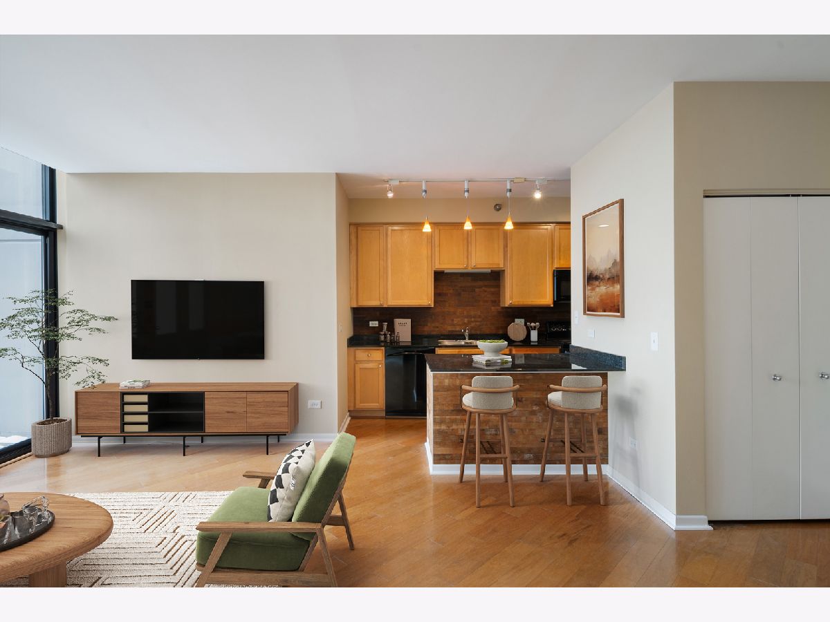 Penthouse 1-bedroom with an incredible, massive (and super rare!) private terrace in a highly desirable River North full-amenity building. This bright, open floor plan features a spacious kitchen with granite countertops, breakfast bar, and custom backsplash, flowing seamlessly into the living area. The generously sized bedroom offers excellent natural light, a walk-in closet, and in-unit washer/dryer. What truly sets this home apart is the outdoor space-an expansive terrace that feels like an extension of the living area and offers a level of privacy and usability that's hard to find in River North. This well-maintained building is a favorite for its strong management and amenities that enhance daily living, including a chic lobby, 24-hour door staff, fitness center, party room, rooftop deck, and elevator access. Prime River North location just steps from CTA, Starbucks, Dog Park, shopping, and some of Chicago's best restaurants and nightlife. 1 garage parking space included in price.