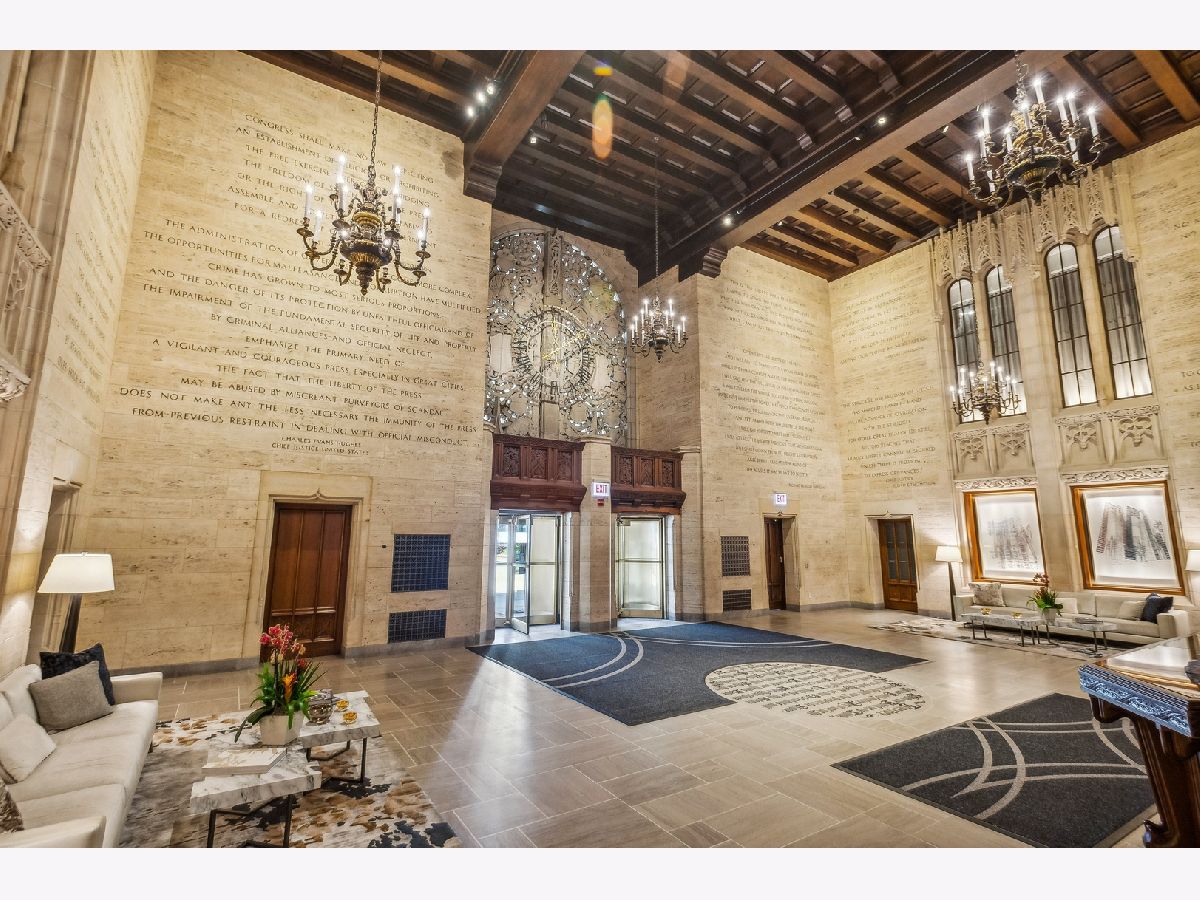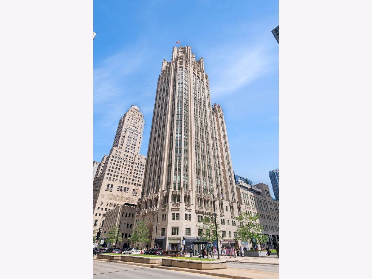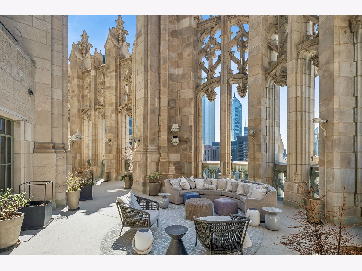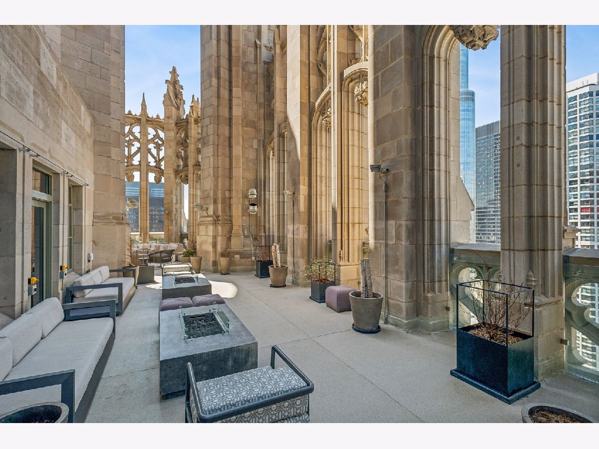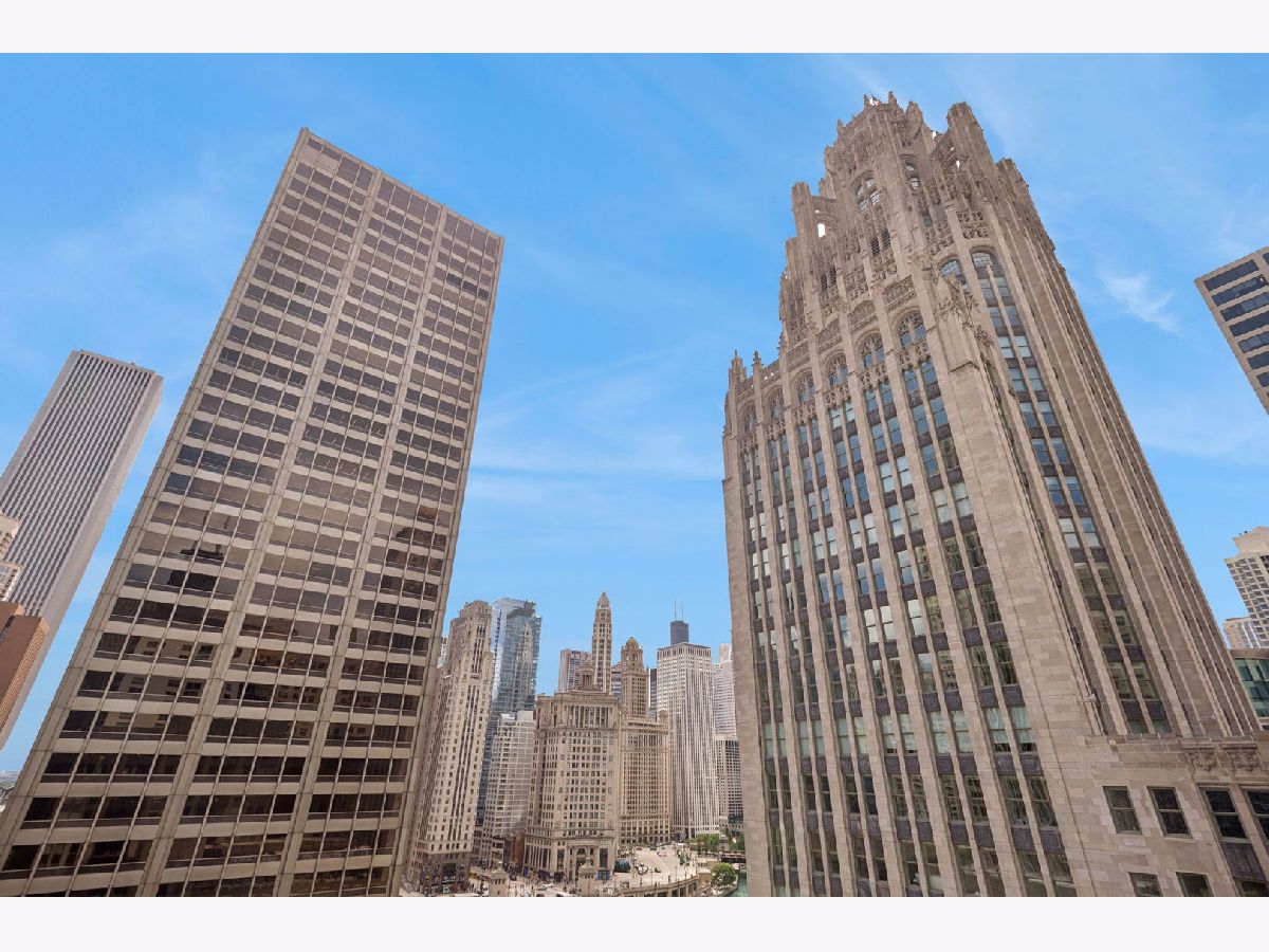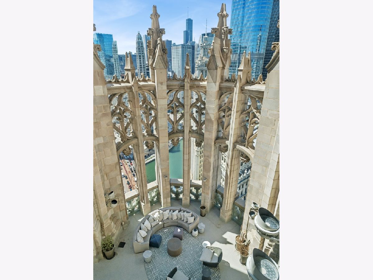 This incomparable property rests high above Chicago's Magnificent Mile at one of Chicago's most exclusive addresses: The Tribune Tower. Timeless elegance is seamlessly blended with the state-of-the-art. This is a treasure. This wonderful unit has a commanding south city view: the Chicago River, Michigan Avenue Bridge, and many world-famous architectural landmarks. The front door opens to an elegant foyer crowned with a shimmering chandelier that accents subtle hessian wallpaper. This smart technology condominium gives efficiency and convenience. The heated White Oak Character Grade floor offers a splendid foundation that passes from room to room, framed by a precise molding. An immediate right turn leased into the breathtaking Living Room framed with a crown molding. An Astria Atlas Vent Free Gas fireplace with silver beige polished marble hearth and surround with custom trim charms the room. The Lutrin blind system gives added exclusivity. A first-class kitchen appeals to the most discerning tastes: Sub Zero Designer Column Freezer with internal ice maker, Wolf gas range with four burners and infrared griddle, Best built-in range hood with integrated lighting and exhaust in custom stainless enclosure, Meile dishwasher. Frank garbage disposal. Kitchen counters and backsplash are Perla Venata quartzite with eased edged. Galley workstation has single bowl double tier under mount sink with single pulldown faucet. Premium grade hardwood drawers and wood shelves offer excellent storage. Drawer fronts and panels are premium white maple with Medex center panels. The extra spacious Living Room sports ten foot ceilings. The elegant Dining Room delights with its beautiful chandelier. This grand room leads to the balcony with its epic views. Complete with aluminum terrace door by Graham Architectural Products, Sterling Dulan Glass Rail, porcelain paver tiles - this balcony has it all. Three full baths and one powder room are will appointed with Kohler and Waterworks fixtures. The powder room has vintage Herringbone pattern white oak flooring. Master bath counter has silver beige polished marble countertop with Carrara Venizia marble tile, shower floor and inlay. Secondary bath has Atlas Concorde Marvel Gray Fleury tile floor and inlay. Secondary bath walls are Stone Source Resort Bianco Matter tile. The Family Room has the custom designed parallel walls, bar with mirrored, illuminated backing and onyx topped cabinets, wine fridge, floor-to-ceiling windows. Walk in closets have custom shelving and recessed lighting. Laundry room has matte finish thermally fused laminate flat slabs, flush mounted designer features, LG washer and dryer. 55,000 feet of amenities defines a new level of luxury. Conference room, tv viewing room, piano, bar, and more. Magnificent fitness center has 75-foot pool, sauna, steam room. Golf practice tee and simulator on second floor. Garage level has dog walk. Outdoor terrace and sun deck flanked by buttresses that transcend anything in the city. Twenty-four-hour door staff and concierge service. Easy access to great shopping and world class cultural centers. Two prime deeded parking spaces included in the price. A must see