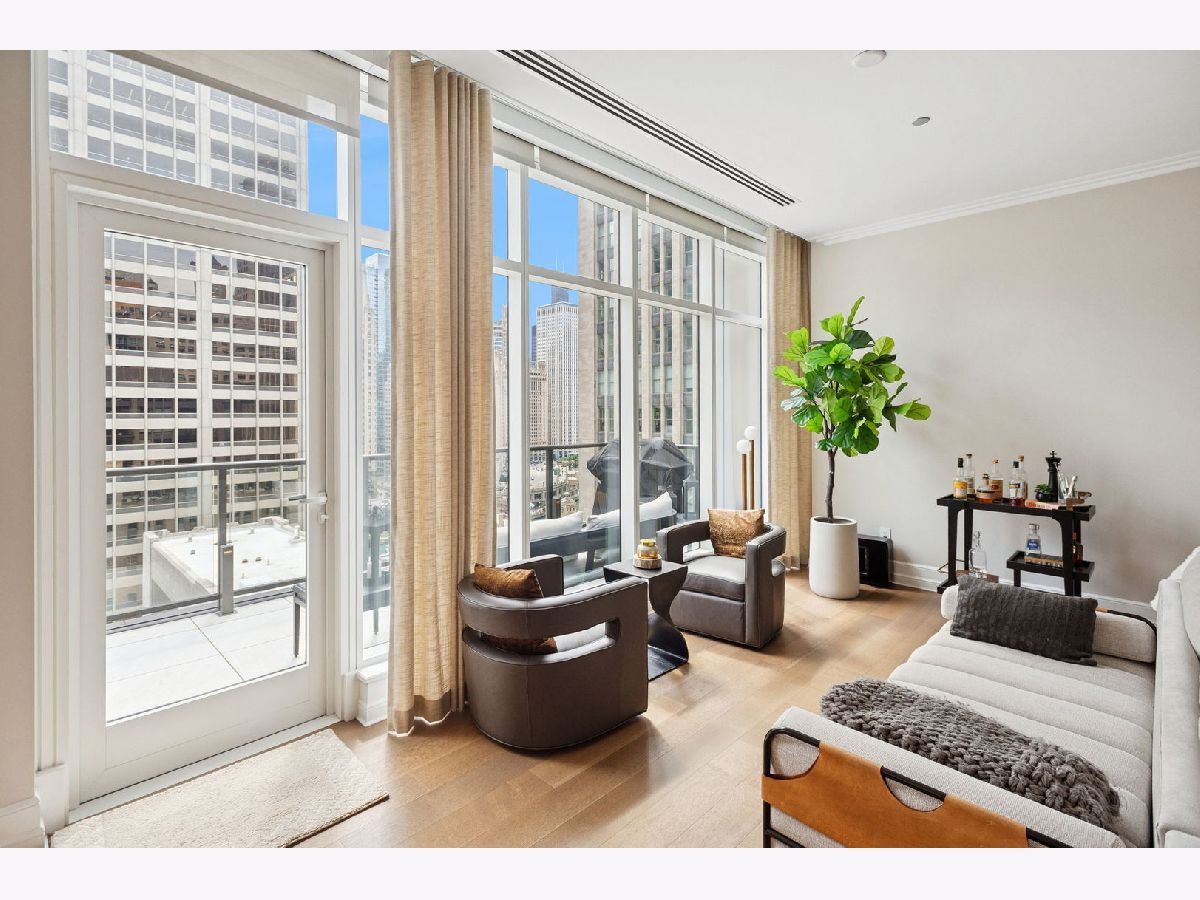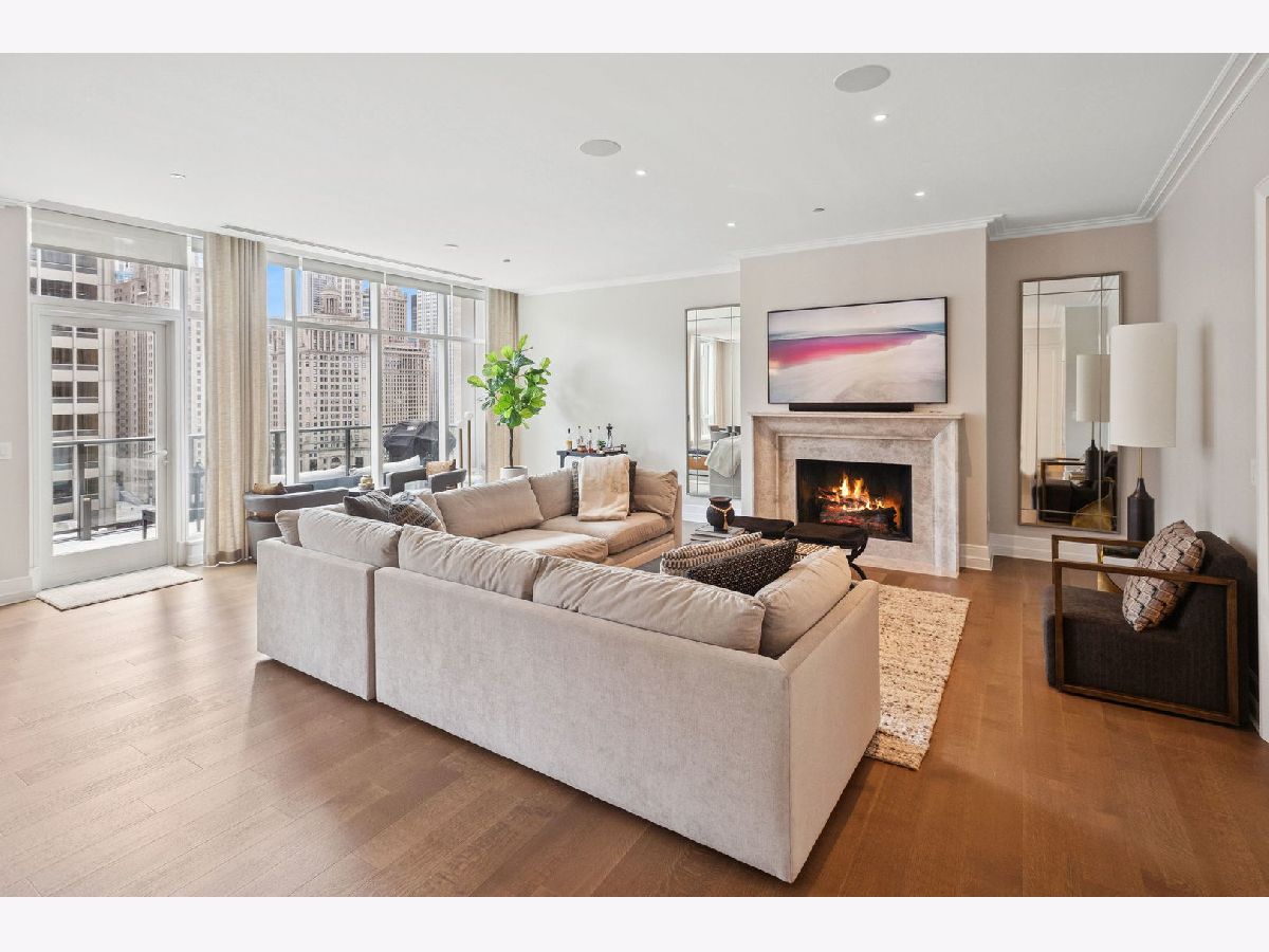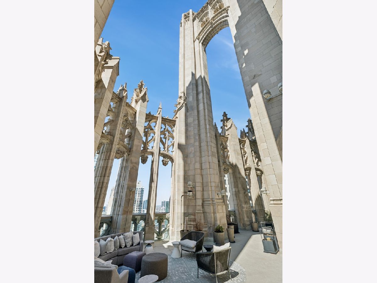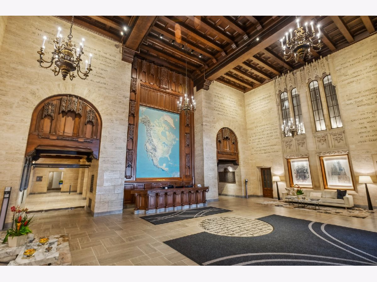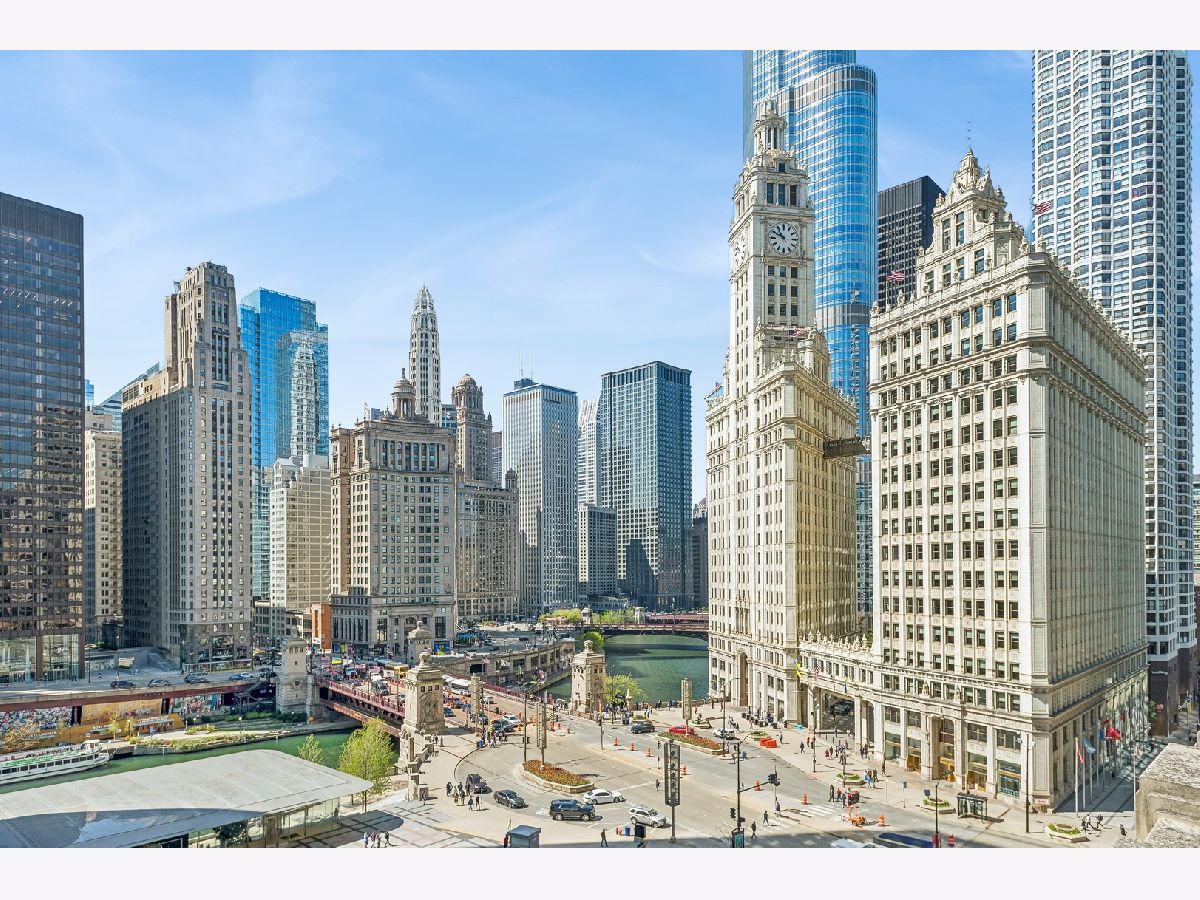 This incomparable property rests high above Chicago's Magnificent Mile at one of Chicago's most exclusive addresses: The Tribune Tower. Timeless elegance is seamlessly blended with the state-of-the-art. This is a treasure. This wonderful unit has a commanding south city view: the Chicago River, Michigan Avenue Bridge, and many world-famous architectural landmarks. The front door opens to an elegant foyer crowned with a shimmering chandelier that accents subtle hessian wallpaper. This smart technology condominium gives efficiency and convenience. The heated White Oak Character Grade floor offers a splendid foundation that passes from room to room, framed by a precise molding. An immediate right turn leased into the breathtaking Living Room framed with a crown molding. An Astria Atlas Vent Free Gas fireplace with silver beige polished marble hearth and surround with custom trim charms the room. The Lutrin blind system gives added exclusivity. A first-class kitchen appeals to the most discerning tastes: Sub Zero Designer Column Freezer with internal ice maker, Wolf gas range with four burners and infrared griddle, Best built-in range hood with integrated lighting and exhaust in custom stainless enclosure, Meile dishwasher. Frank garbage disposal. Kitchen counters and backsplash are Perla Venata quartzite with eased edged. Galley workstation has single bowl double tier under mount sink with single pulldown faucet. Premium grade hardwood drawers and wood shelves offer excellent storage. Drawer fronts and panels are premium white maple with Medex center panels. The extra spacious Living Room sports ten foot ceilings. The elegant Dining Room delights with its beautiful chandelier. This grand room leads to the balcony with its epic views. Complete with aluminum terrace door by Graham Architectural Products, Sterling Dulan Glass Rail, porcelain paver tiles - this balcony has it all. Three full baths and one powder room are will appointed with Kohler and Waterworks fixtures. The powder room has vintage Herringbone pattern white oak flooring. Master bath counter has silver beige polished marble countertop with Carrara Venizia marble tile, shower floor and inlay. Secondary bath has Atlas Concorde Marvel Gray Fleury tile floor and inlay. Secondary bath walls are Stone Source Resort Bianco Matter tile. The Family Room has the custom designed parallel walls, bar with mirrored, illuminated backing and onyx topped cabinets, wine fridge, floor-to-ceiling windows. Walk in closets have custom shelving and recessed lighting. Laundry room has matte finish thermally fused laminate flat slabs, flush mounted designer features, LG washer and dryer. 55,000 feet of amenities defines a new level of luxury. Conference room, tv viewing room, piano, bar, and more. Magnificent fitness center has 75-foot pool, sauna, steam room. Golf practice tee and simulator on second floor. Garage level has dog walk. Outdoor terrace and sun deck flanked by buttresses that transcend anything in the city. Twenty-four-hour door staff and concierge service. Easy access to great shopping and world class cultural centers. Two prime deeded parking spaces included in the price. A must see