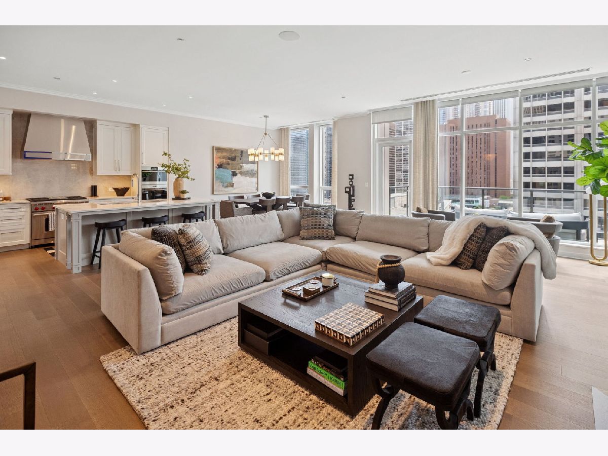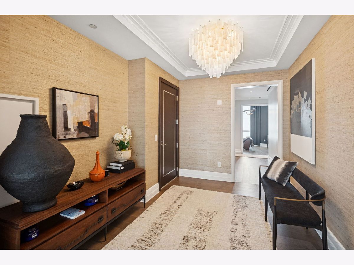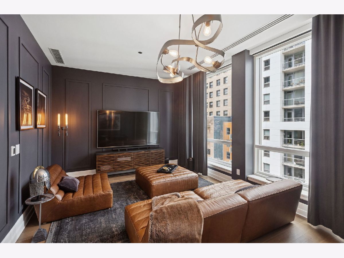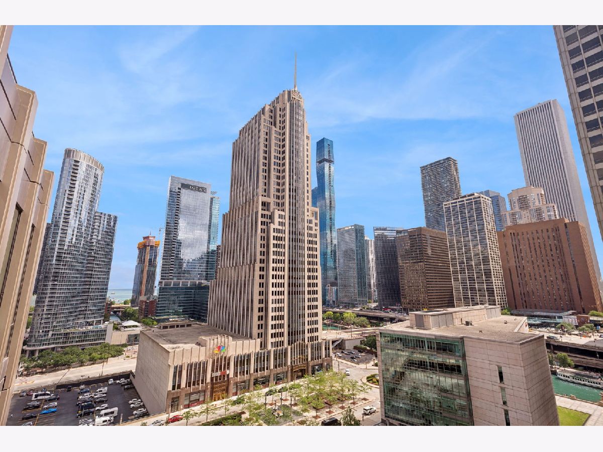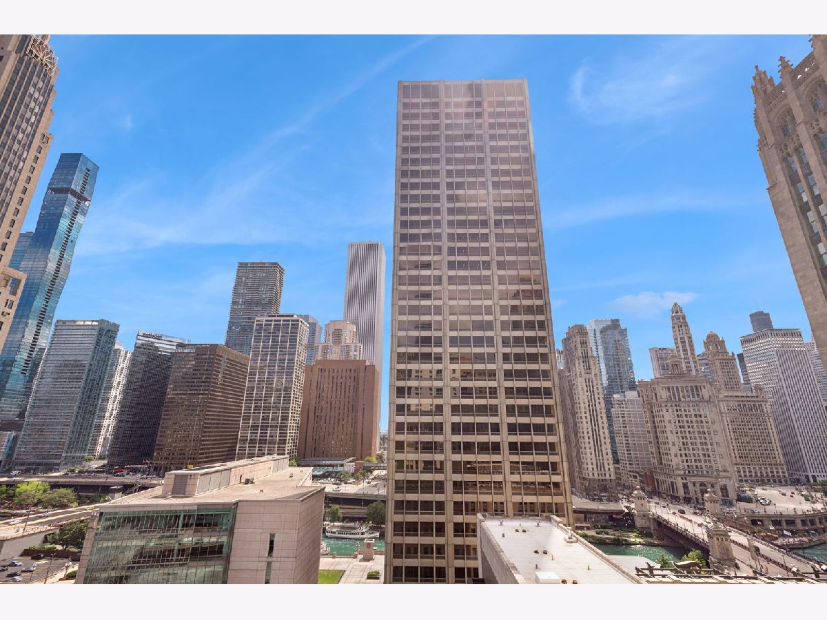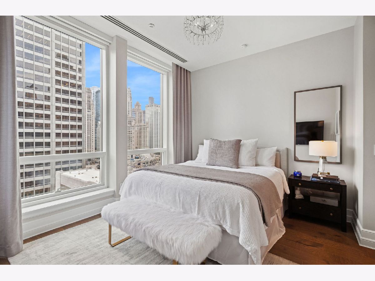 This incomparable property rests high above Chicago's Magnificent Mile at one of Chicago's most exclusive addresses: The Tribune Tower. Timeless elegance is seamlessly blended with the state-of-the-art. This is a treasure. This wonderful unit has a commanding south city view: the Chicago River, Michigan Avenue Bridge, and many world-famous architectural landmarks. The front door opens to an elegant foyer crowned with a shimmering chandelier that accents subtle hessian wallpaper. This smart technology condominium gives efficiency and convenience. The heated White Oak Character Grade floor offers a splendid foundation that passes from room to room, framed by a precise molding. An immediate right turn leased into the breathtaking Living Room framed with a crown molding. An Astria Atlas Vent Free Gas fireplace with silver beige polished marble hearth and surround with custom trim charms the room. The Lutrin blind system gives added exclusivity. A first-class kitchen appeals to the most discerning tastes: Sub Zero Designer Column Freezer with internal ice maker, Wolf gas range with four burners and infrared griddle, Best built-in range hood with integrated lighting and exhaust in custom stainless enclosure, Meile dishwasher. Frank garbage disposal. Kitchen counters and backsplash are Perla Venata quartzite with eased edged. Galley workstation has single bowl double tier under mount sink with single pulldown faucet. Premium grade hardwood drawers and wood shelves offer excellent storage. Drawer fronts and panels are premium white maple with Medex center panels. The extra spacious Living Room sports ten foot ceilings. The elegant Dining Room delights with its beautiful chandelier. This grand room leads to the balcony with its epic views. Complete with aluminum terrace door by Graham Architectural Products, Sterling Dulan Glass Rail, porcelain paver tiles - this balcony has it all. Three full baths and one powder room are will appointed with Kohler and Waterworks fixtures. The powder room has vintage Herringbone pattern white oak flooring. Master bath counter has silver beige polished marble countertop with Carrara Venizia marble tile, shower floor and inlay. Secondary bath has Atlas Concorde Marvel Gray Fleury tile floor and inlay. Secondary bath walls are Stone Source Resort Bianco Matter tile. The Family Room has the custom designed parallel walls, bar with mirrored, illuminated backing and onyx topped cabinets, wine fridge, floor-to-ceiling windows. Walk in closets have custom shelving and recessed lighting. Laundry room has matte finish thermally fused laminate flat slabs, flush mounted designer features, LG washer and dryer. 55,000 feet of amenities defines a new level of luxury. Conference room, tv viewing room, piano, bar, and more. Magnificent fitness center has 75-foot pool, sauna, steam room. Golf practice tee and simulator on second floor. Garage level has dog walk. Outdoor terrace and sun deck flanked by buttresses that transcend anything in the city. Twenty-four-hour door staff and concierge service. Easy access to great shopping and world class cultural centers. Two prime deeded parking spaces included in the price. A must see