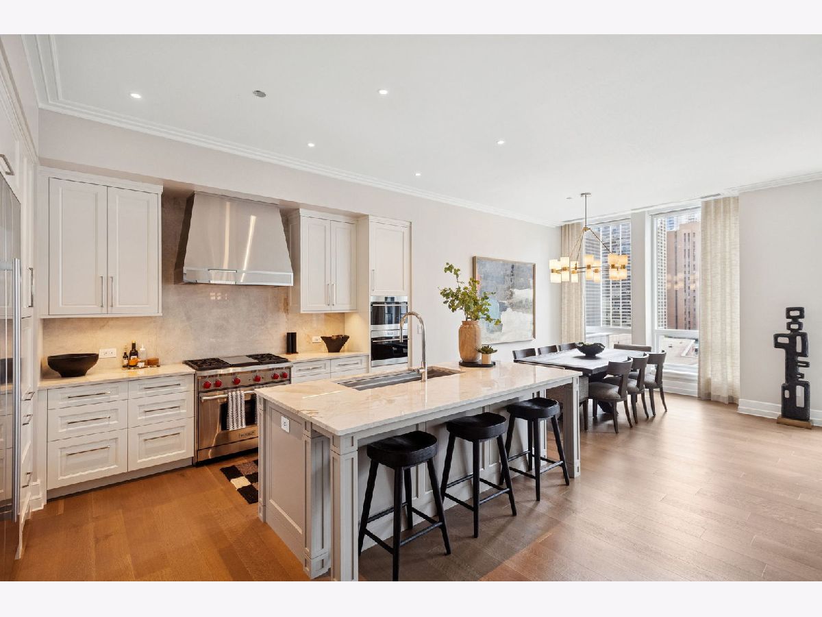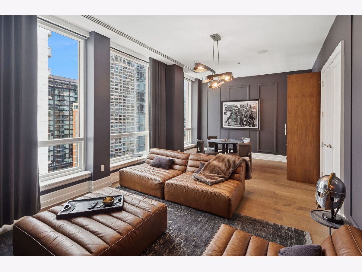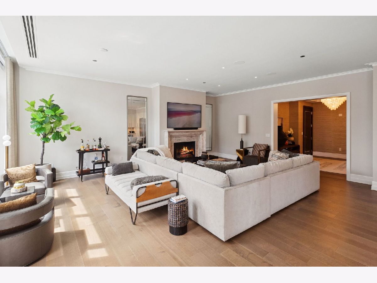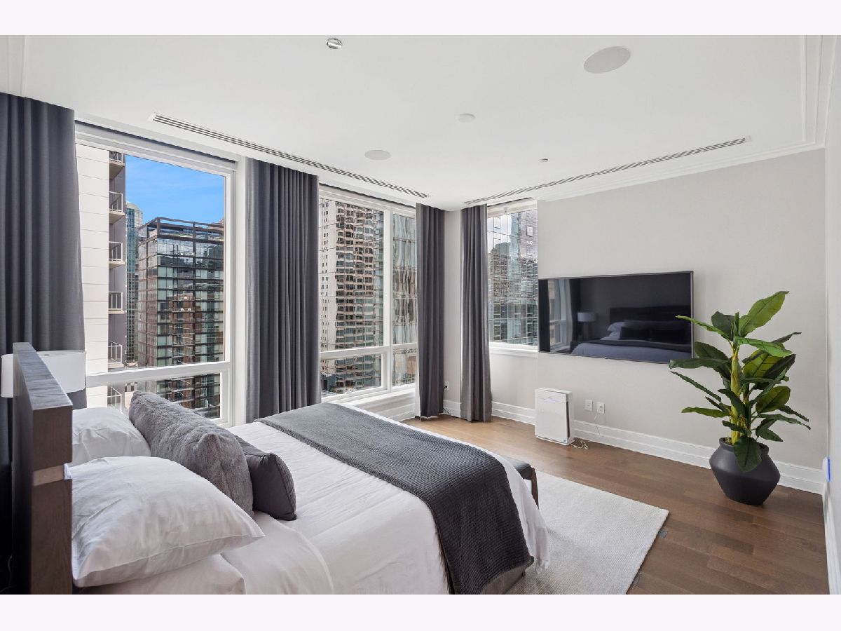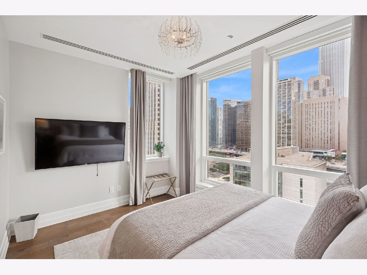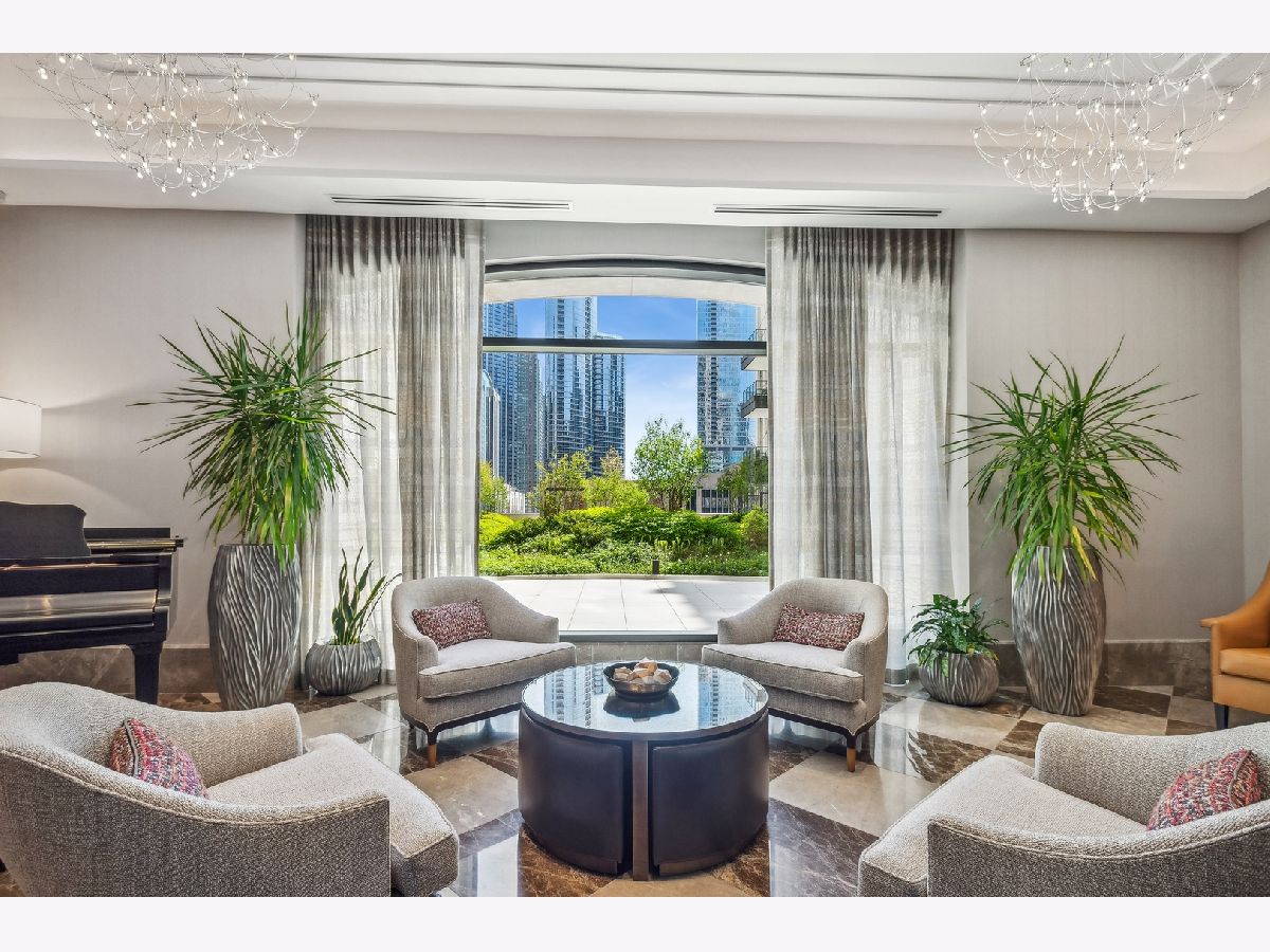 This incomparable property rests high above Chicago's Magnificent Mile at one of Chicago's most exclusive addresses: The Tribune Tower. Timeless elegance is seamlessly blended with the state-of-the-art. This is a treasure. This wonderful unit has a commanding south city view: the Chicago River, Michigan Avenue Bridge, and many world-famous architectural landmarks. The front door opens to an elegant foyer crowned with a shimmering chandelier that accents subtle hessian wallpaper. This smart technology condominium gives efficiency and convenience. The heated White Oak Character Grade floor offers a splendid foundation that passes from room to room, framed by a precise molding. An immediate right turn leased into the breathtaking Living Room framed with a crown molding. An Astria Atlas Vent Free Gas fireplace with silver beige polished marble hearth and surround with custom trim charms the room. The Lutrin blind system gives added exclusivity. A first-class kitchen appeals to the most discerning tastes: Sub Zero Designer Column Freezer with internal ice maker, Wolf gas range with four burners and infrared griddle, Best built-in range hood with integrated lighting and exhaust in custom stainless enclosure, Meile dishwasher. Frank garbage disposal. Kitchen counters and backsplash are Perla Venata quartzite with eased edged. Galley workstation has single bowl double tier under mount sink with single pulldown faucet. Premium grade hardwood drawers and wood shelves offer excellent storage. Drawer fronts and panels are premium white maple with Medex center panels. The extra spacious Living Room sports ten foot ceilings. The elegant Dining Room delights with its beautiful chandelier. This grand room leads to the balcony with its epic views. Complete with aluminum terrace door by Graham Architectural Products, Sterling Dulan Glass Rail, porcelain paver tiles - this balcony has it all. Three full baths and one powder room are will appointed with Kohler and Waterworks fixtures. The powder room has vintage Herringbone pattern white oak flooring. Master bath counter has silver beige polished marble countertop with Carrara Venizia marble tile, shower floor and inlay. Secondary bath has Atlas Concorde Marvel Gray Fleury tile floor and inlay. Secondary bath walls are Stone Source Resort Bianco Matter tile. The Family Room has the custom designed parallel walls, bar with mirrored, illuminated backing and onyx topped cabinets, wine fridge, floor-to-ceiling windows. Walk in closets have custom shelving and recessed lighting. Laundry room has matte finish thermally fused laminate flat slabs, flush mounted designer features, LG washer and dryer. 55,000 feet of amenities defines a new level of luxury. Conference room, tv viewing room, piano, bar, and more. Magnificent fitness center has 75-foot pool, sauna, steam room. Golf practice tee and simulator on second floor. Garage level has dog walk. Outdoor terrace and sun deck flanked by buttresses that transcend anything in the city. Twenty-four-hour door staff and concierge service. Easy access to great shopping and world class cultural centers. Two prime deeded parking spaces included in the price. A must see