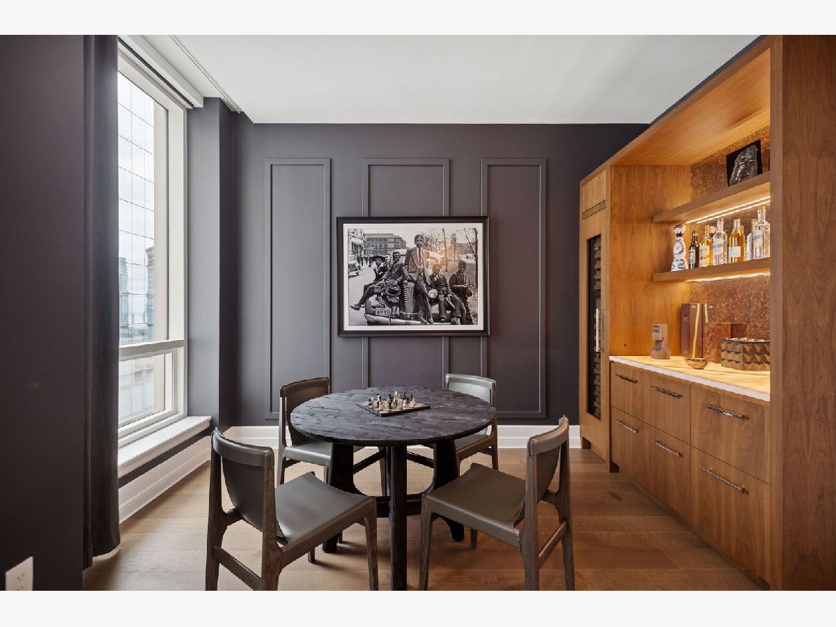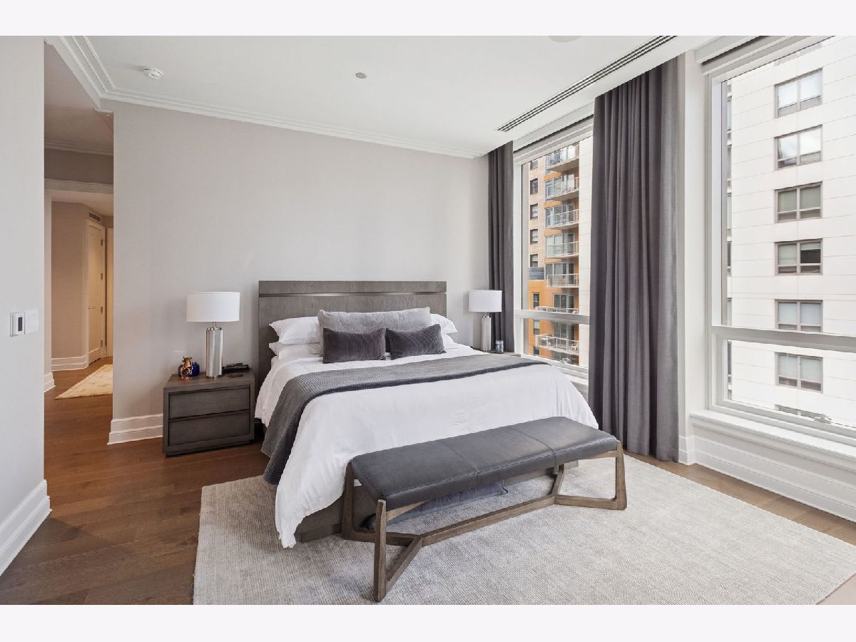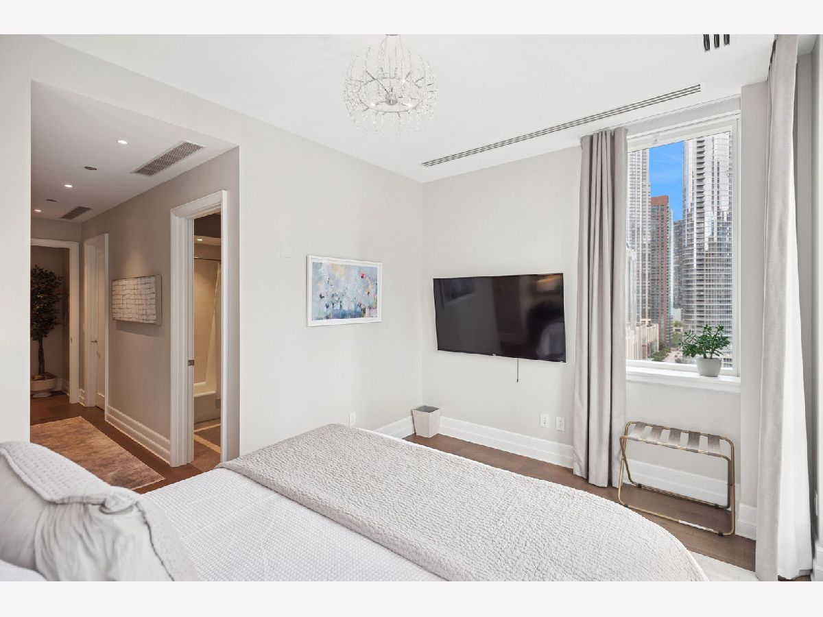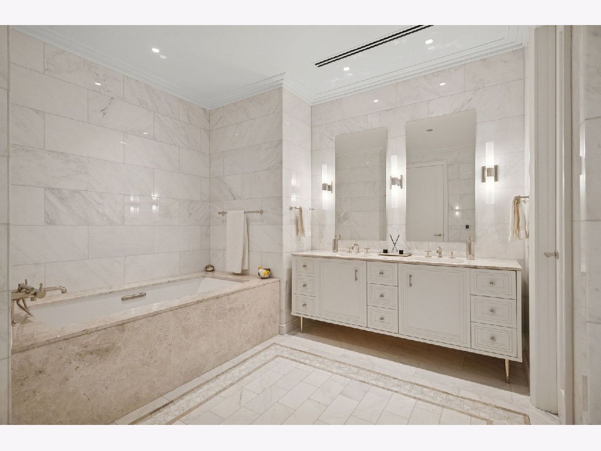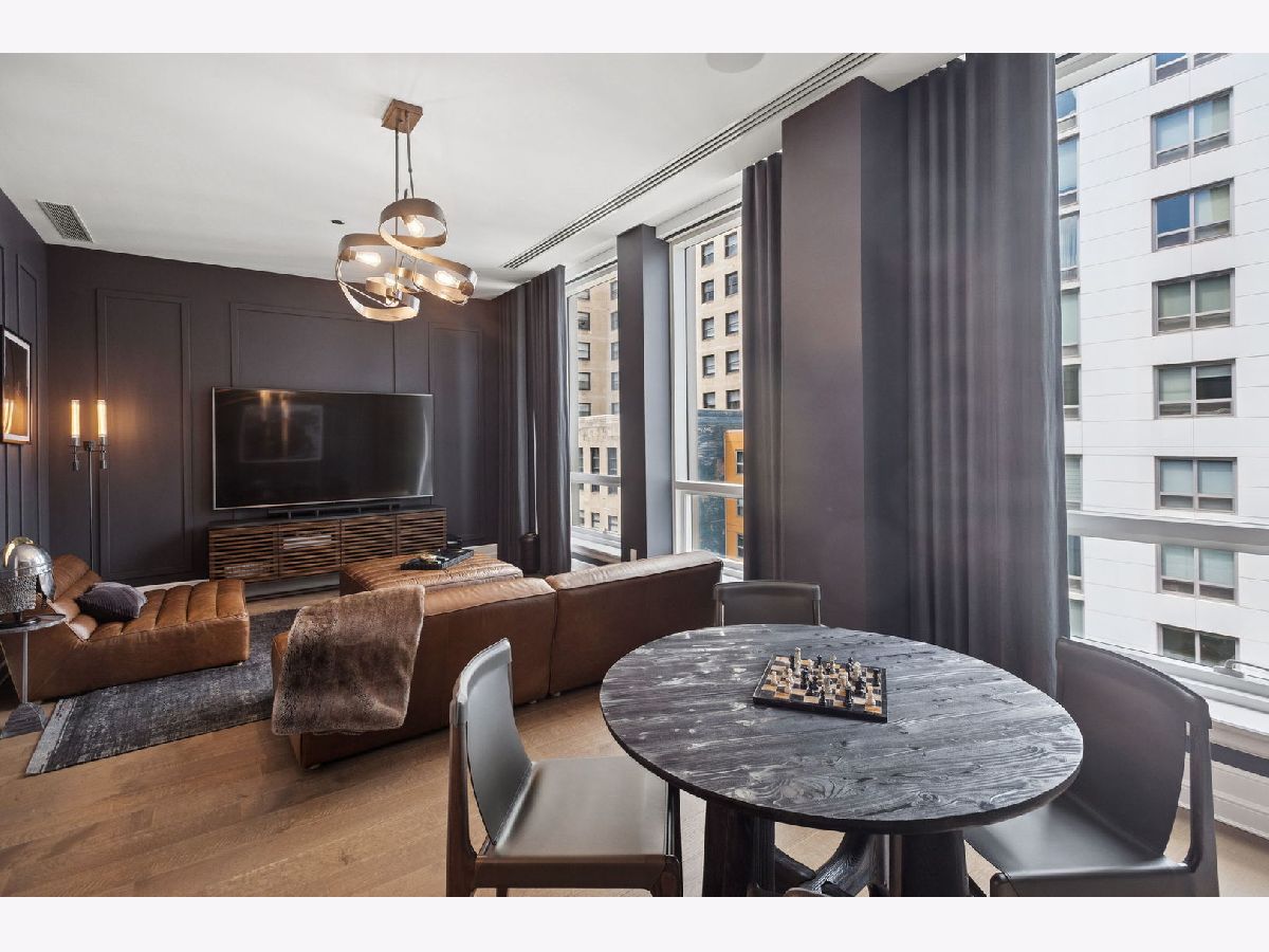 This incomparable property rests high above Chicago's Magnificent Mile at one of Chicago's most exclusive addresses: The Tribune Tower. Timeless elegance is seamlessly blended with the state-of-the-art. This is a treasure. This wonderful unit has a commanding south city view: the Chicago River, Michigan Avenue Bridge, and many world-famous architectural landmarks. The front door opens to an elegant foyer crowned with a shimmering chandelier that accents subtle hessian wallpaper. This smart technology condominium gives efficiency and convenience. The heated White Oak Character Grade floor offers a splendid foundation that passes from room to room, framed by a precise molding. An immediate right turn leased into the breathtaking Living Room framed with a crown molding. An Astria Atlas Vent Free Gas fireplace with silver beige polished marble hearth and surround with custom trim charms the room. The Lutrin blind system gives added exclusivity. A first-class kitchen appeals to the most discerning tastes: Sub Zero Designer Column Freezer with internal ice maker, Wolf gas range with four burners and infrared griddle, Best built-in range hood with integrated lighting and exhaust in custom stainless enclosure, Meile dishwasher. Frank garbage disposal. Kitchen counters and backsplash are Perla Venata quartzite with eased edged. Galley workstation has single bowl double tier under mount sink with single pulldown faucet. Premium grade hardwood drawers and wood shelves offer excellent storage. Drawer fronts and panels are premium white maple with Medex center panels. The extra spacious Living Room sports ten foot ceilings. The elegant Dining Room delights with its beautiful chandelier. This grand room leads to the balcony with its epic views. Complete with aluminum terrace door by Graham Architectural Products, Sterling Dulan Glass Rail, porcelain paver tiles - this balcony has it all. Three full baths and one powder room are will appointed with Kohler and Waterworks fixtures. The powder room has vintage Herringbone pattern white oak flooring. Master bath counter has silver beige polished marble countertop with Carrara Venizia marble tile, shower floor and inlay. Secondary bath has Atlas Concorde Marvel Gray Fleury tile floor and inlay. Secondary bath walls are Stone Source Resort Bianco Matter tile. The Family Room has the custom designed parallel walls, bar with mirrored, illuminated backing and onyx topped cabinets, wine fridge, floor-to-ceiling windows. Walk in closets have custom shelving and recessed lighting. Laundry room has matte finish thermally fused laminate flat slabs, flush mounted designer features, LG washer and dryer. 55,000 feet of amenities defines a new level of luxury. Conference room, tv viewing room, piano, bar, and more. Magnificent fitness center has 75-foot pool, sauna, steam room. Golf practice tee and simulator on second floor. Garage level has dog walk. Outdoor terrace and sun deck flanked by buttresses that transcend anything in the city. Twenty-four-hour door staff and concierge service. Easy access to great shopping and world class cultural centers. Two prime deeded parking spaces included in the price. A must see