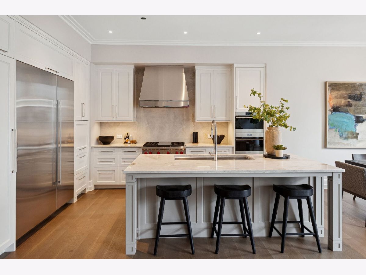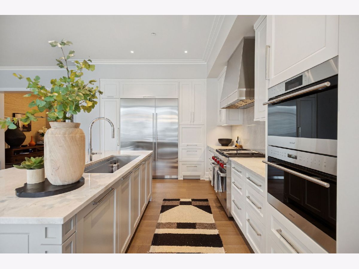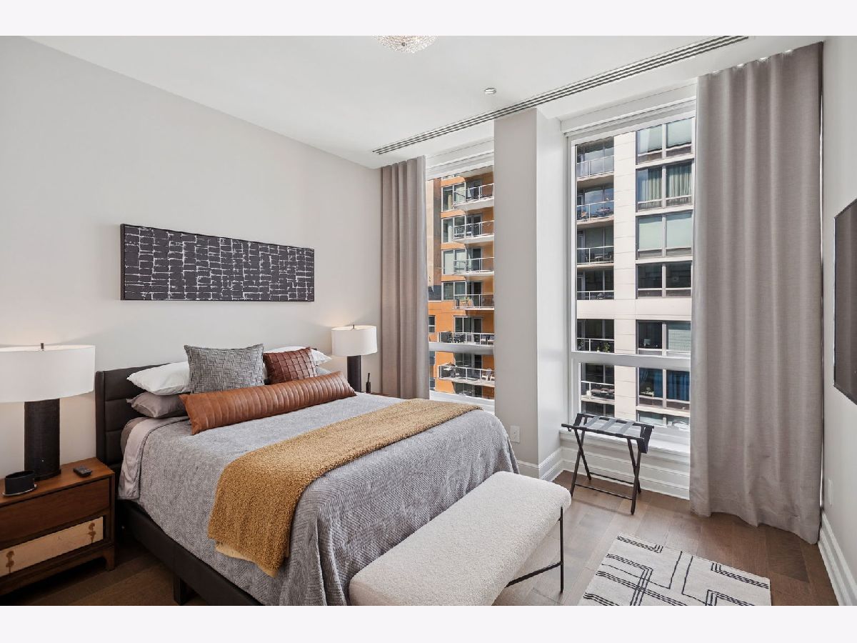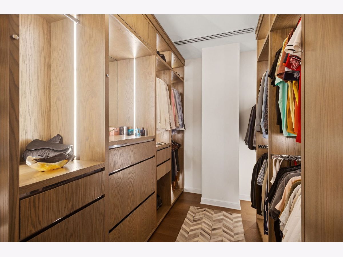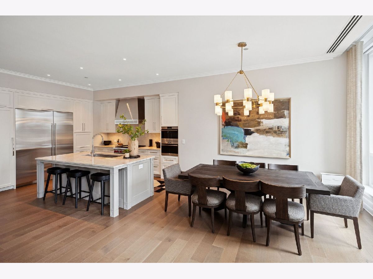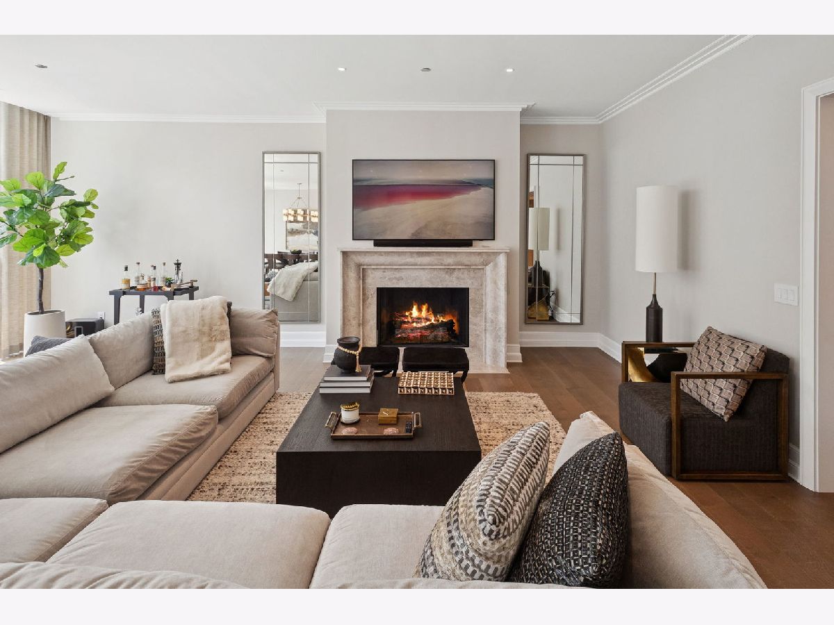 This incomparable property rests high above Chicago's Magnificent Mile at one of Chicago's most exclusive addresses: The Tribune Tower. Timeless elegance is seamlessly blended with the state-of-the-art. This is a treasure. This wonderful unit has a commanding south city view: the Chicago River, Michigan Avenue Bridge, and many world-famous architectural landmarks. The front door opens to an elegant foyer crowned with a shimmering chandelier that accents subtle hessian wallpaper. This smart technology condominium gives efficiency and convenience. The heated White Oak Character Grade floor offers a splendid foundation that passes from room to room, framed by a precise molding. An immediate right turn leased into the breathtaking Living Room framed with a crown molding. An Astria Atlas Vent Free Gas fireplace with silver beige polished marble hearth and surround with custom trim charms the room. The Lutrin blind system gives added exclusivity. A first-class kitchen appeals to the most discerning tastes: Sub Zero Designer Column Freezer with internal ice maker, Wolf gas range with four burners and infrared griddle, Best built-in range hood with integrated lighting and exhaust in custom stainless enclosure, Meile dishwasher. Frank garbage disposal. Kitchen counters and backsplash are Perla Venata quartzite with eased edged. Galley workstation has single bowl double tier under mount sink with single pulldown faucet. Premium grade hardwood drawers and wood shelves offer excellent storage. Drawer fronts and panels are premium white maple with Medex center panels. The extra spacious Living Room sports ten foot ceilings. The elegant Dining Room delights with its beautiful chandelier. This grand room leads to the balcony with its epic views. Complete with aluminum terrace door by Graham Architectural Products, Sterling Dulan Glass Rail, porcelain paver tiles - this balcony has it all. Three full baths and one powder room are will appointed with Kohler and Waterworks fixtures. The powder room has vintage Herringbone pattern white oak flooring. Master bath counter has silver beige polished marble countertop with Carrara Venizia marble tile, shower floor and inlay. Secondary bath has Atlas Concorde Marvel Gray Fleury tile floor and inlay. Secondary bath walls are Stone Source Resort Bianco Matter tile. The Family Room has the custom designed parallel walls, bar with mirrored, illuminated backing and onyx topped cabinets, wine fridge, floor-to-ceiling windows. Walk in closets have custom shelving and recessed lighting. Laundry room has matte finish thermally fused laminate flat slabs, flush mounted designer features, LG washer and dryer. 55,000 feet of amenities defines a new level of luxury. Conference room, tv viewing room, piano, bar, and more. Magnificent fitness center has 75-foot pool, sauna, steam room. Golf practice tee and simulator on second floor. Garage level has dog walk. Outdoor terrace and sun deck flanked by buttresses that transcend anything in the city. Twenty-four-hour door staff and concierge service. Easy access to great shopping and world class cultural centers. Two prime deeded parking spaces included in the price. A must see