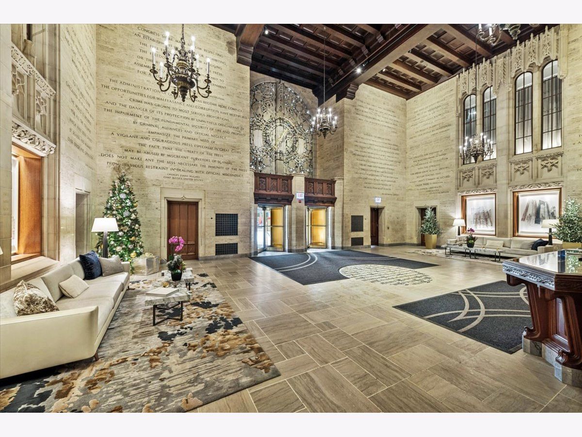 Tribune Tower Residence offers an amazing opportunity to own a home in one of Chicago's most ICONIC buildings located on the famous Magnificent Mile. This highly upgraded 3249 sqft 3 Bed/ 3.1 Bath home is appointed with the most luxurious finishes: owner installed high end custom closets and Stoneside electric blinds throughout and entire unit was custom painted. Other finishes include oversized windows, custom millwork throughout, custom Bovelli white cabinetry, chefs kitchen with SubZero refrigerator and built in wine fridge, hooded Wolf oven and Miele appliances, wide plank white oak wood floors throughout, and a cozy gas fireplace. Grand foyer entrance leads you to a bright open living room/ dining room and kitchen. 10 foot ceilings, extra wide hallways with additional storage/ closets and powder room. Enormous primary bedroom suite has 2 Large walk-in closets and an additional closet for everyday living extras. Elegant primary marble bathroom includes a dual vanity with separate walk-in shower and large soaking tub and has timeless finishes and fixtures throughout. Oversized 2nd and 3rd bedrooms both with ensuite elegant spa level baths for easy family living. Separate laundry room with extra storage, side by side washer/ dryer and sink. There are 162 residences with 56 different floor plans, creating many one-of-a-kind residences. Tribune Tower offers over 55,000 sq ft of amenity space which no other building in Chicago offers. These amenities include: the 25th floor "Crown Terrace" the crown jewel of Chicago with panoramic city views surrounded by spectacular famed flying buttresses. The 7th floor features a 75 ft heated indoor lap pool and sundeck and areas for lounging and grilling. The 3rd floor offers a private elevated park and abundant work and social gathering spaces with billiards and game room. The 2nd floor has an indoor golf simulator and putting green, state of the art fitness center and spa treatment rooms with steam and saunas, locker rooms, dog run, and a resident lounge. 24-hour door-staff. Tribune Tower is an extraordinary luxury residential lifestyle in one of Chicago's most ICONIC buildings with and A+ location. Deeded tandem parking space (2 cars) an additional $100K.
